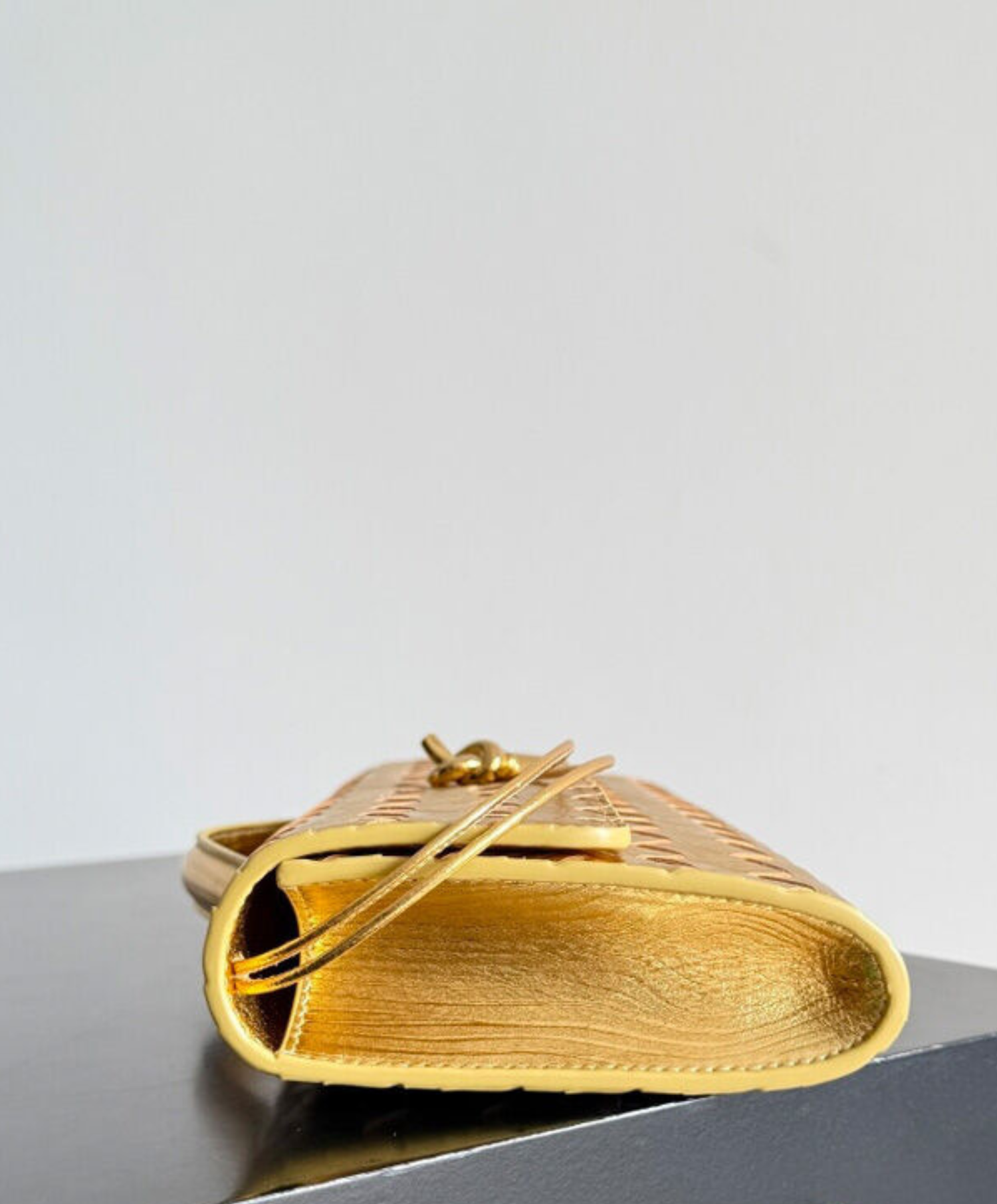 Simple, understated, and versatile describe Bottega Veneta's Andiamo long clutch. This clutch is designed with a handle with Intrecciato craftsmanship in Intrecciato wood-embossed laminated leather with signature knot closure.. Key details include six internal card slots and one additional pocket.