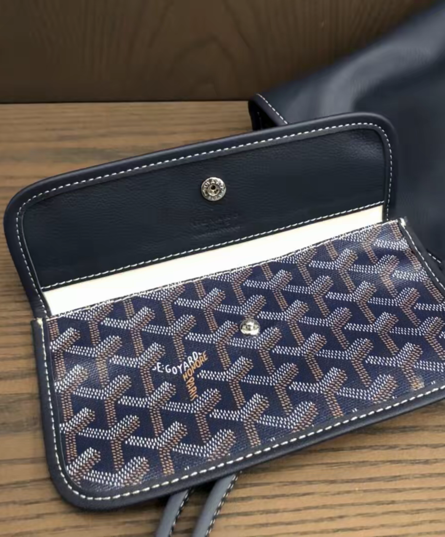 The Anjou GM bag seamlessly blends elegance and functionality with its unique reversible design. One side showcases the iconic Goyardine canvas, while the other reveals a refined touch of luxurious leather. Perfect for everyday use or travel, it includes a removable inner pouch for added organization and convenience. Lightweight yet spacious, it’s an ideal choice for those seeking distinction and versatility in one sophisticated piece.