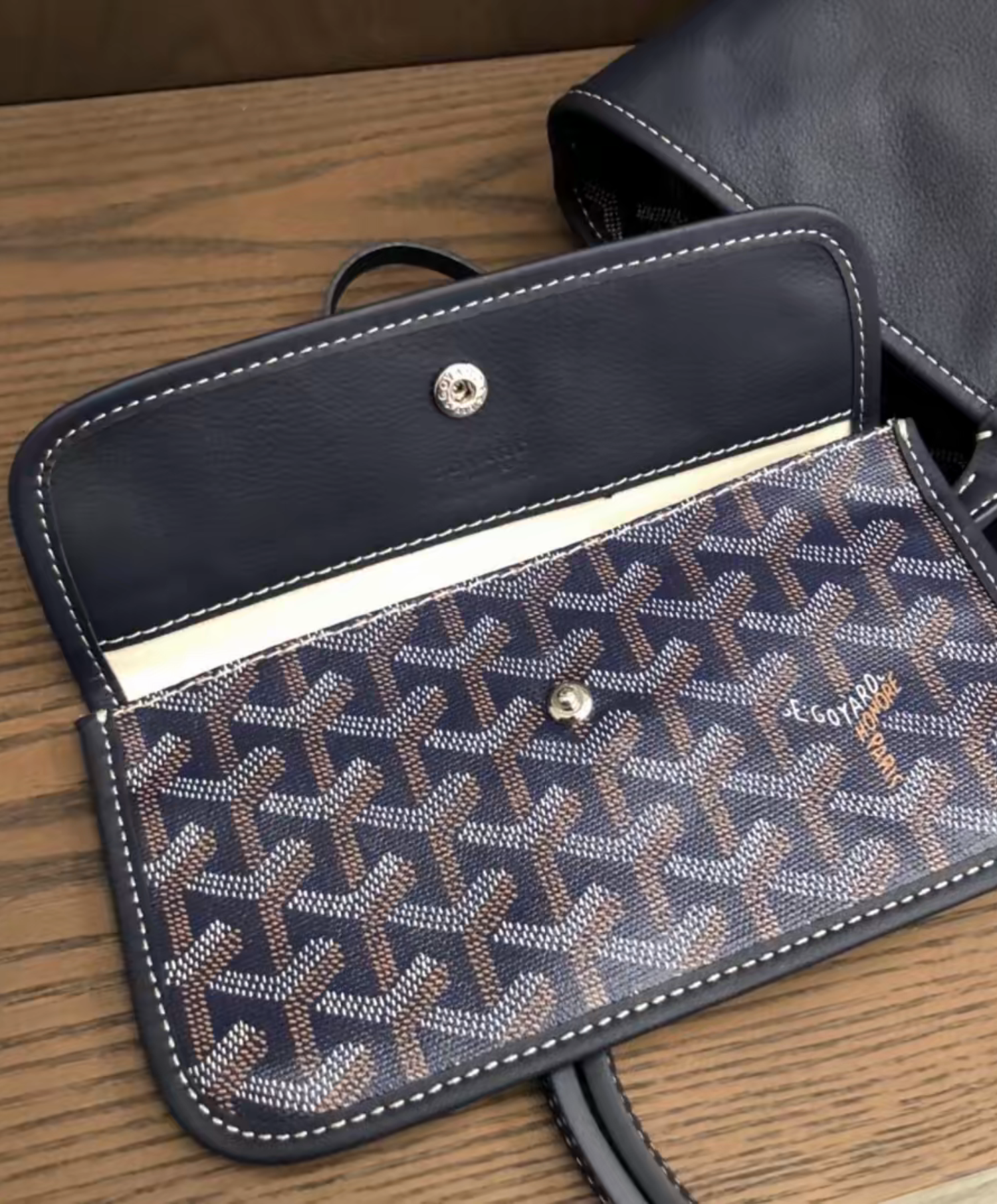 The Anjou PM bag by Goyard combines practical elegance with clever design, thanks to its reversible construction. One side showcases the iconic Goyardine canvas, while the other reveals luxurious natural leather—giving you the freedom to switch between two distinct looks depending on the occasion. Perfectly sized for daily use, it comes with a detachable inner pouch that adds a touch of organization and convenience. An ideal choice for those seeking a balance between sophistication and functionality in their everyday style.