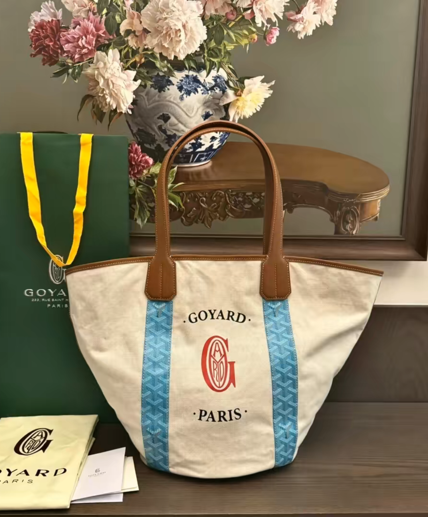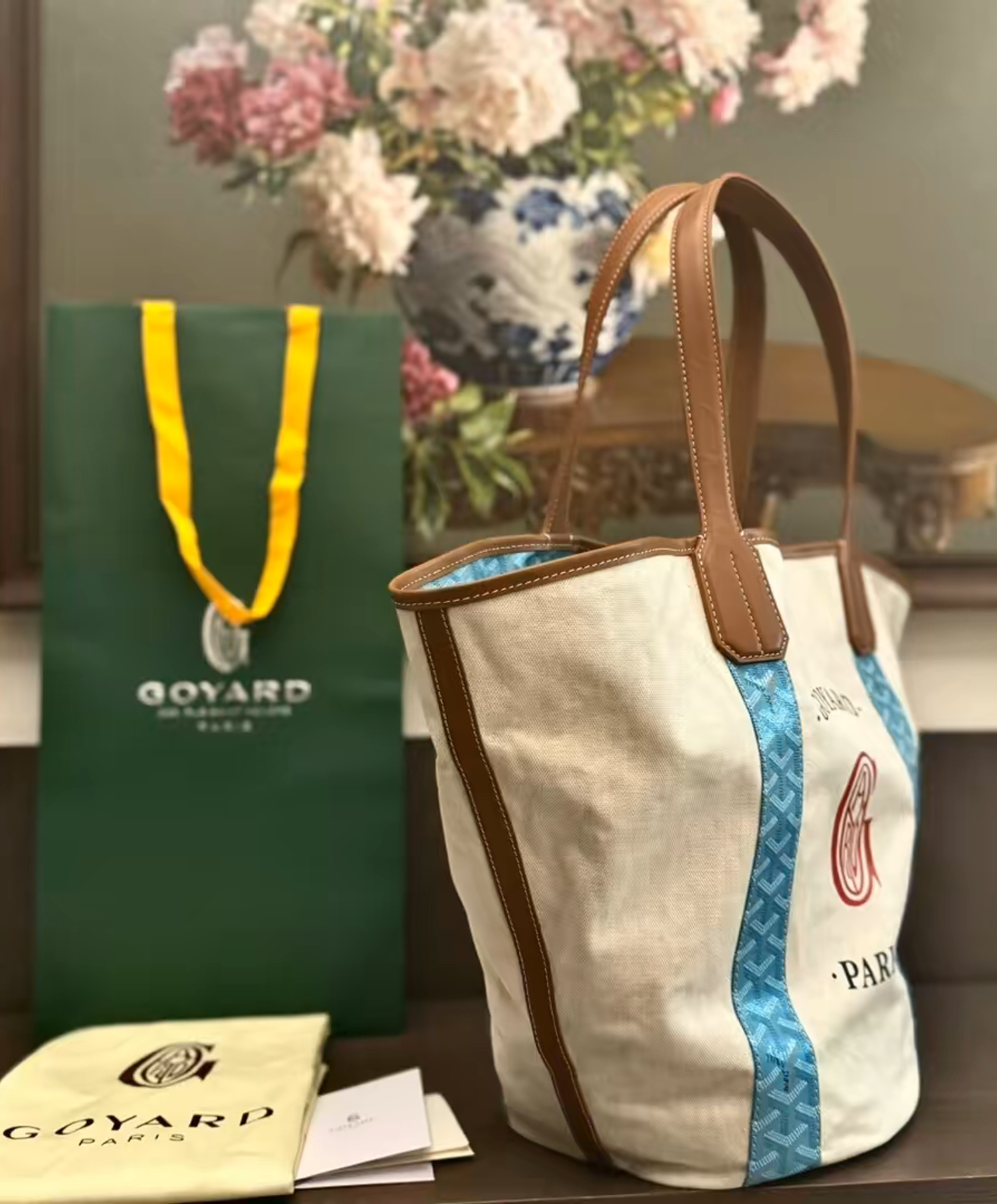 • 2 Goyardine stripes highlight the “Goyard Paris” screenprint on the front.