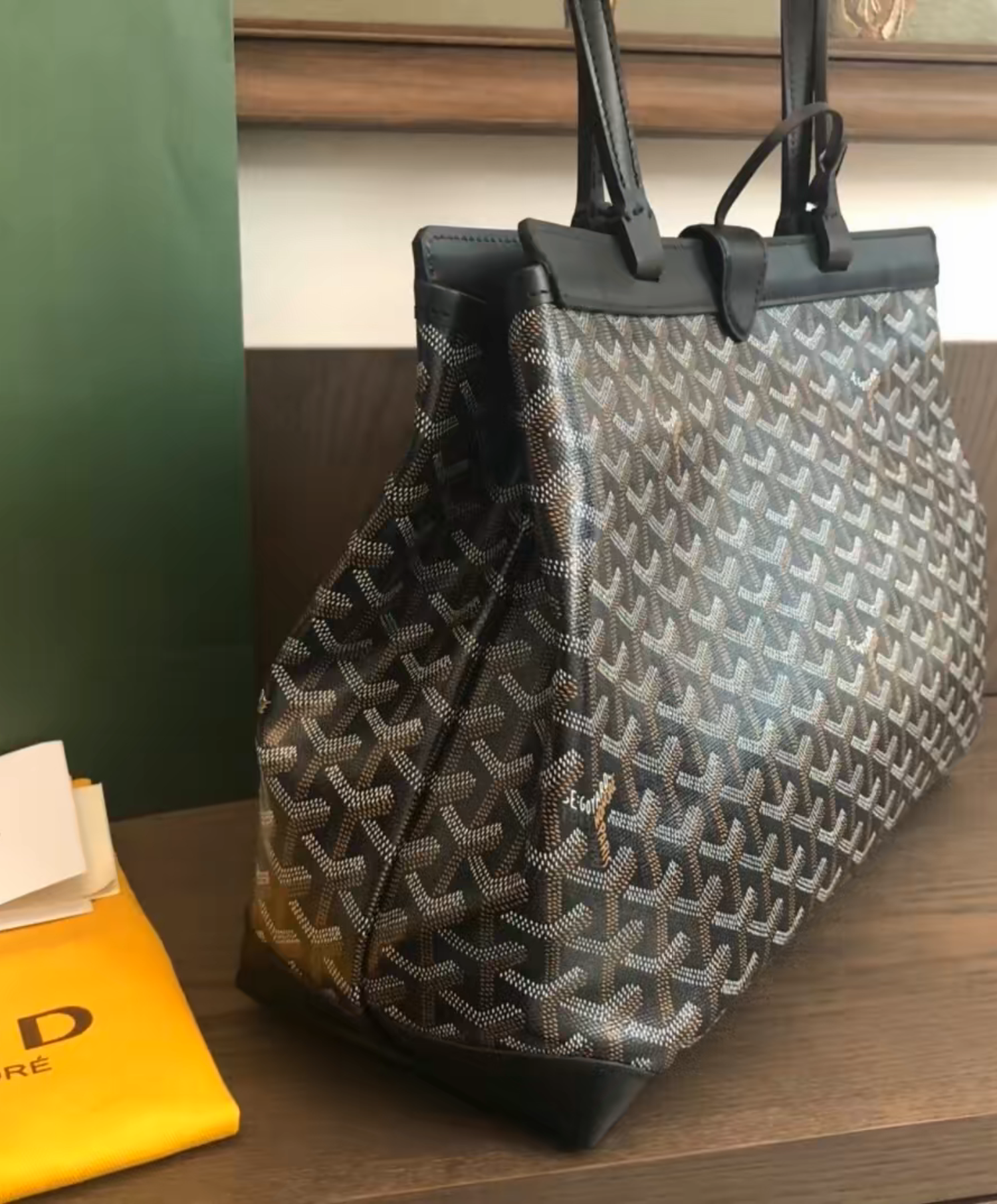 The Bellechasse Biaude PM bag is structured differently than our open tote bags. It has an ideal inside volume for everyday use and is perfect for work because it can carry A4 documents. The biaude cover protects the contents of the bag from view and the rain and the Croc clasp closes and secures the bag.