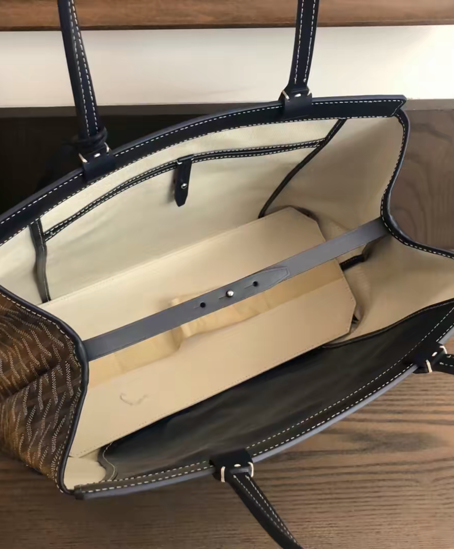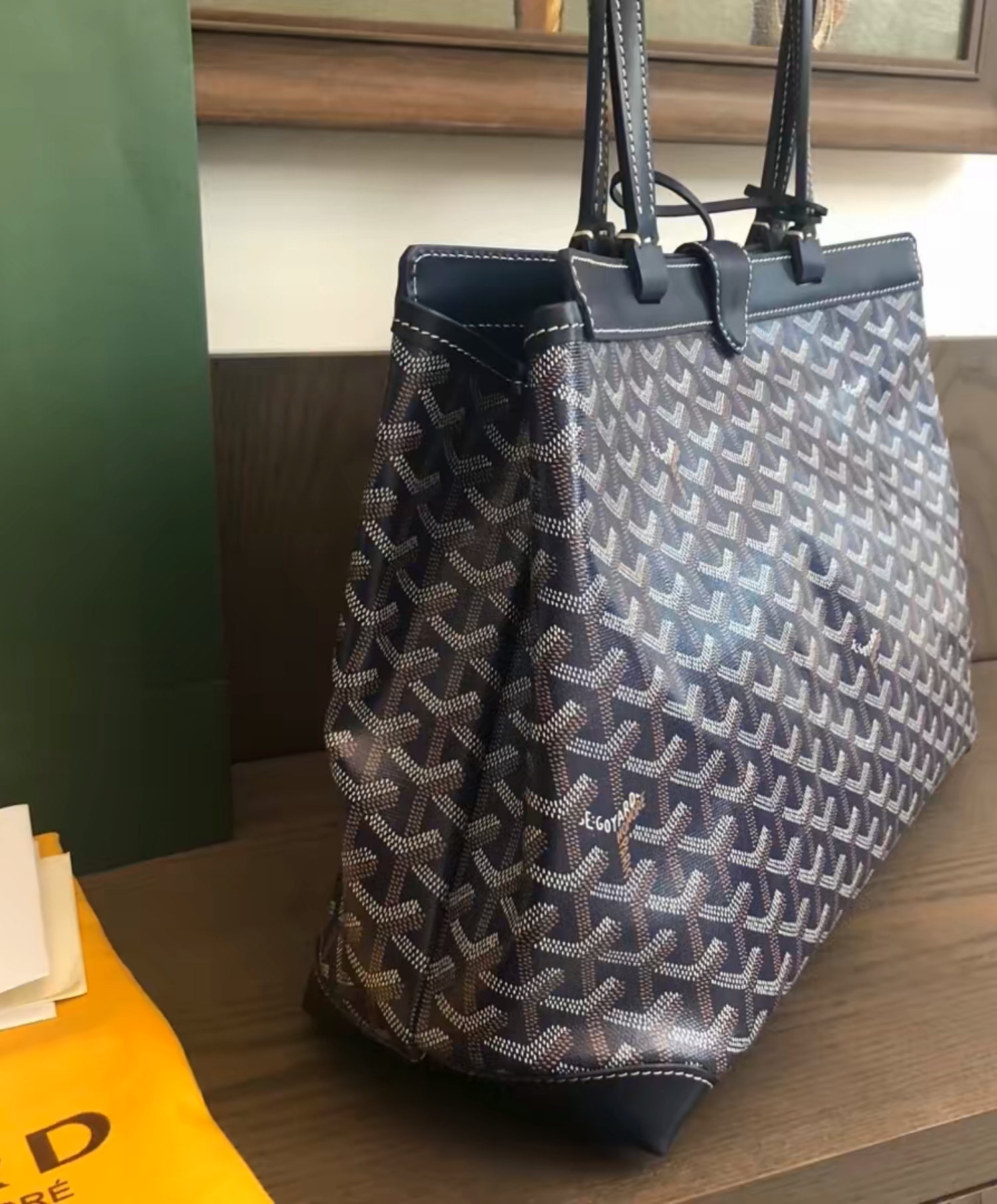 The Bellechasse Biaude PM bag is structured differently than our open tote bags. It has an ideal inside volume for everyday use and is perfect for work because it can carry A4 documents. The biaude cover protects the contents of the bag from view and the rain and the Croc clasp closes and secures the bag.
