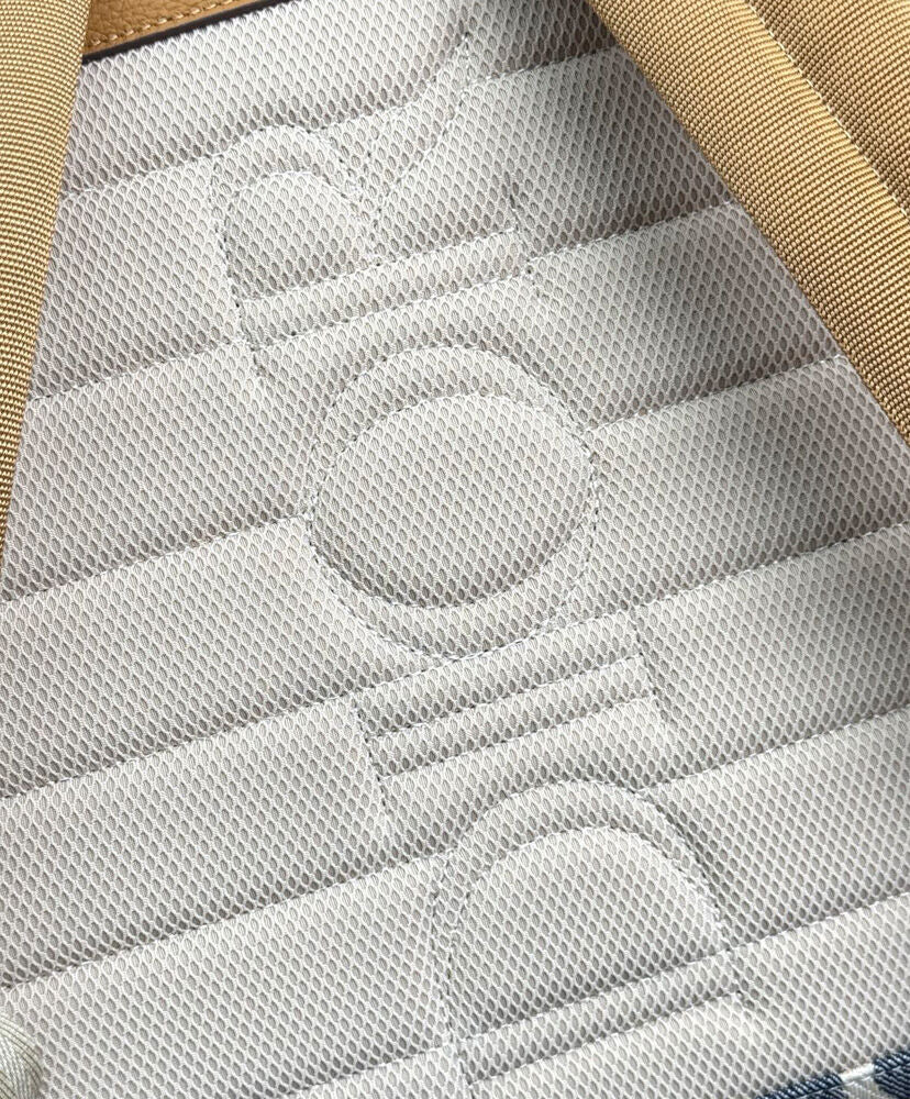 This Dior Hit The Road backpack with flap combines modern style with Dior's couture spirit. Crafted from raffia-effect oblique-print denim, it features blue jacquard embroidery and contrasting beige stitching, reinterpreting the iconic Dior logo. Detailed with brown grained calfskin leather, the flap features a miniature aluminum CD buckle and two chevron-patterned straps. It features a spacious main compartment and two side pockets with magnetic flaps. This practical design complements a variety of casual looks.
