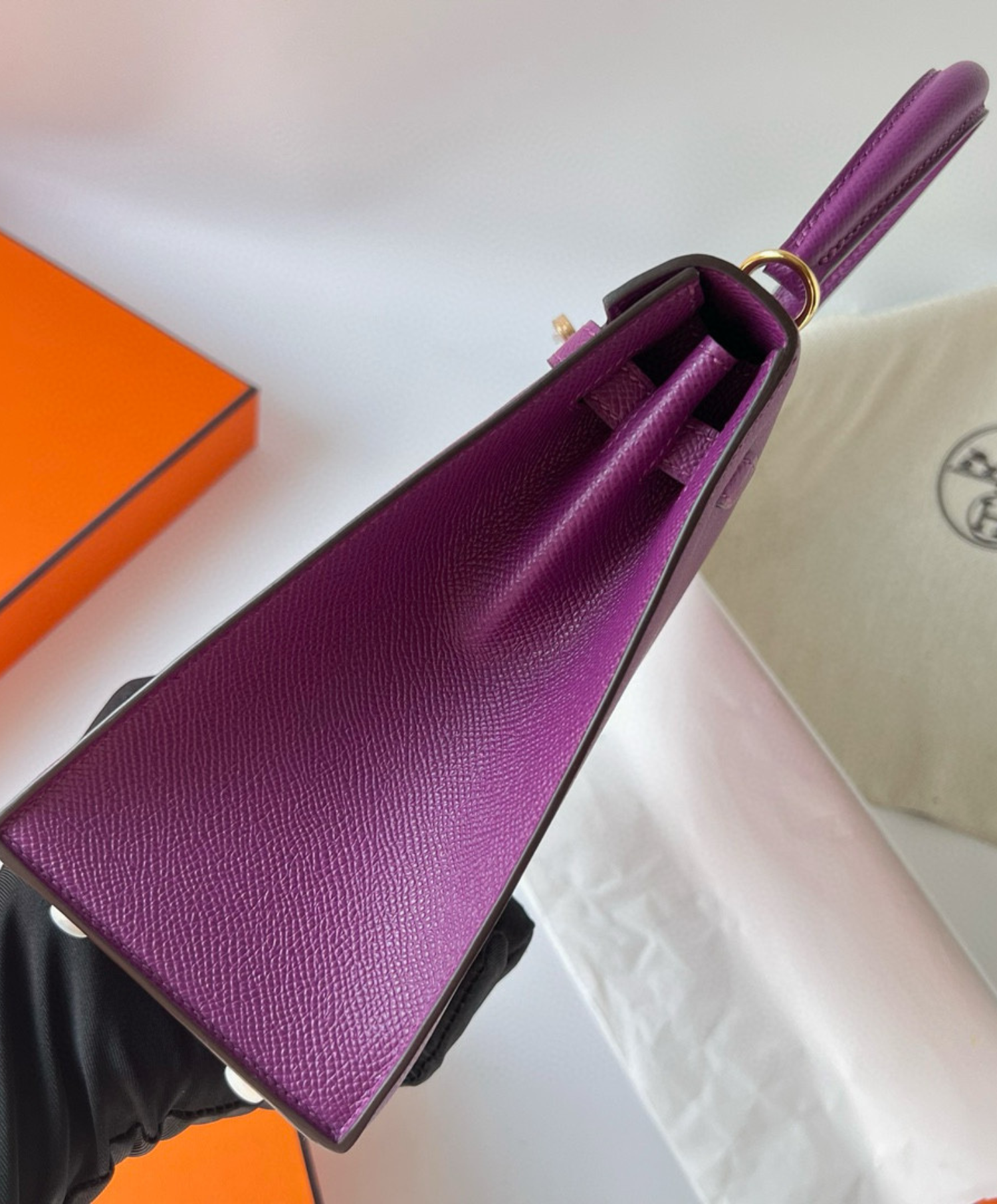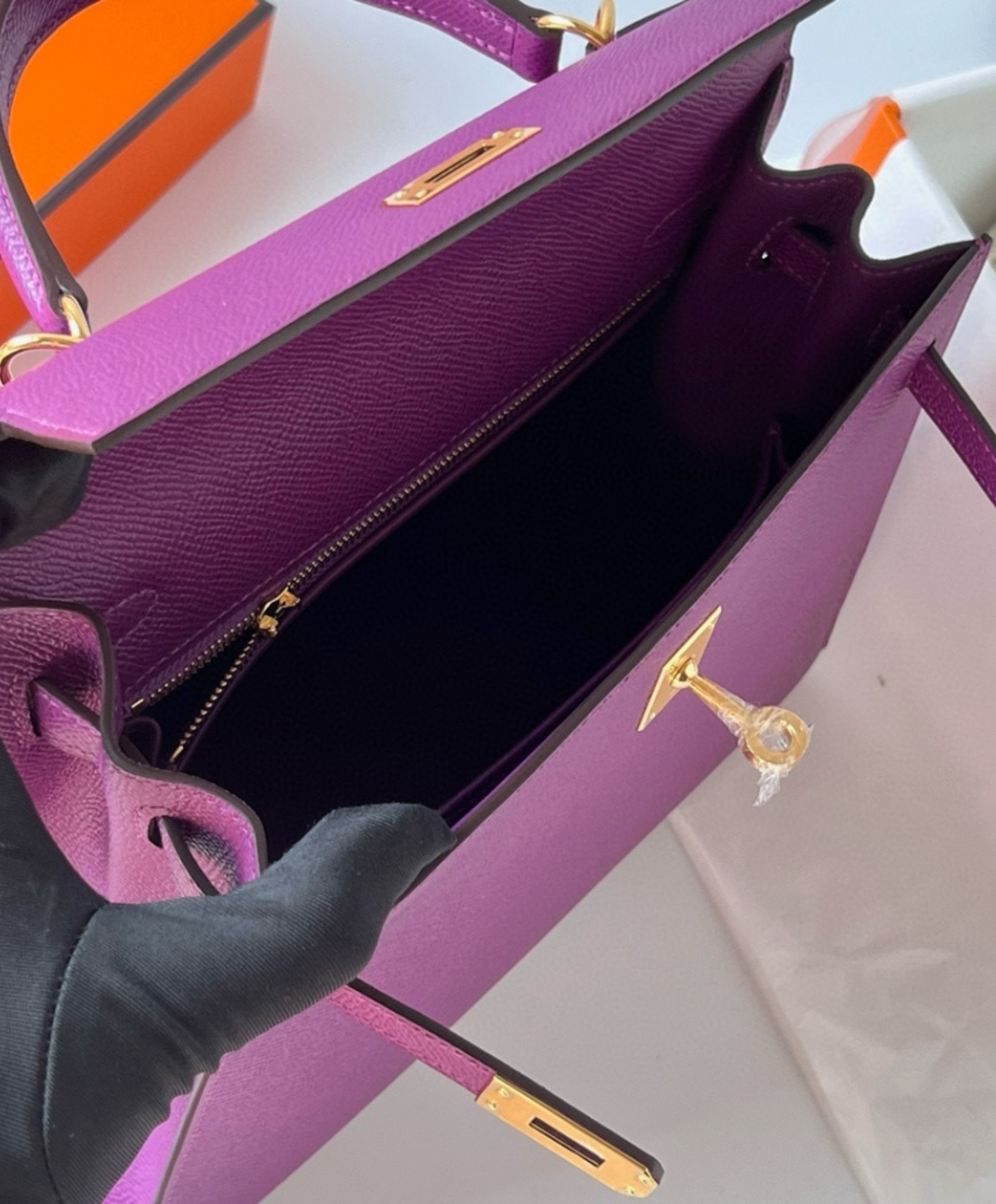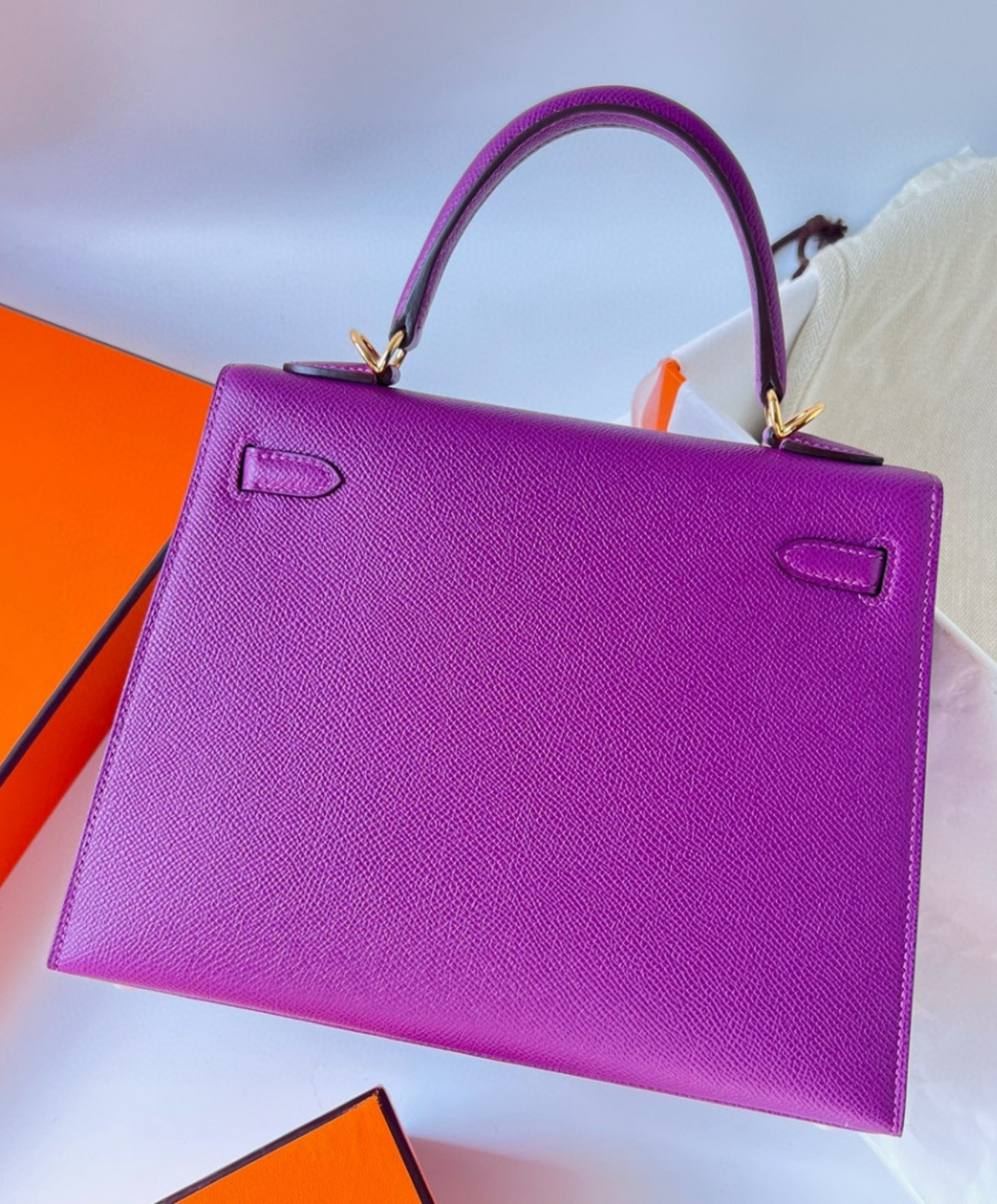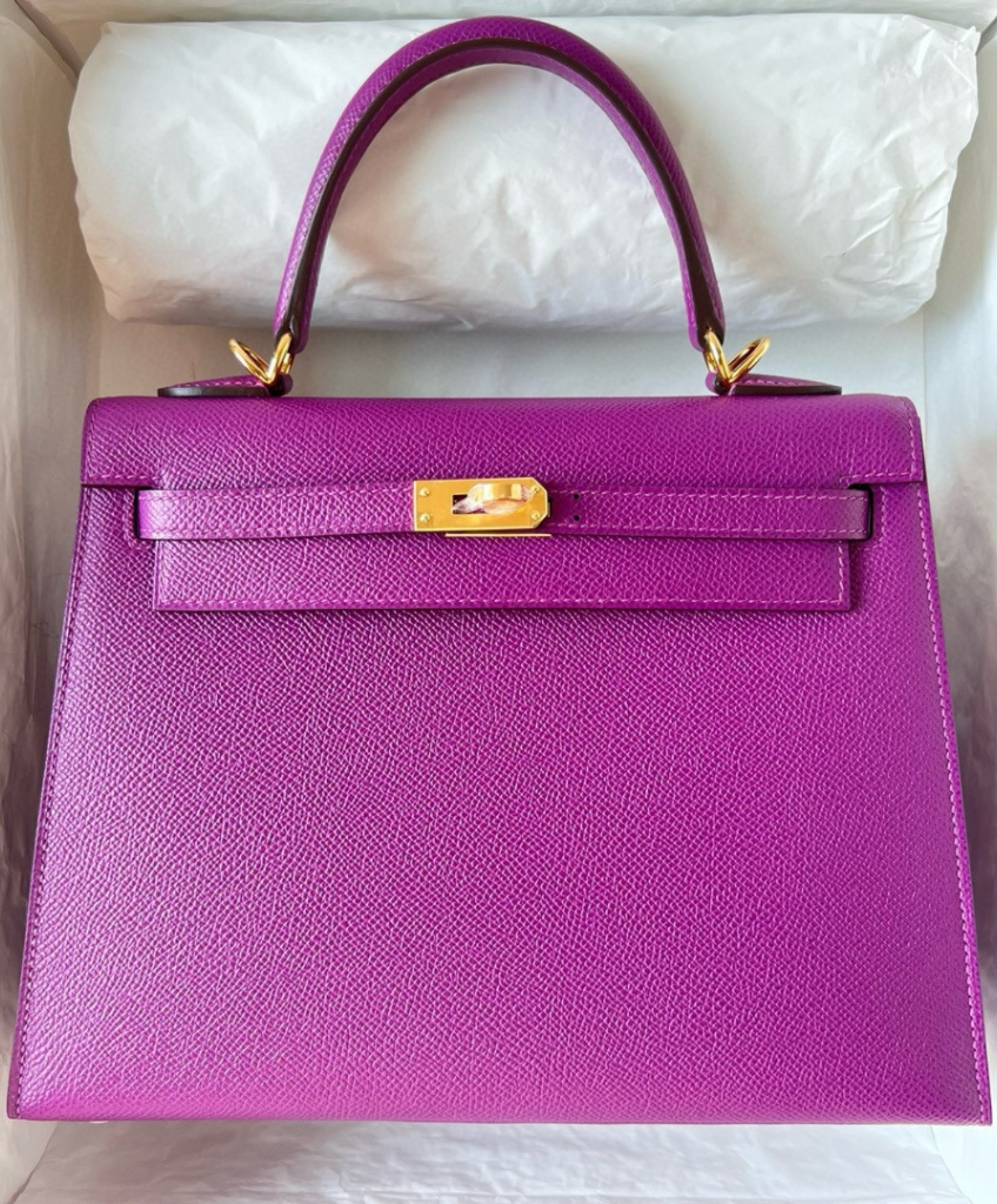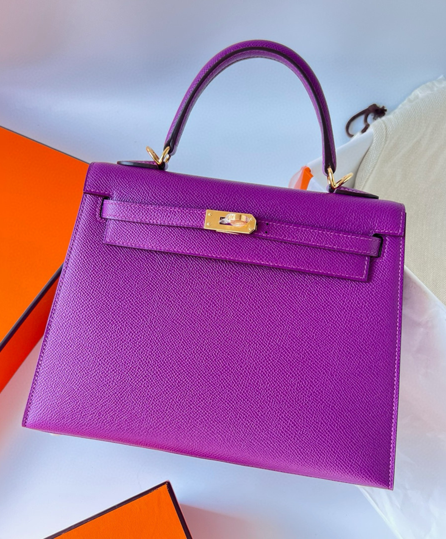 An icon of elegance from Hermes, featuring a practical size and timeless classic design. Handcrafted from the finest leathers, with a sleek metal lock and a detachable shoulder strap. Perfect for special occasions or refined everyday use.