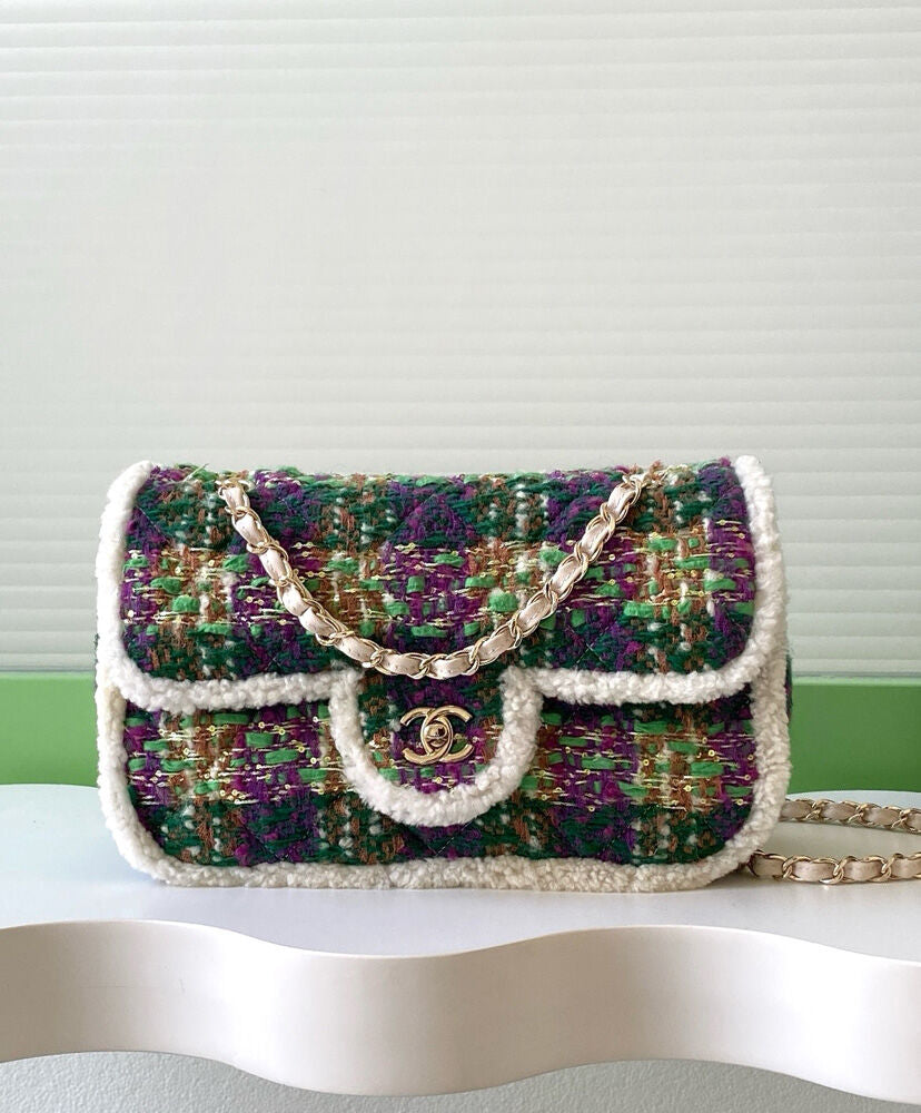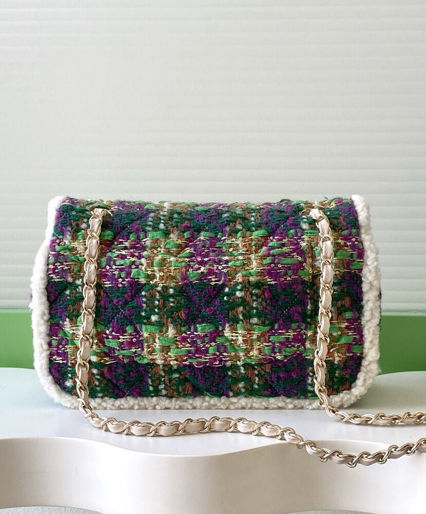 Tweed, Shearling Lambskin & Gold-Tone Metal