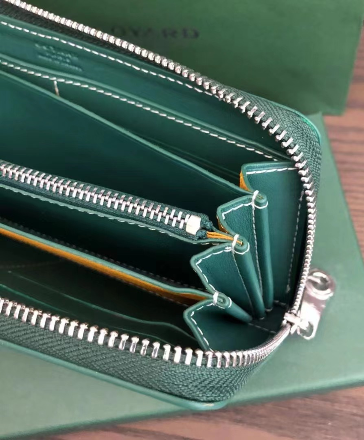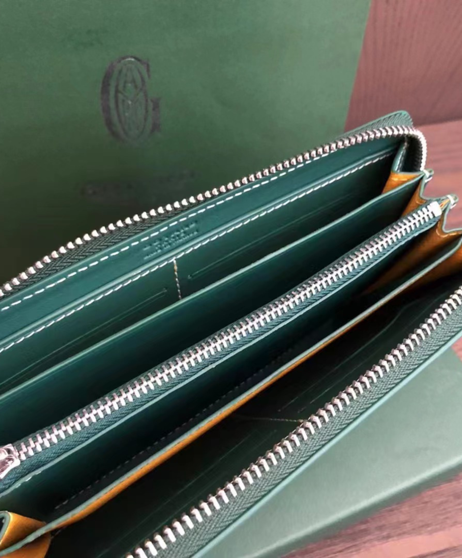 • 12 card slots, 2 large flat pockets, compartments, secure change pocket