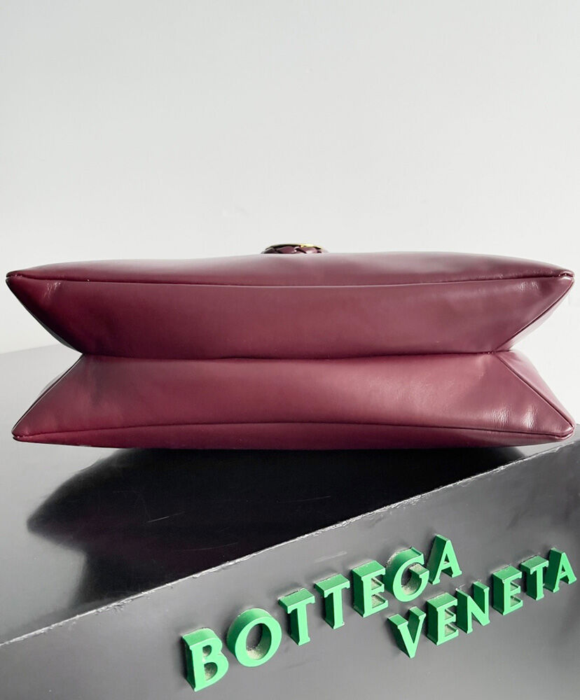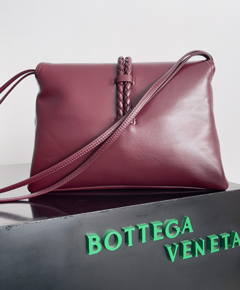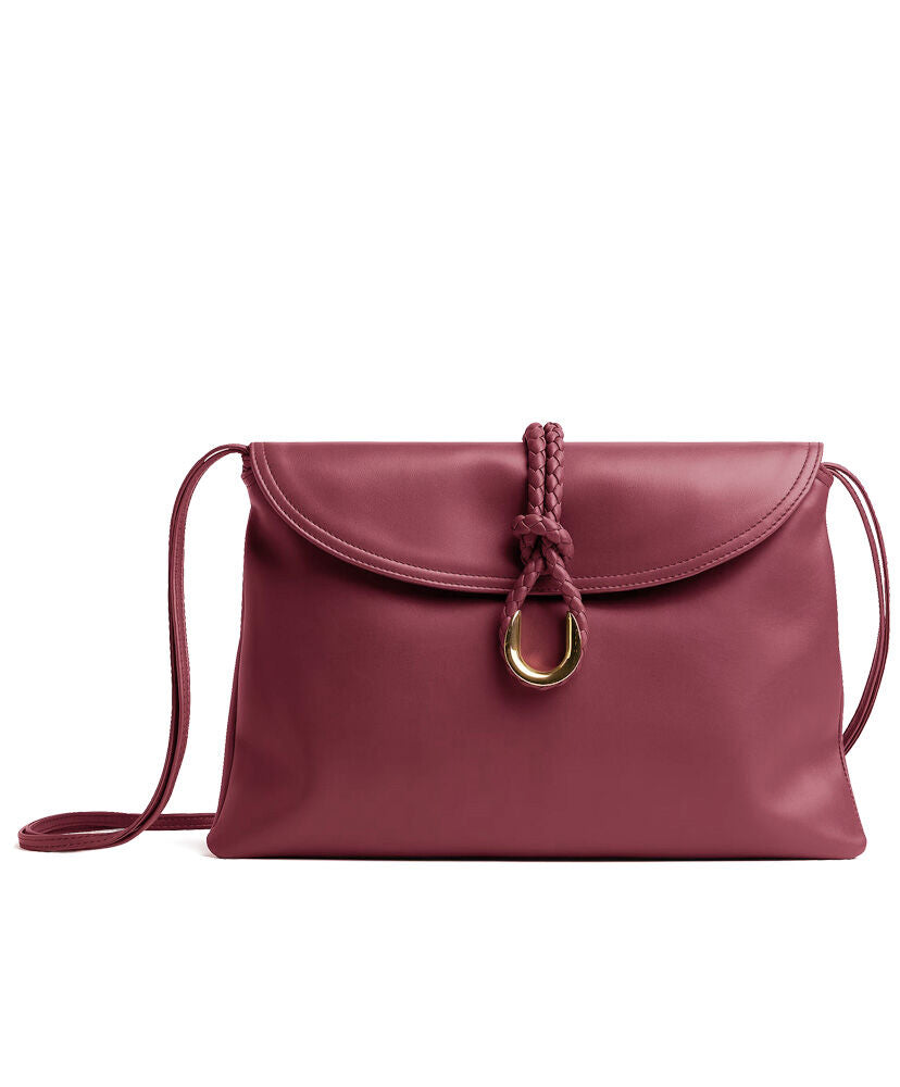 Cross-body bag in smooth calf leather with double flap. Fastened with a sculptural metal closure and leather coaxial cord.