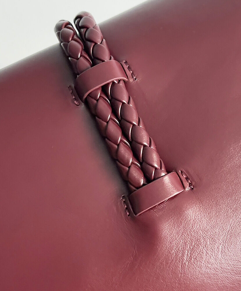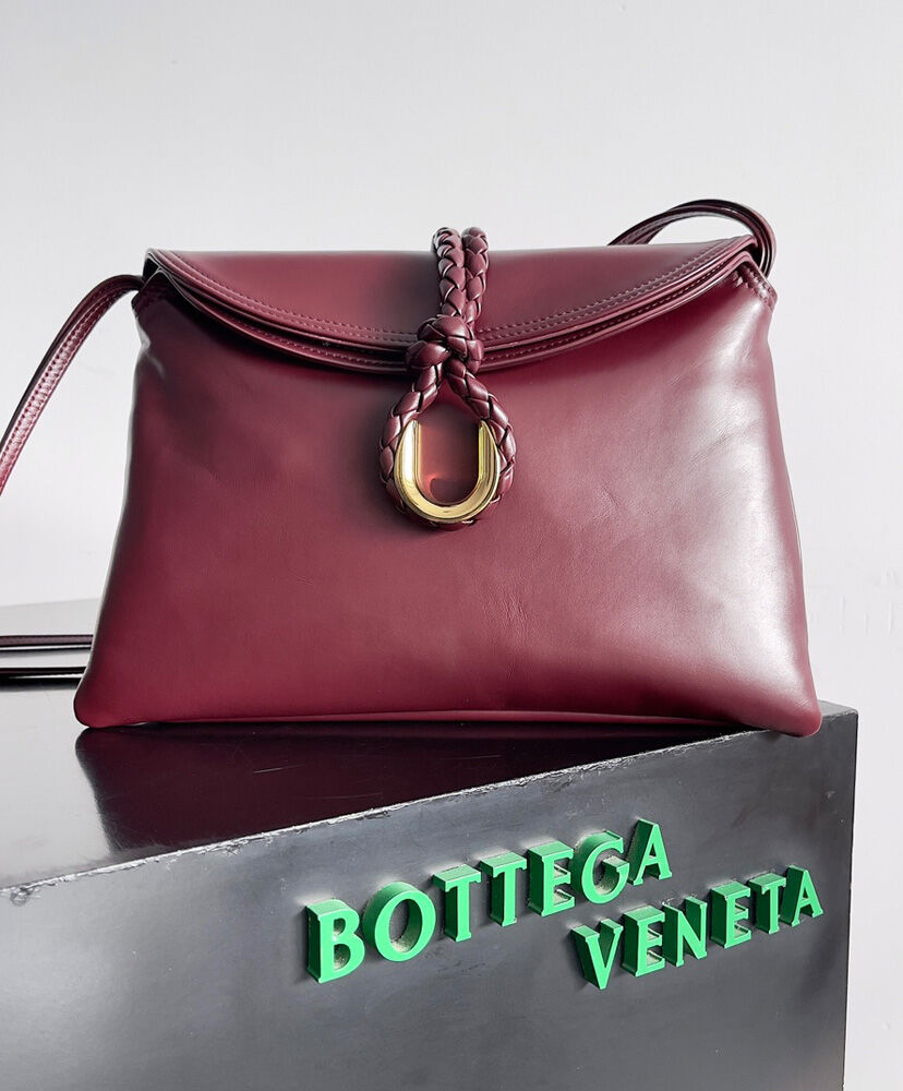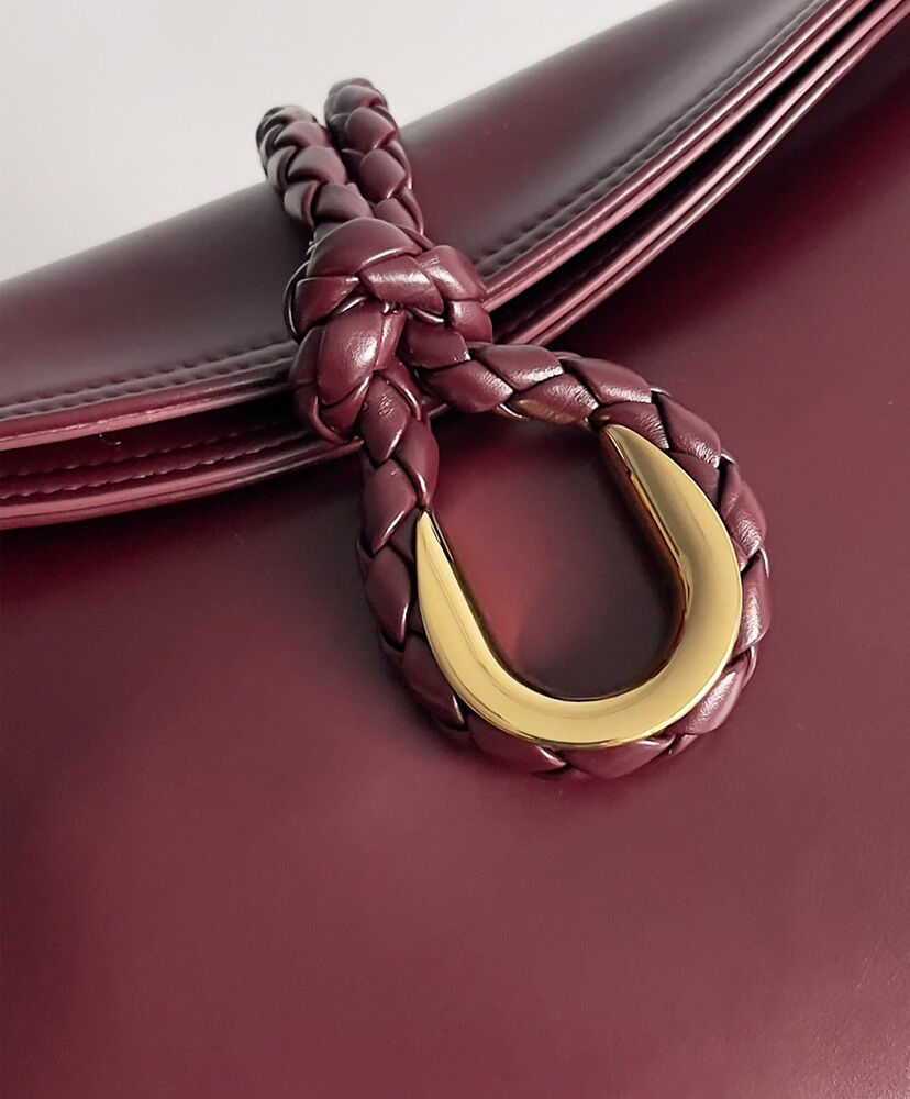 Medium cross-body bag in smooth calfskin leather with double flap and fastening system consisting of metal elements and coaxial cord