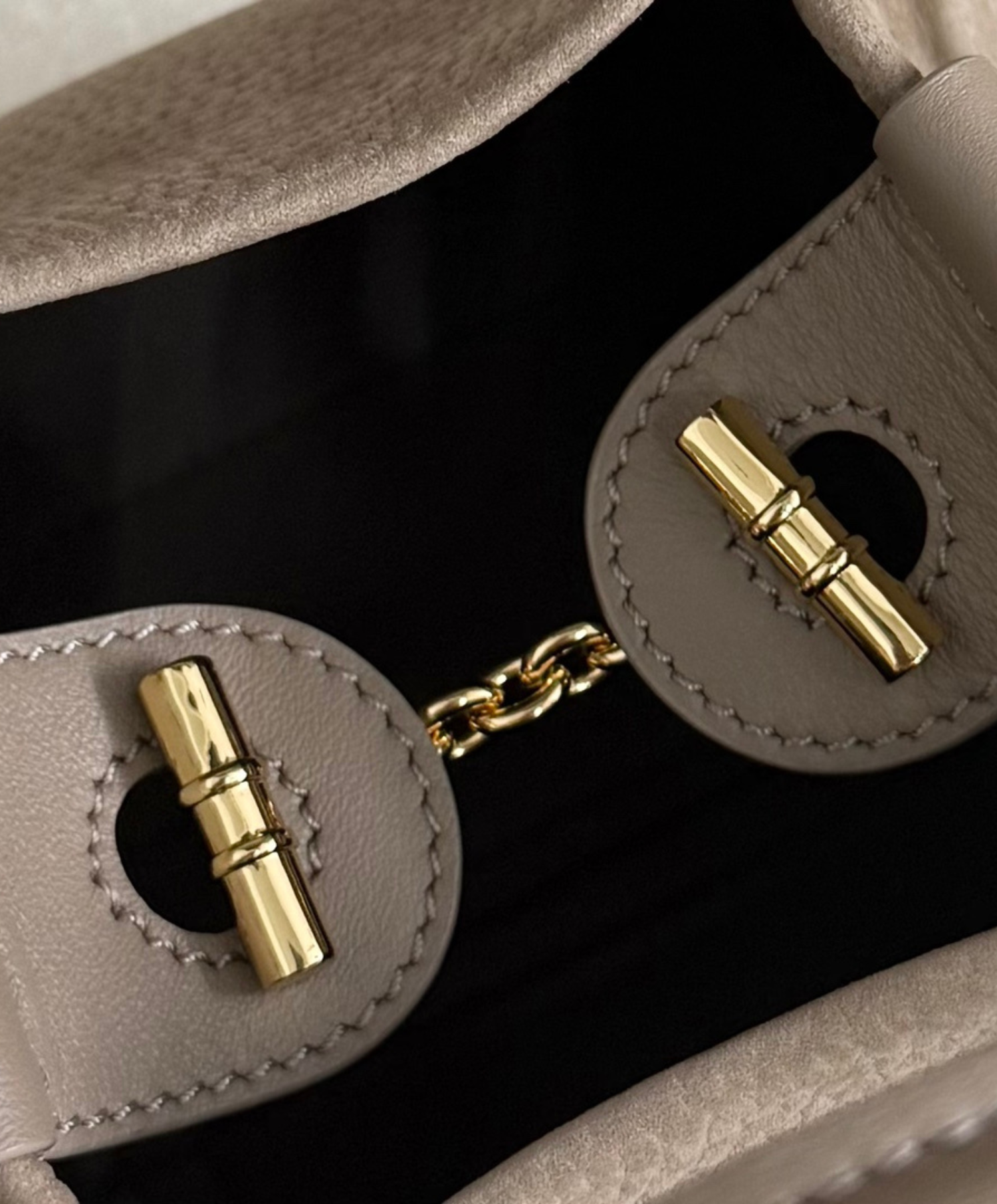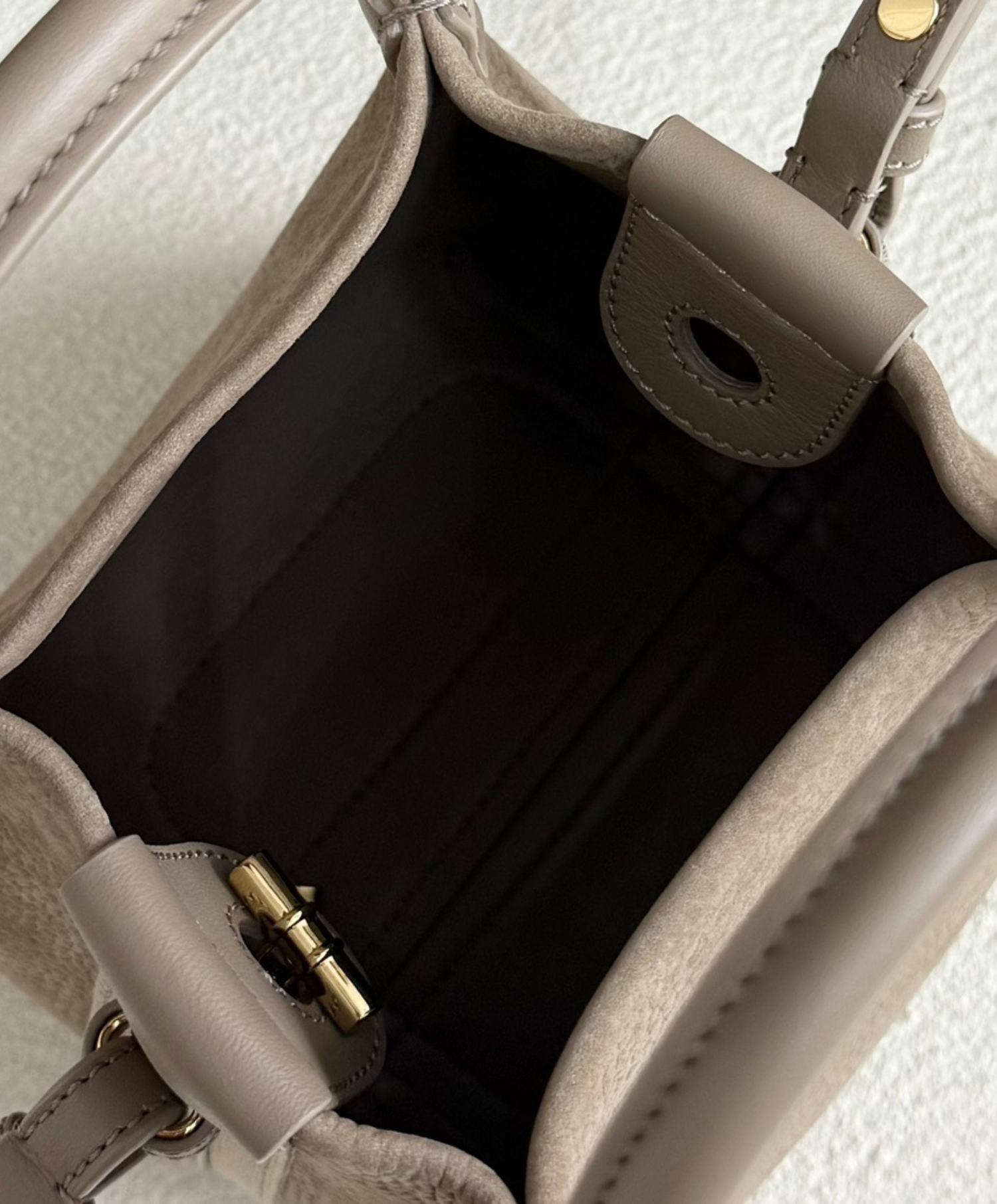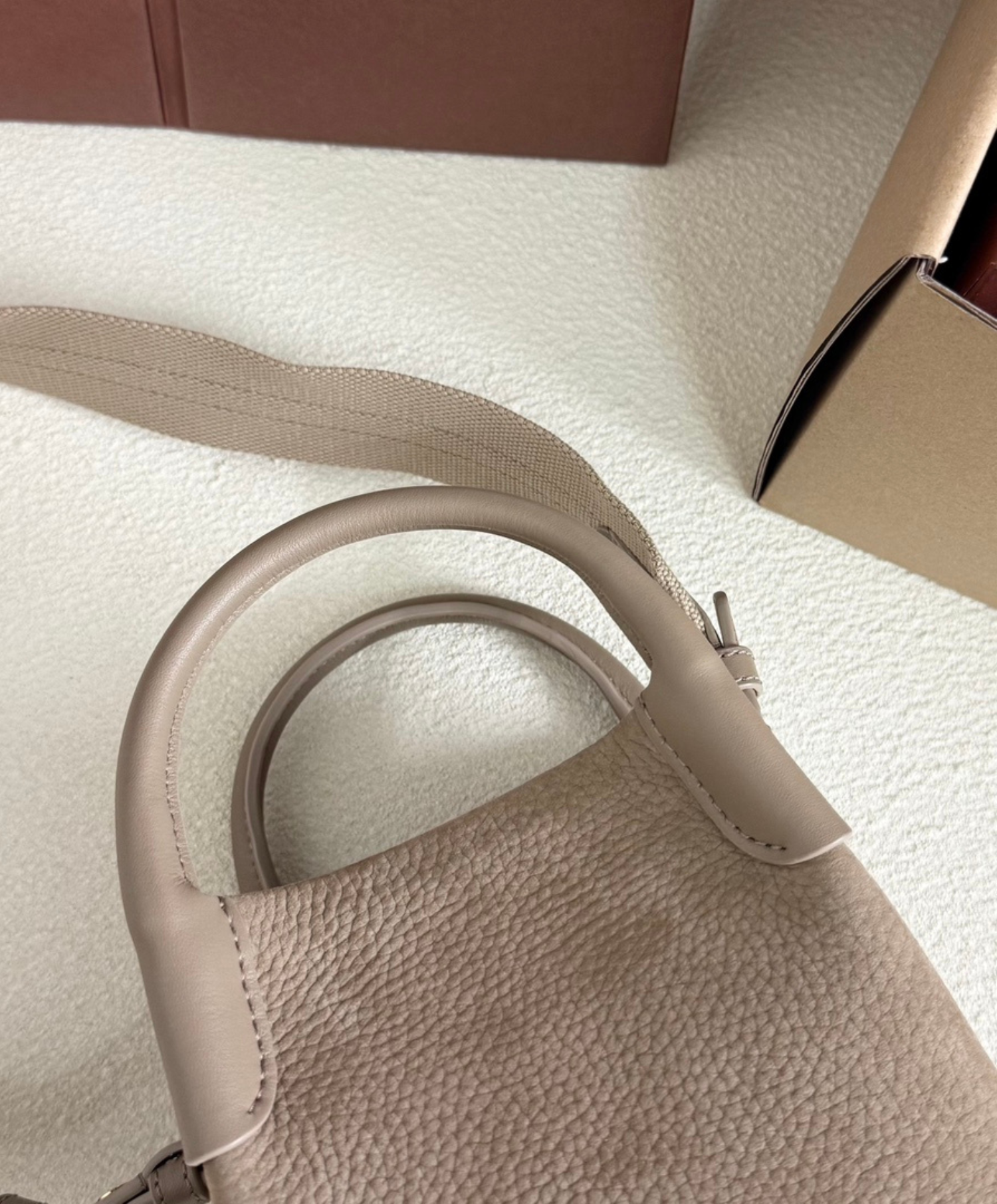 Loro Piana’s distinctive heritage is embodied in the Bale Bag — a new icon of laidback, timeless elegance. Its name and cube-shaped silhouette are inspired by cashmere storage bales, strongly evoking Loro Piana’s artisanal expertise. This handcrafted style is made from calfskin with an exceptionally soft, uniform natural grain. One-of-a-kind details and a bejewelled metal closure complete the look. The micro version of the Bale Bag combines elegance and tradition in a minimalist, modern design.