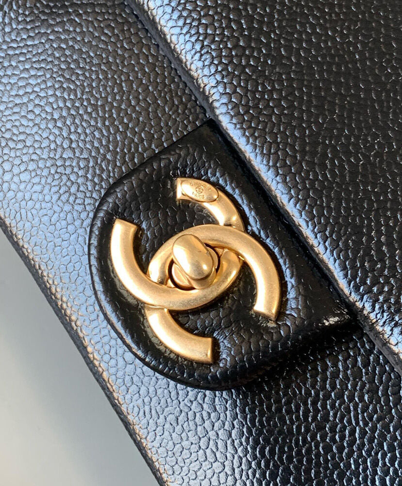 Grained Shiny Calfskin & Gold-Tone Metal