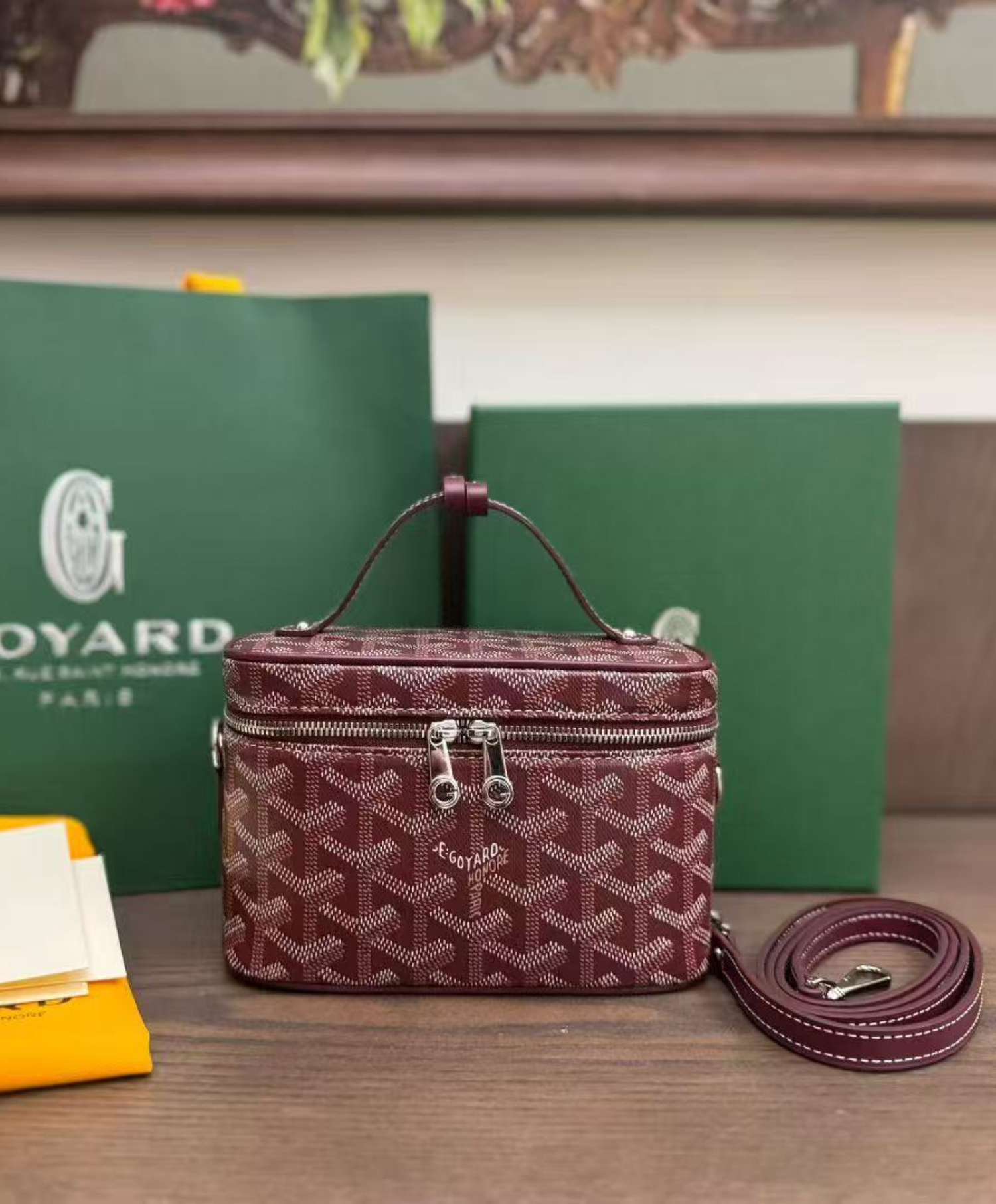 The Muse Mini vanity adopts the design codes of our Muse PM vanity in a miniaturized version. Both elegant and practical, it safely holds one's daily essentials. The Muse Mini vanity can be carried by hand, over the shoulder or cross-body thanks to its removable leather strap.