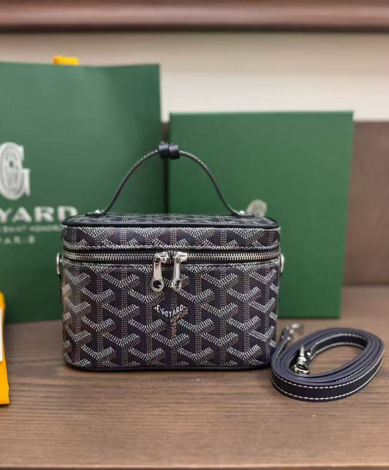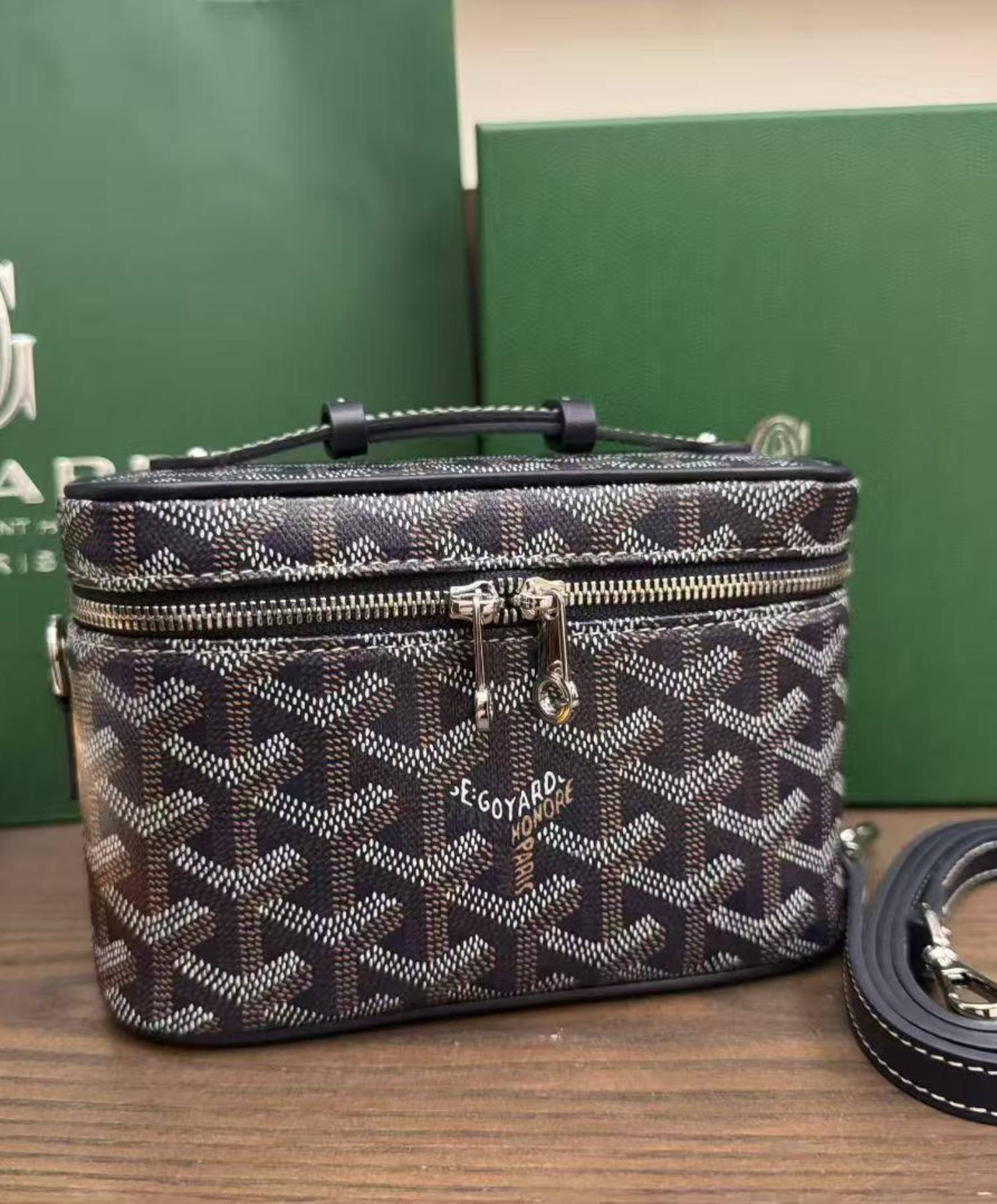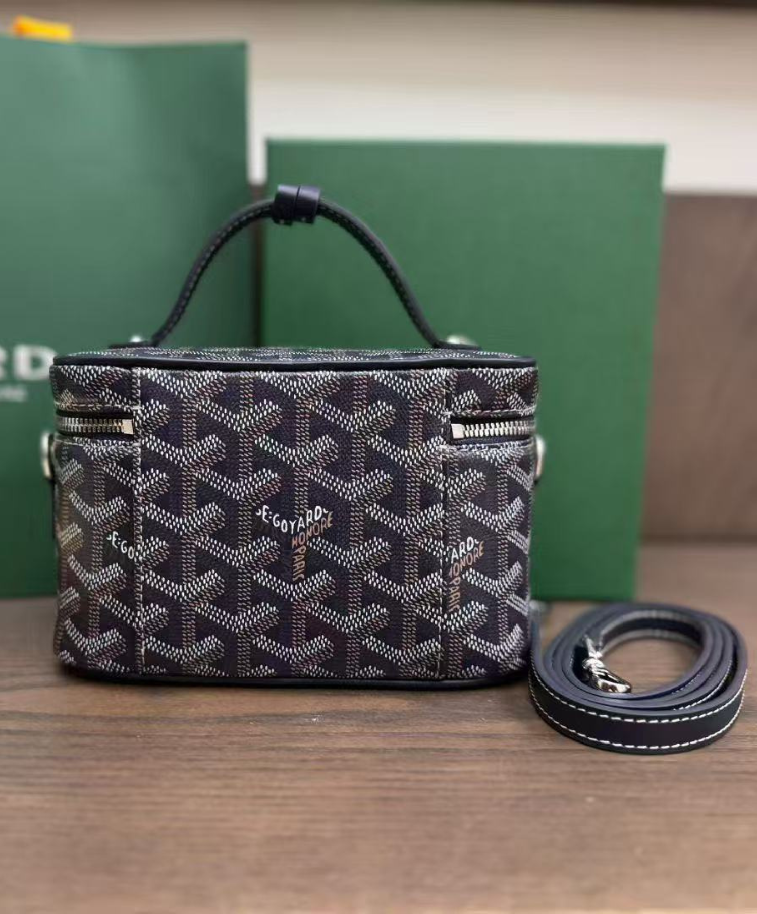 The Muse Mini vanity adopts the design codes of our Muse PM vanity in a miniaturized version. Both elegant and practical, it safely holds one's daily essentials. The Muse Mini vanity can be carried by hand, over the shoulder or cross-body thanks to its removable leather strap.