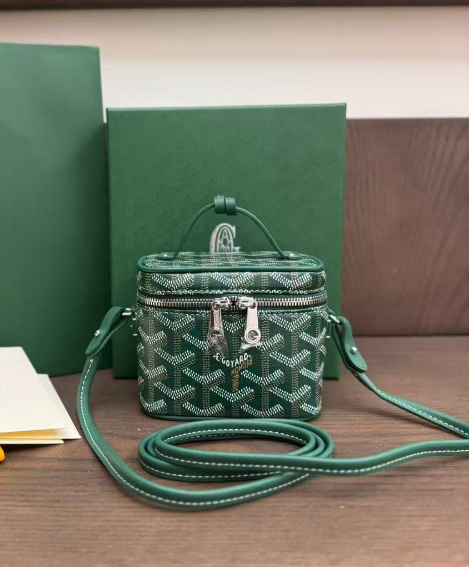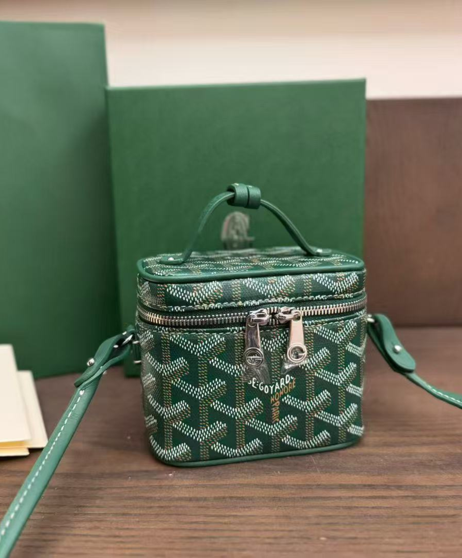 The Muse Nano vanity adopts the design codes of our Muse PM vanity in a miniaturized version. It safely holds small items (keys, cards, lipstick…) and can be carried by hand, over the shoulder or cross-body thanks to its removable leather strap.