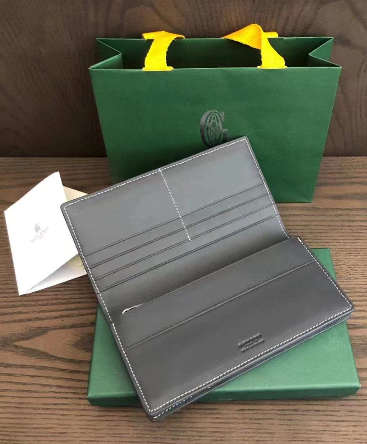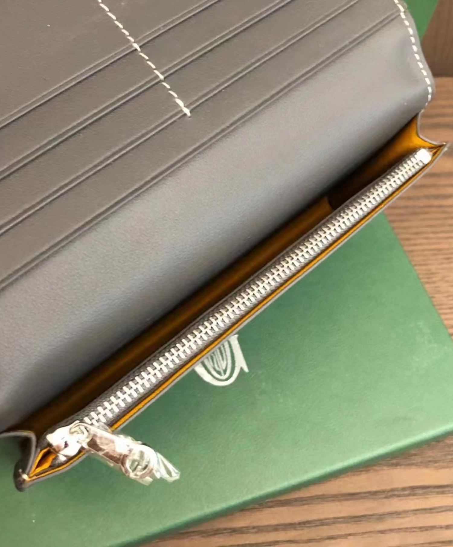 - 6 card pockets, 2 large flat pockets, gusset pocket for notes, zip change pocket
