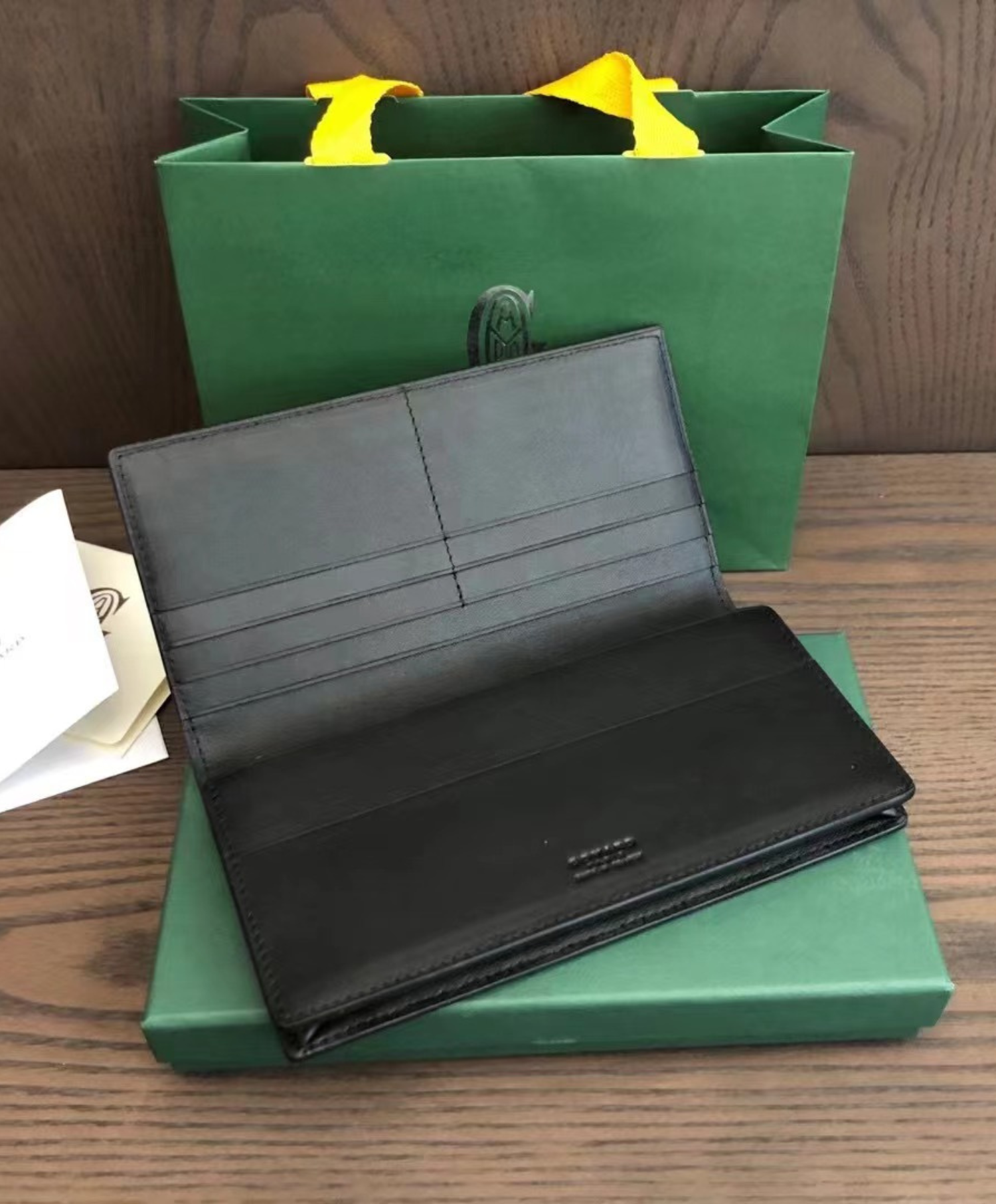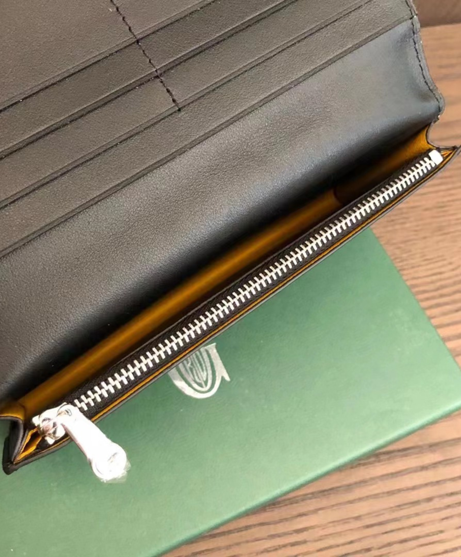- 6 card pockets, 2 large flat pockets, gusset pocket for notes, zip change pocket