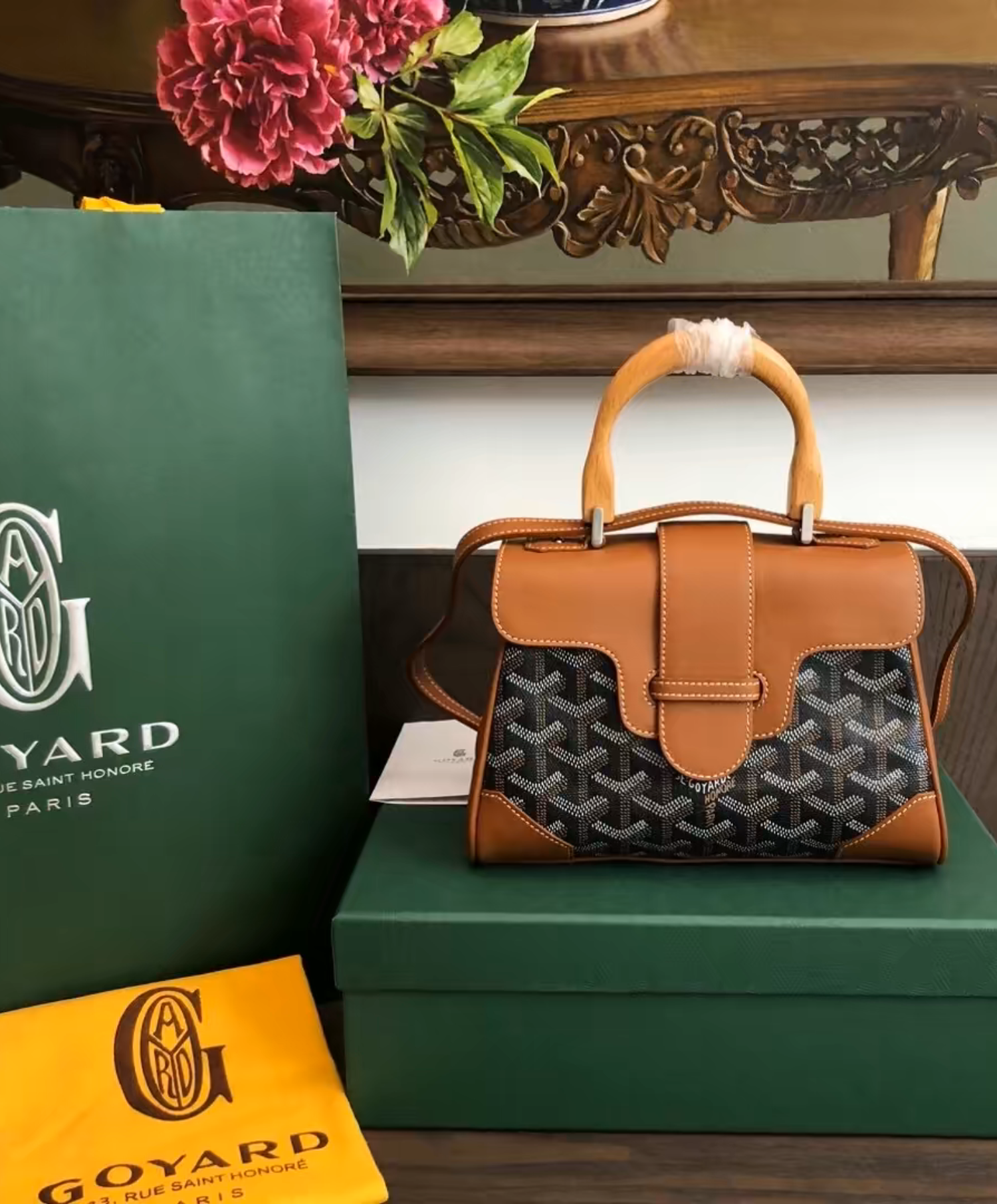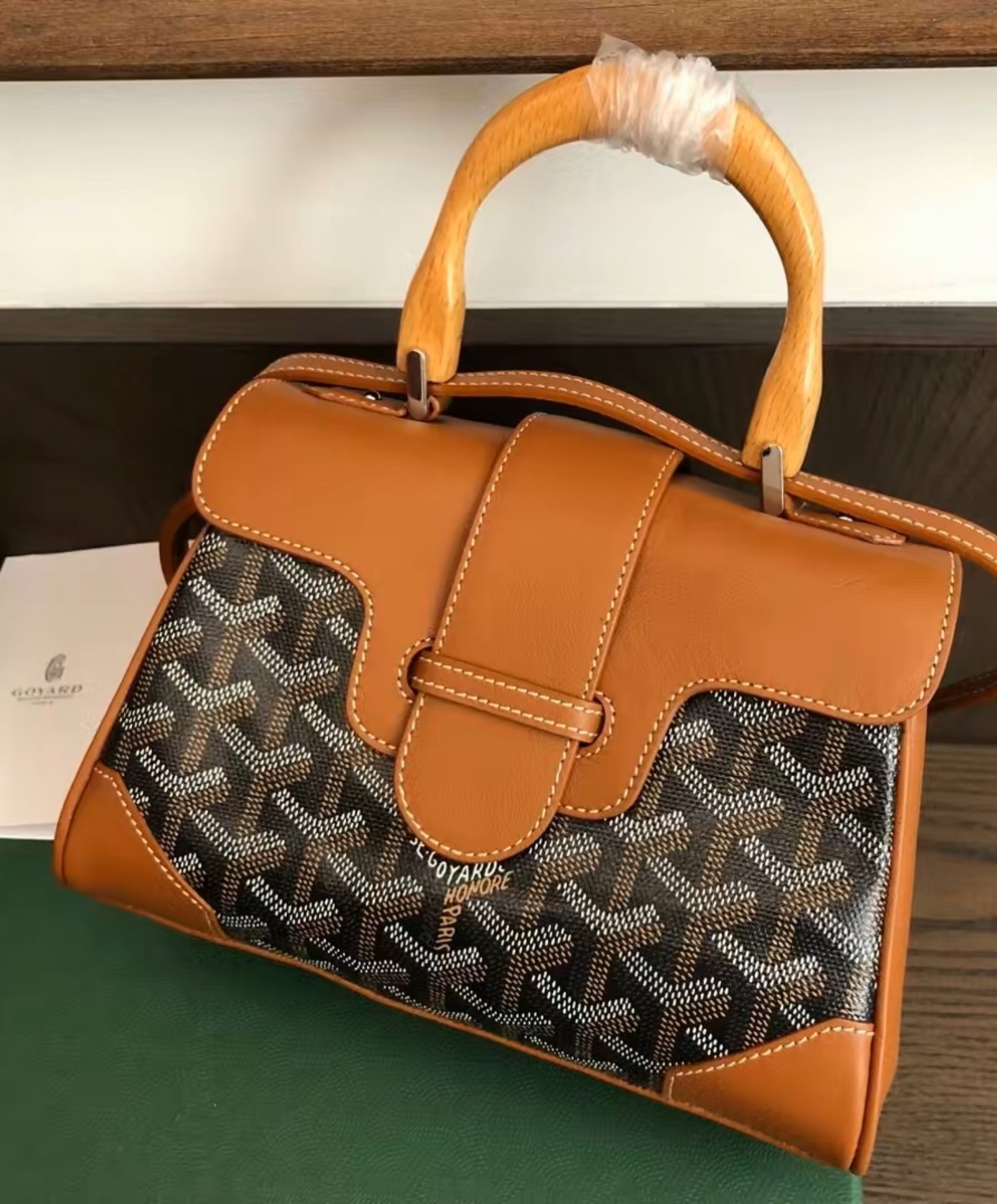 The Saigon bag is one of Maison Goyard’s emblematic pieces as it inherits all our trunk-making signature codes with the use of wood and leather corners. In this flexible, miniature format, the Saigon bag can be worn with or without a strap for a chic and elegant style.