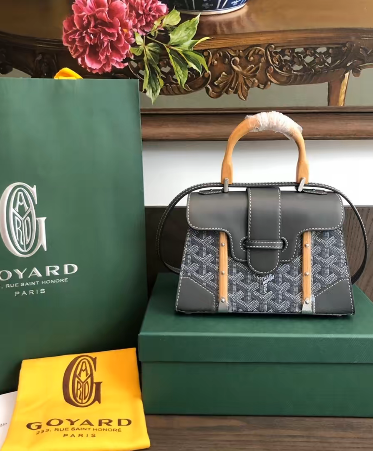 The Saigon bag is one of Maison Goyard’s emblematic pieces as it inherits all our trunk-making signature codes like the wood batons, leather corners and trunk rivets. In this structured, miniature format, the Saigon bag can be worn with or without a strap for a chic and elegant style.