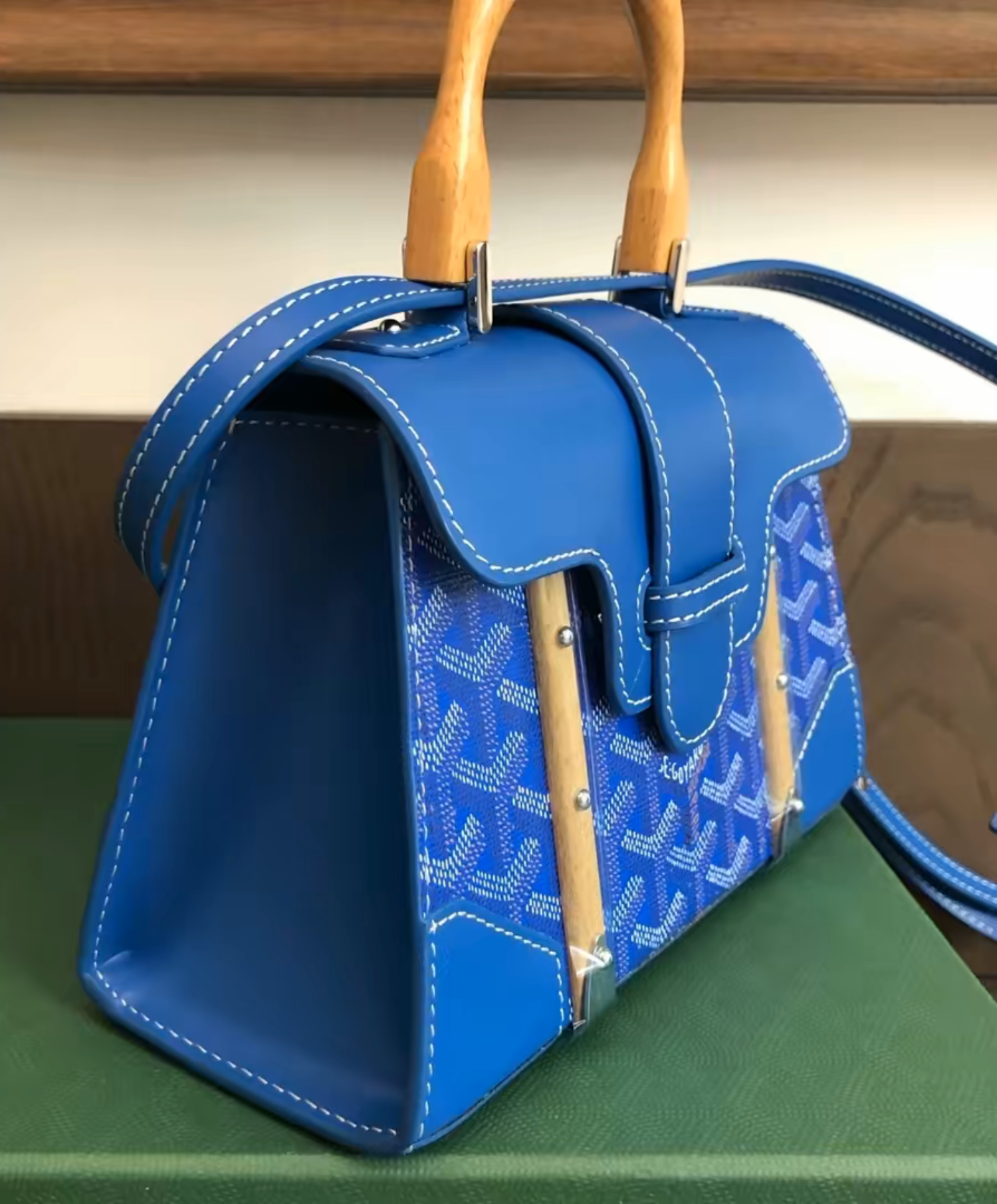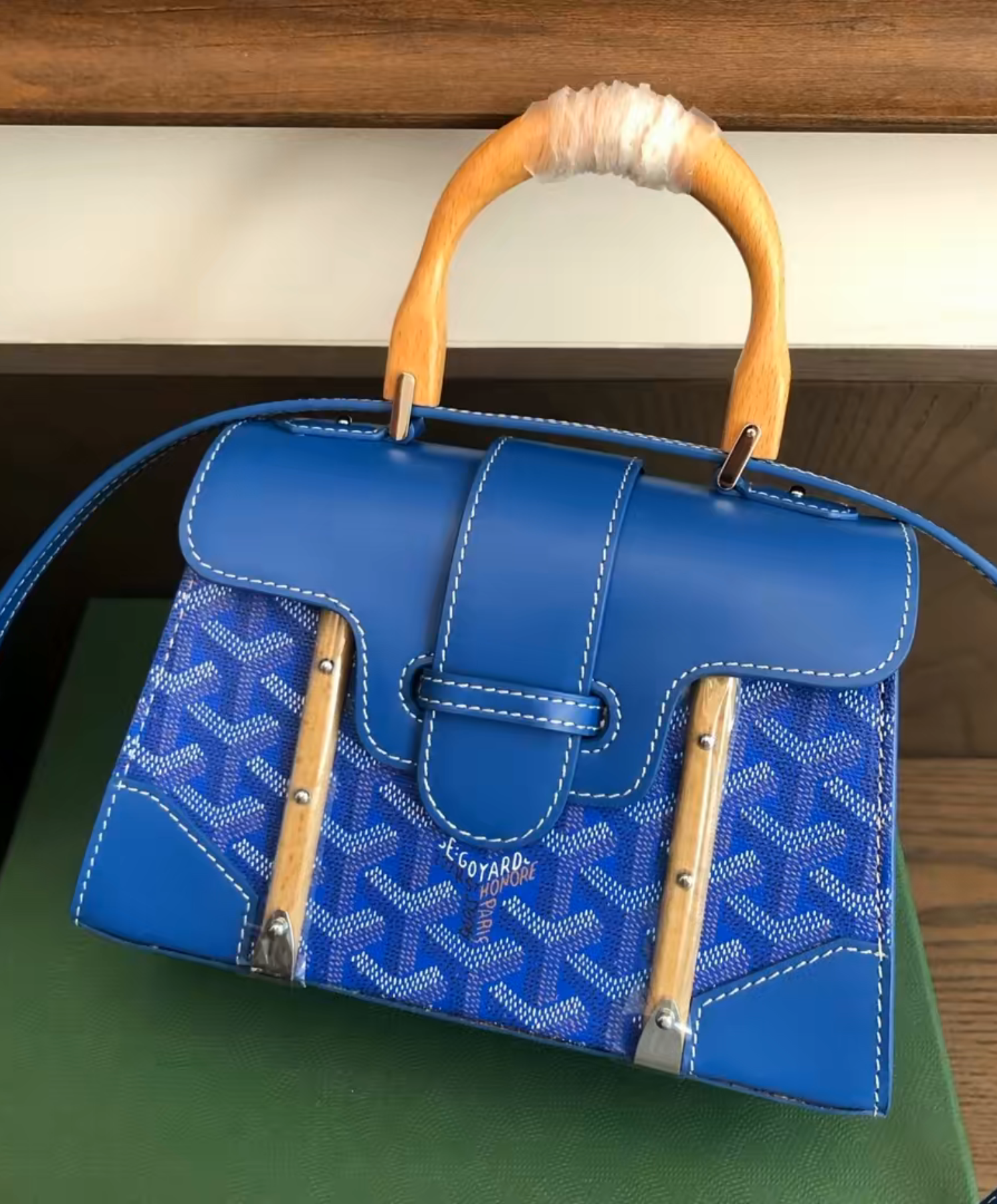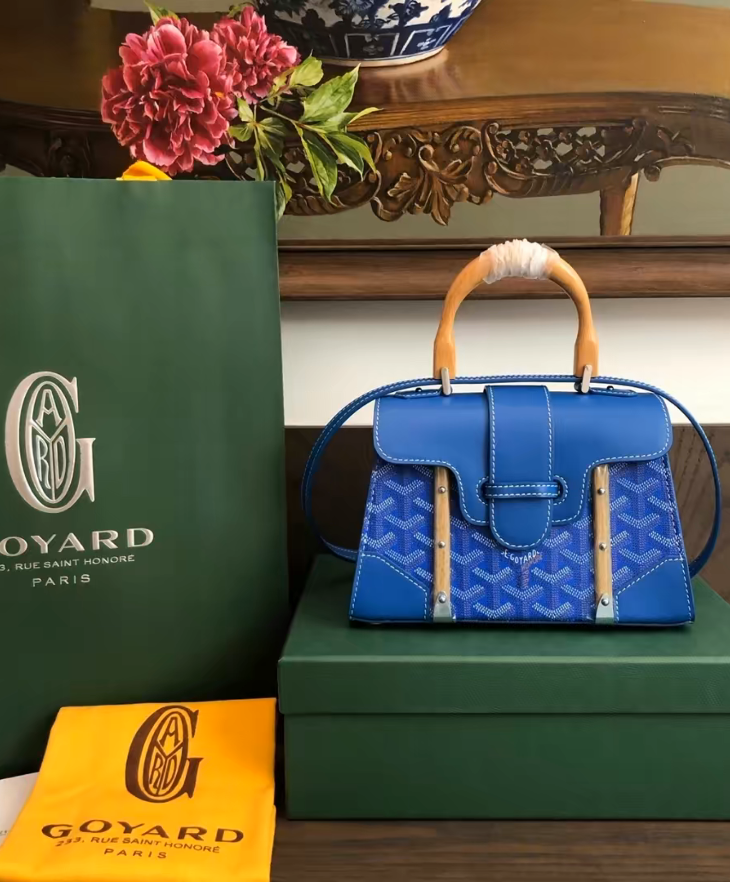 The Saigon bag is one of Maison Goyard’s emblematic pieces as it inherits all our trunk-making signature codes like the wood batons, leather corners and trunk rivets. In this structured, miniature format, the Saigon bag can be worn with or without a strap for a chic and elegant style.