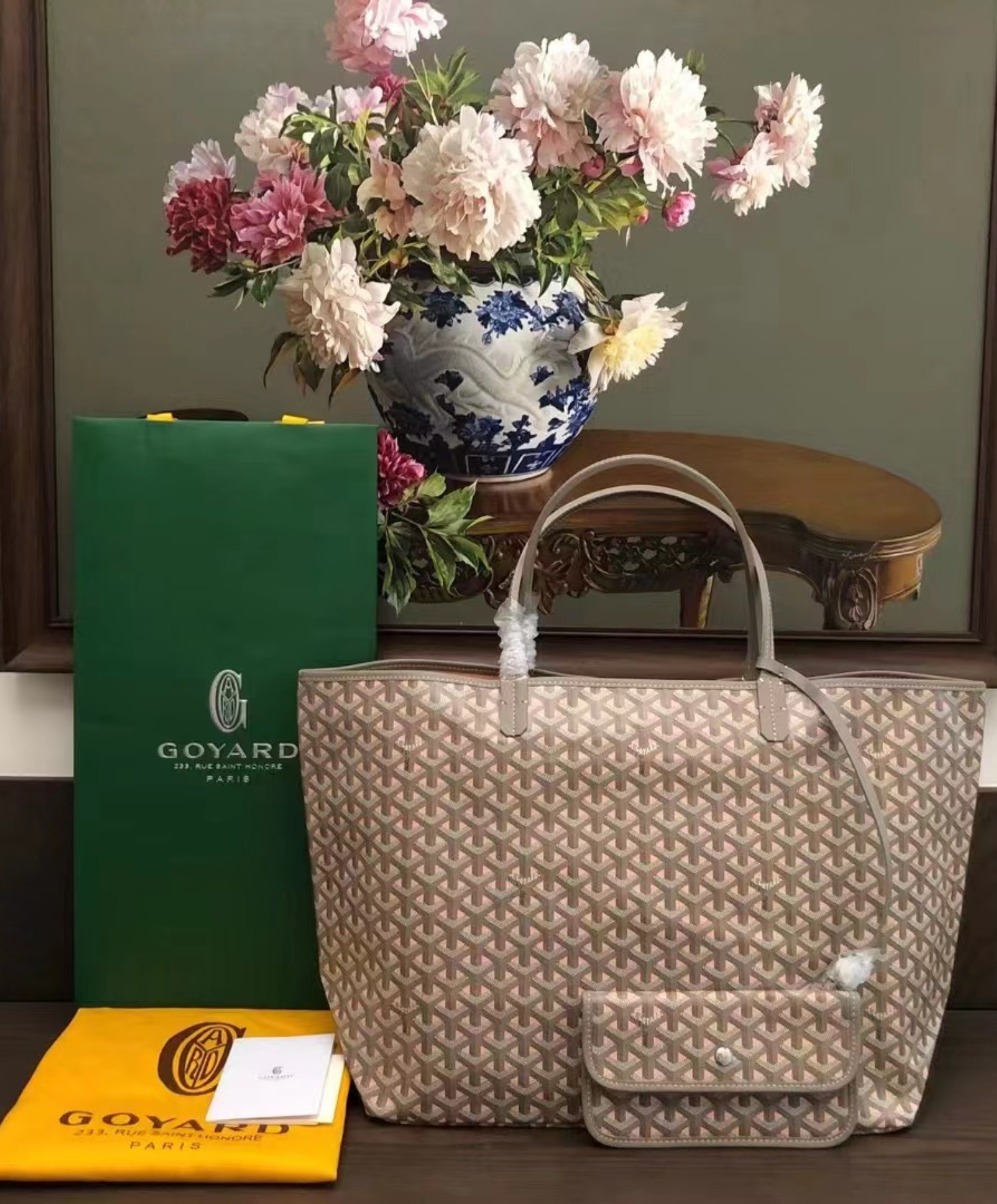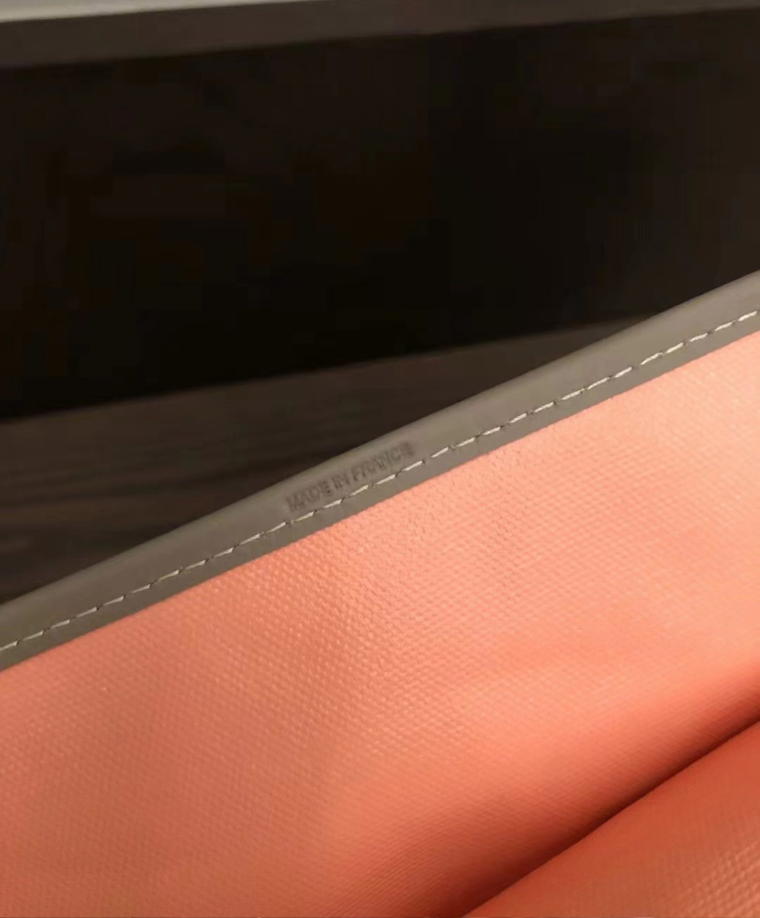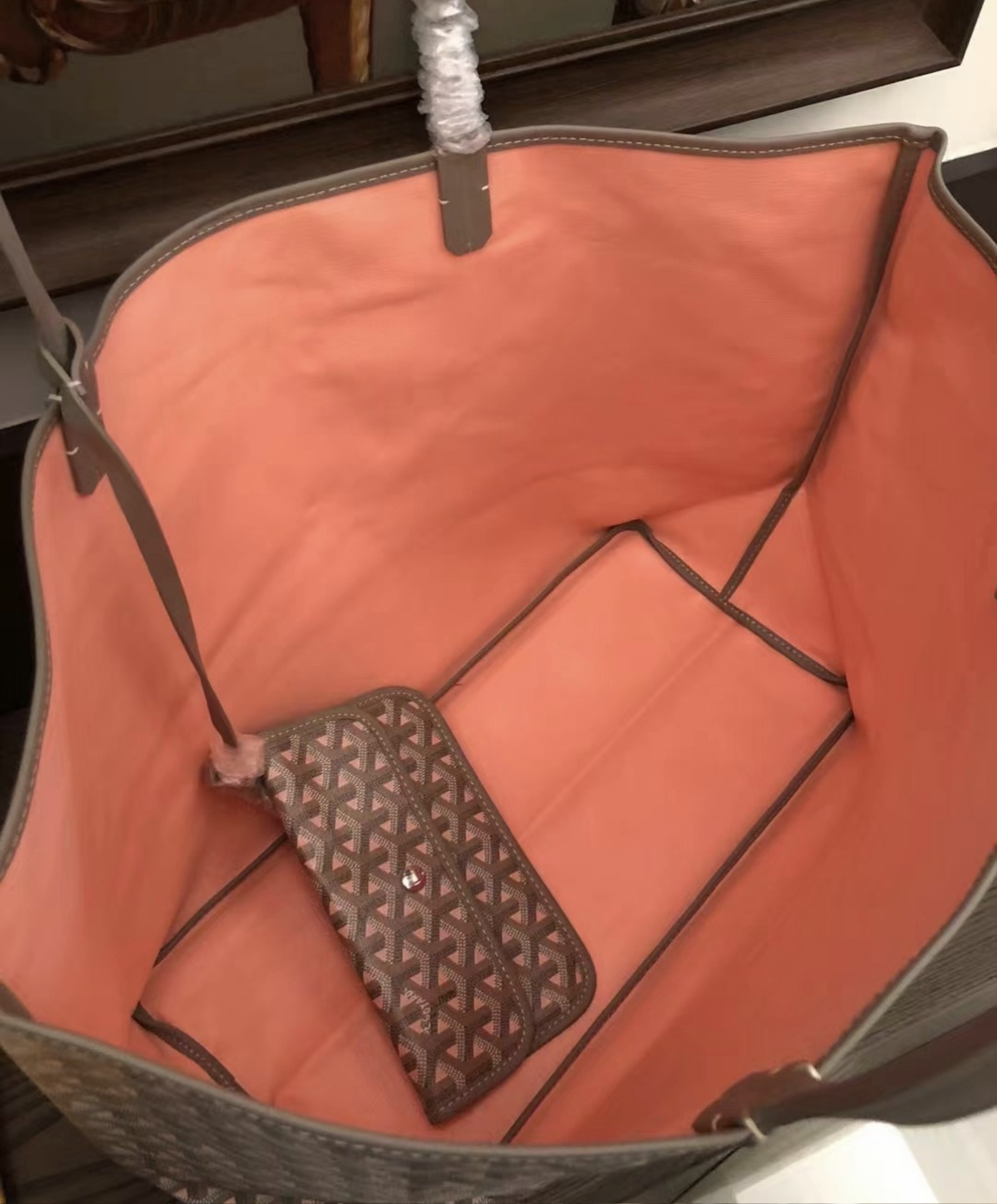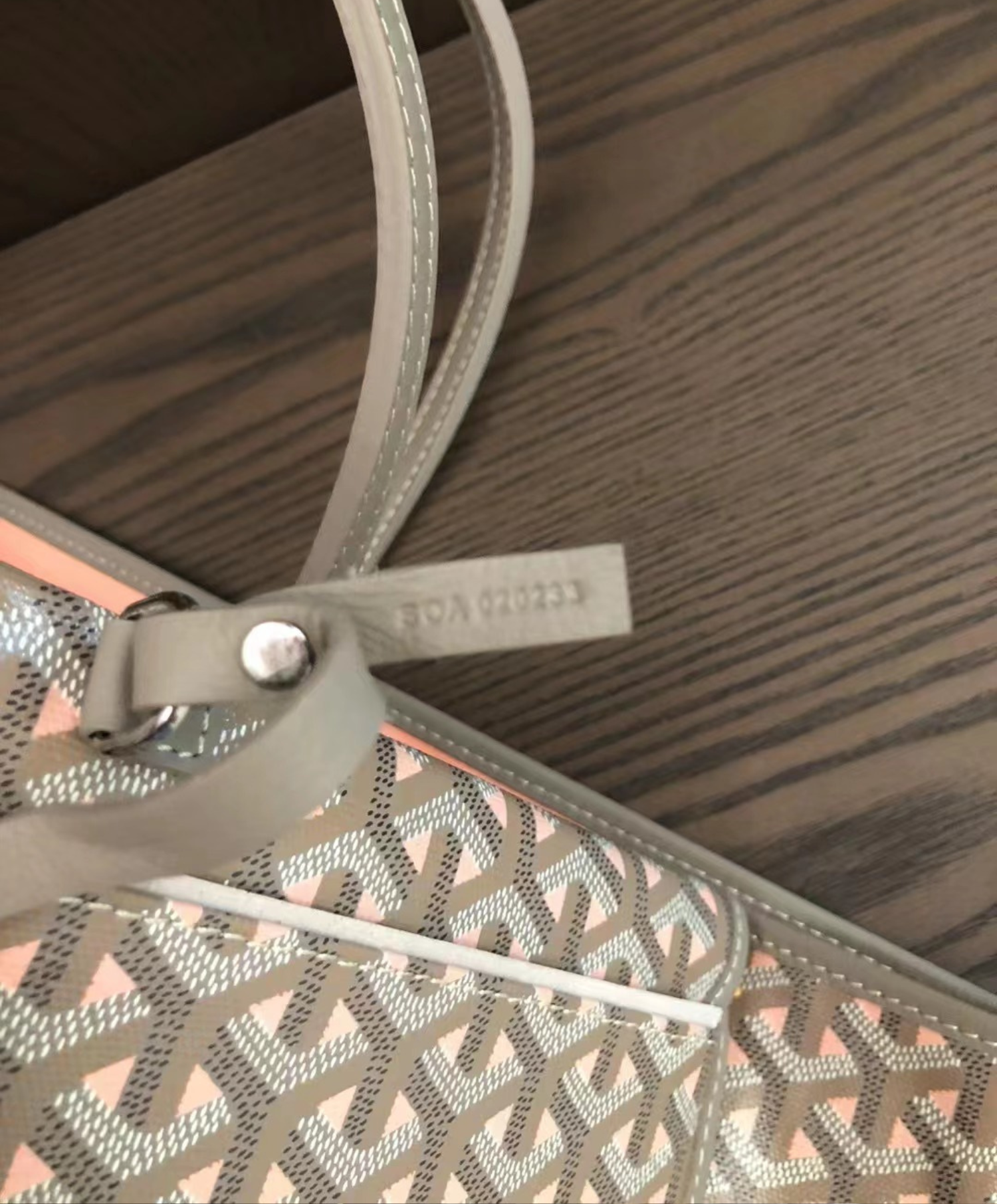 Saint Louis GM bag is offered in limited edition in a new exclusive Goyardine Claire-Voie Grege canvas. The inner coated canvas and distinctive outer triangles are both of the same colour which creates the illusion that one can see through the bag. 3 colours are available: Khaki, Turquoise and Powder Pink. Extremely light and entirely reversible, the Saint Louis GM bag has two leather handles with progressive thickness allowing different ways to wear it. It features a removable inside pocket attached to one of the handles for a quick and easy access to its content.