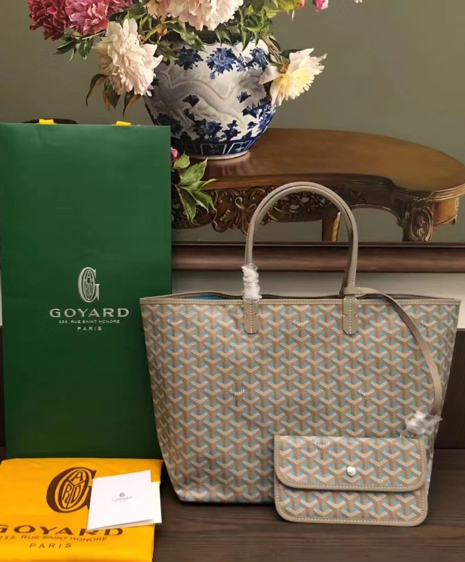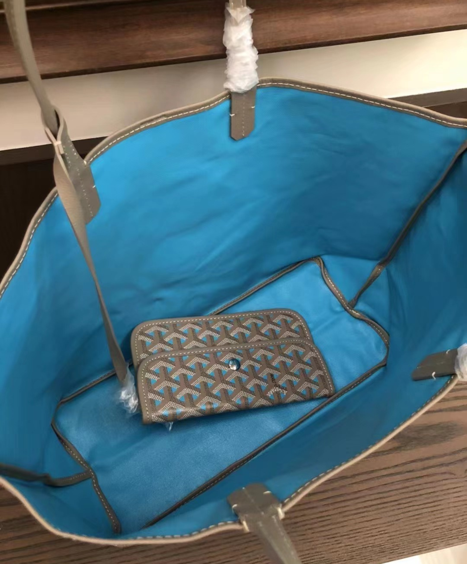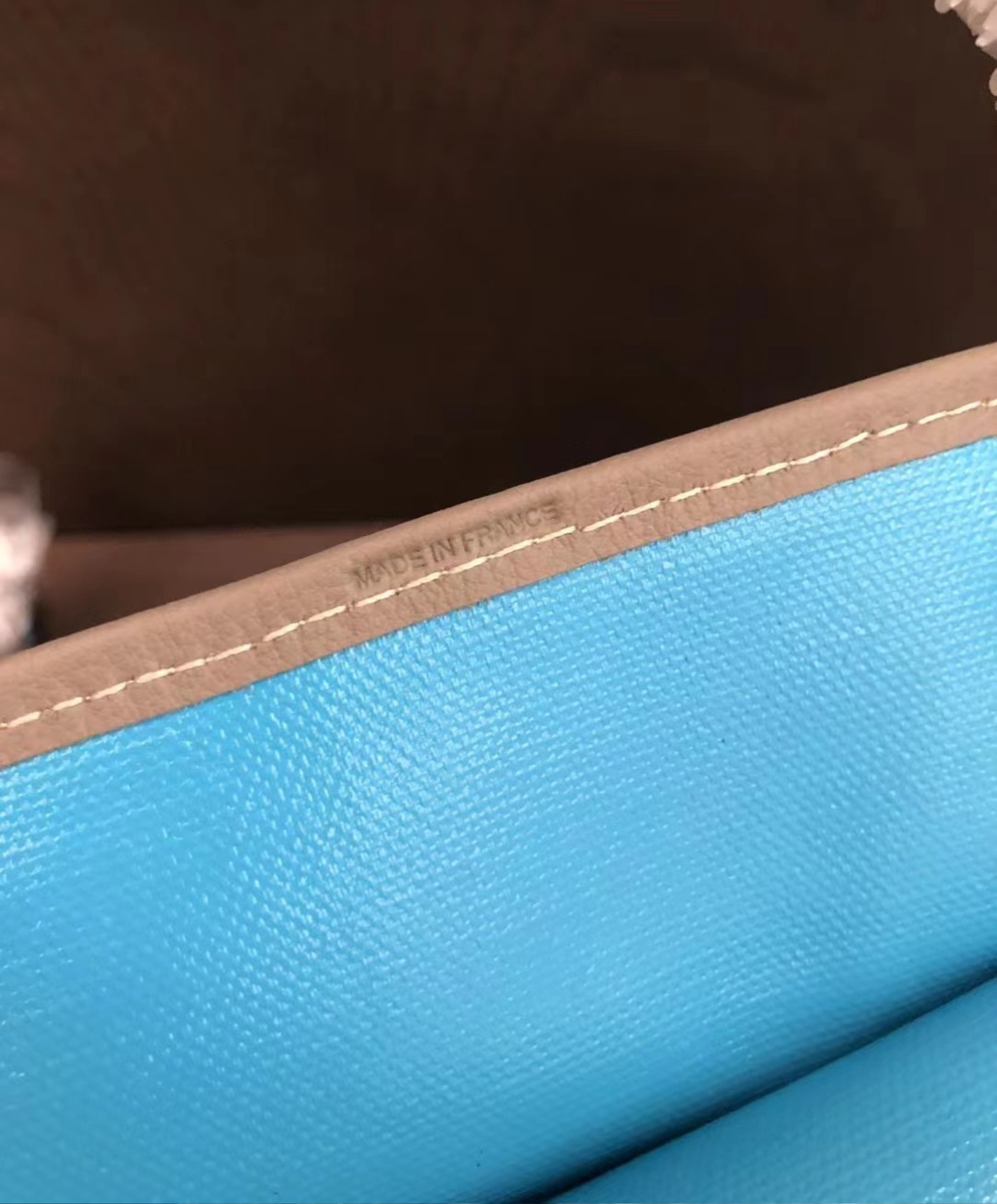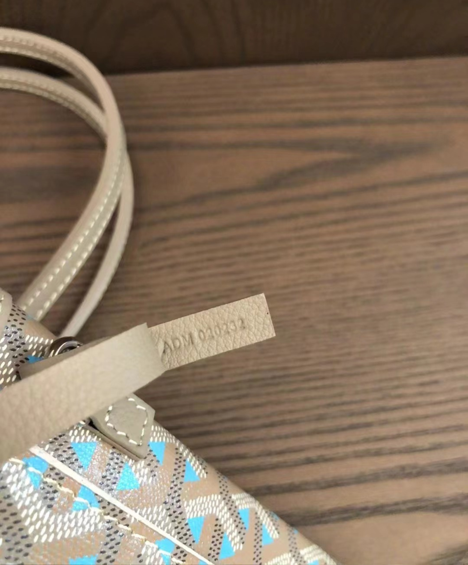 Saint Louis PM bag is offered in limited edition in a new exclusive Goyardine Claire-Voie Grege canvas. The inner coated canvas and distinctive outer triangles are both of the same colour which creates the illusion that one can see through the bag. 3 colours are available: Khaki, Turquoise and Powder Pink. Extremely light and entirely reversible, the Saint Louis PM bag has two leather handles with progressive thickness allowing different ways to wear it. It features a removable inside pocket attached to one of the handles for a quick and easy access to its content.