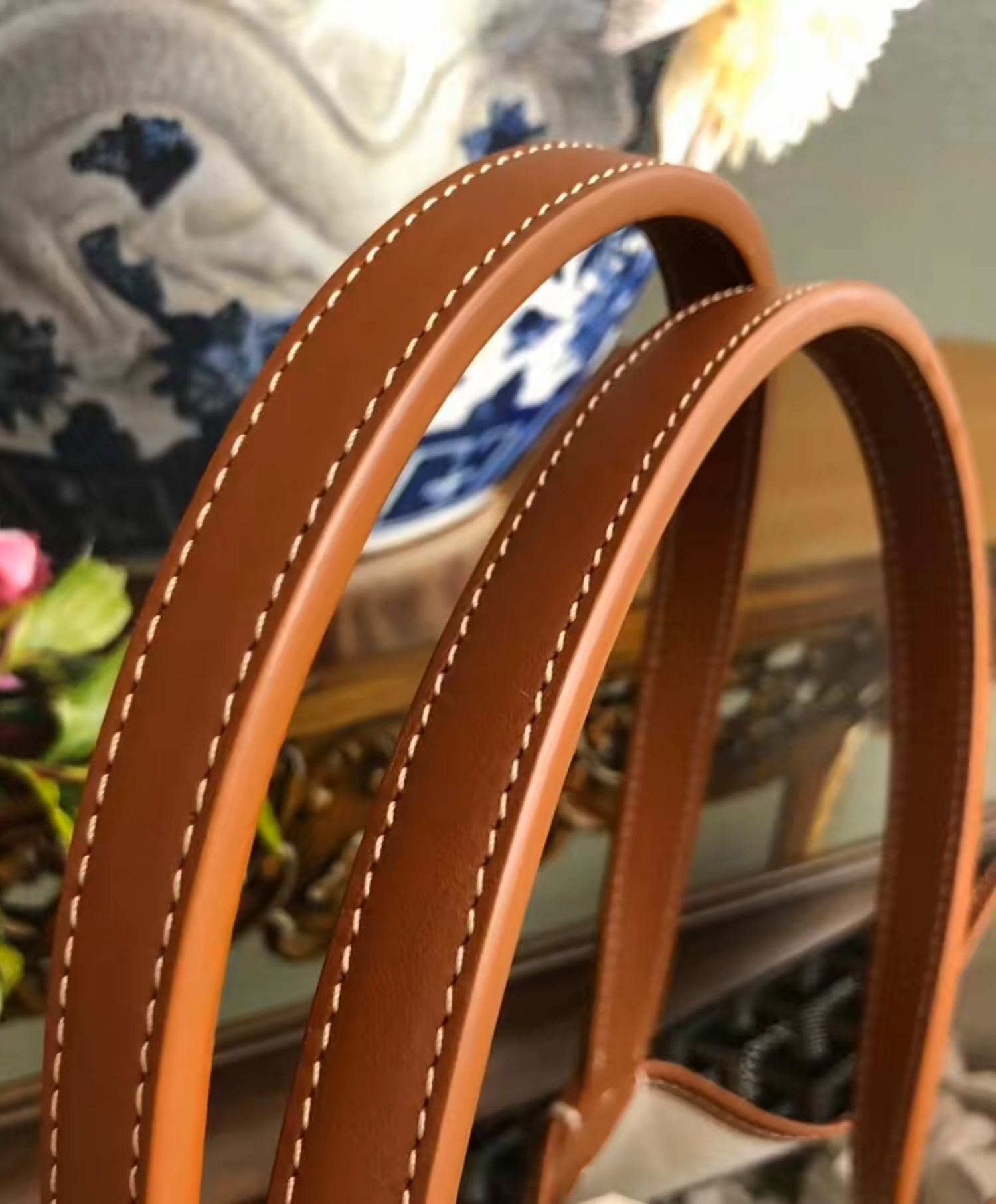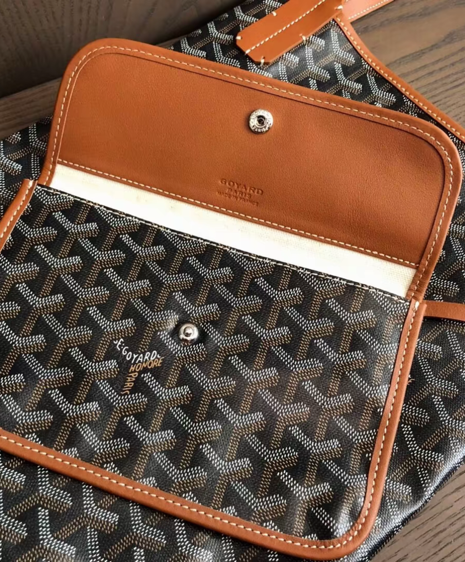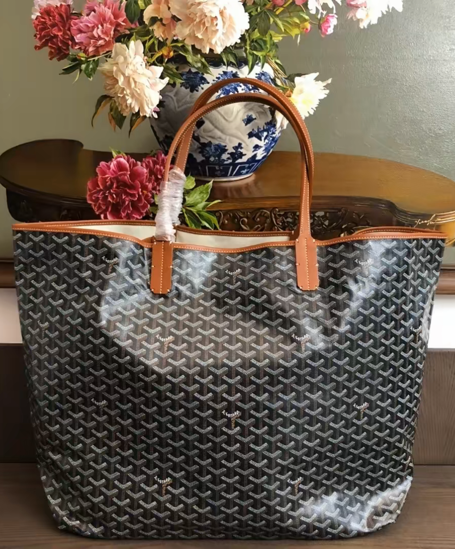 The Saint Louis GM bag is made from Goyardine and is unlined. It is extremely light and completely reversible. Wear it showing the Goyardine fabric or inside out, showing the linen and cotton mix. Its two leather handles with their progressive thickness mean it can be worn in different ways. It has a removable inside pocket attached to one of the handles for quick and easy access.
