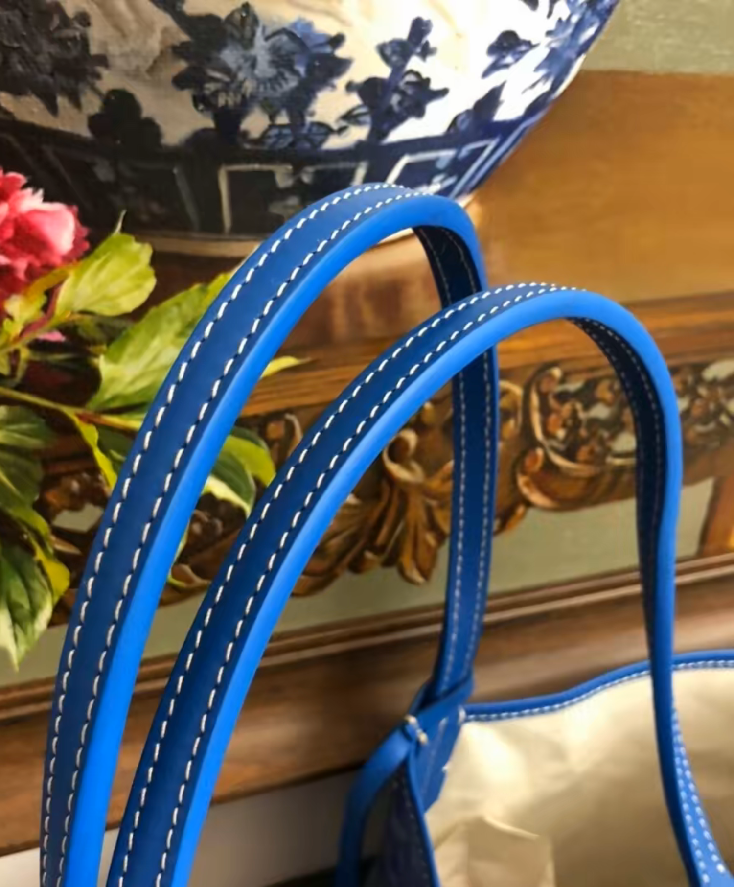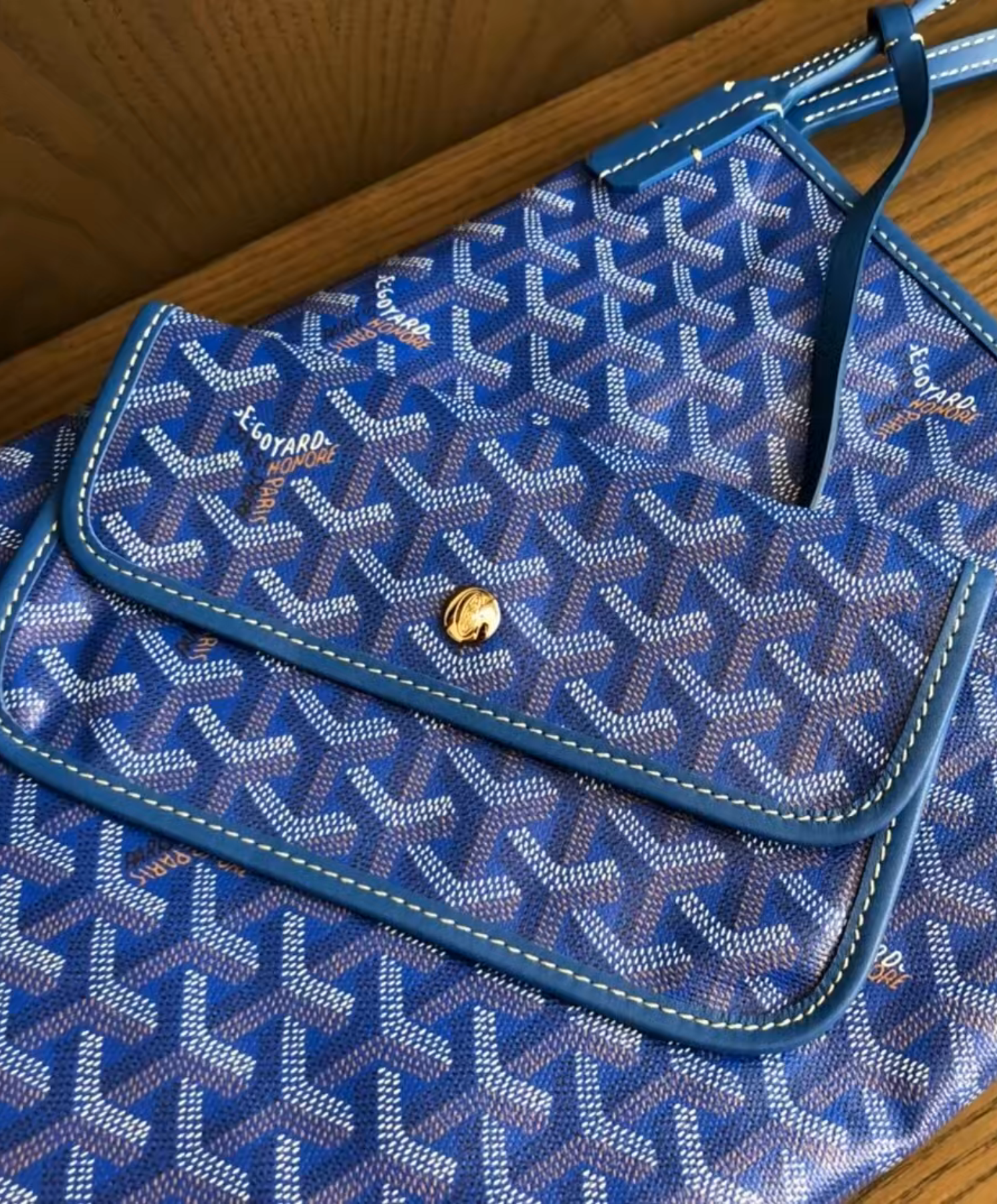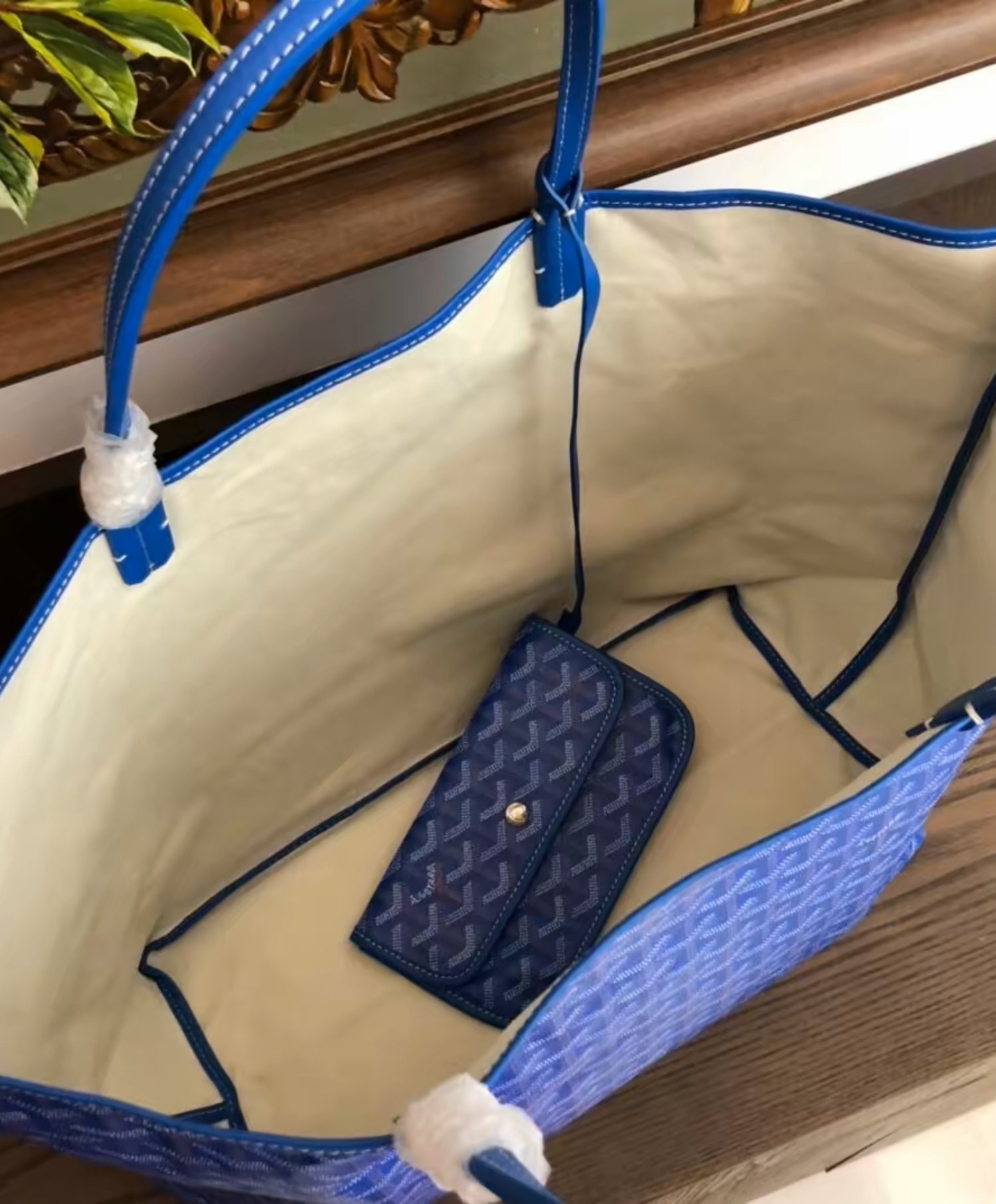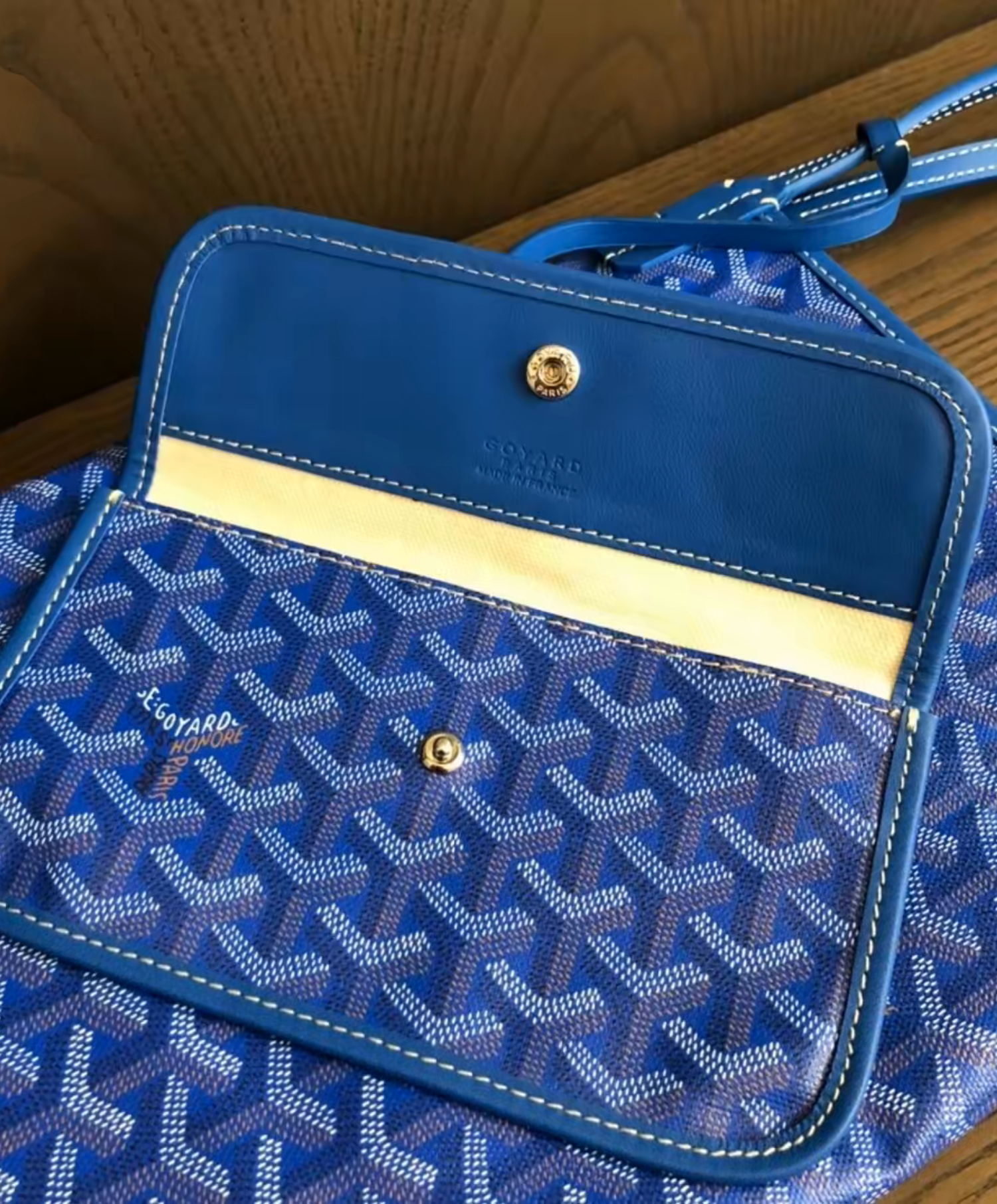 The Saint Louis GM bag is made from Goyardine and is unlined. It is extremely light and completely reversible. Wear it showing the Goyardine fabric or inside out, showing the linen and cotton mix. Its two leather handles with their progressive thickness mean it can be worn in different ways. It has a removable inside pocket attached to one of the handles for quick and easy access.