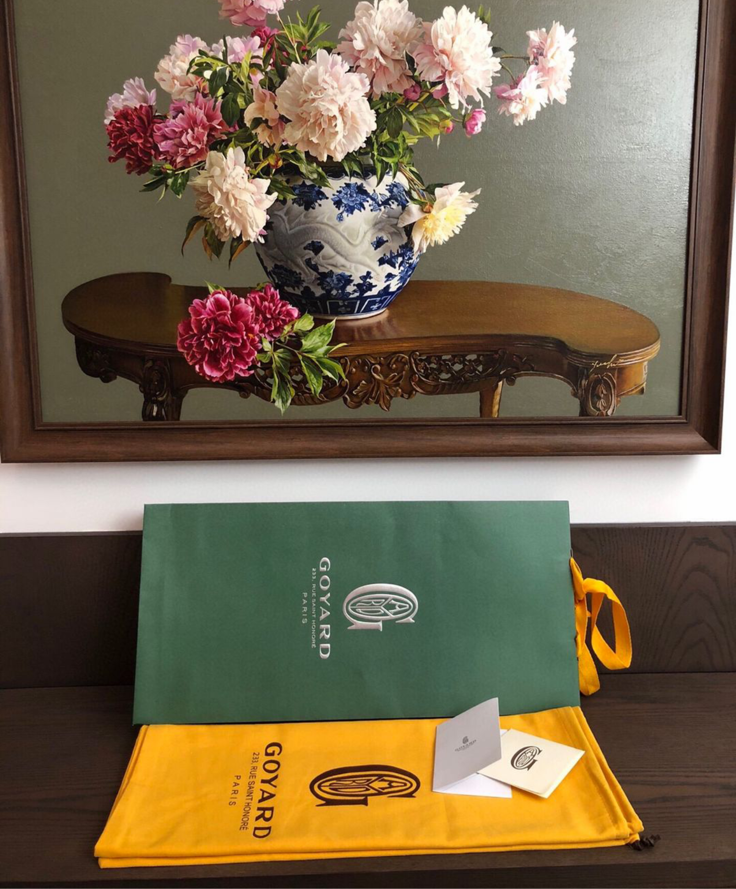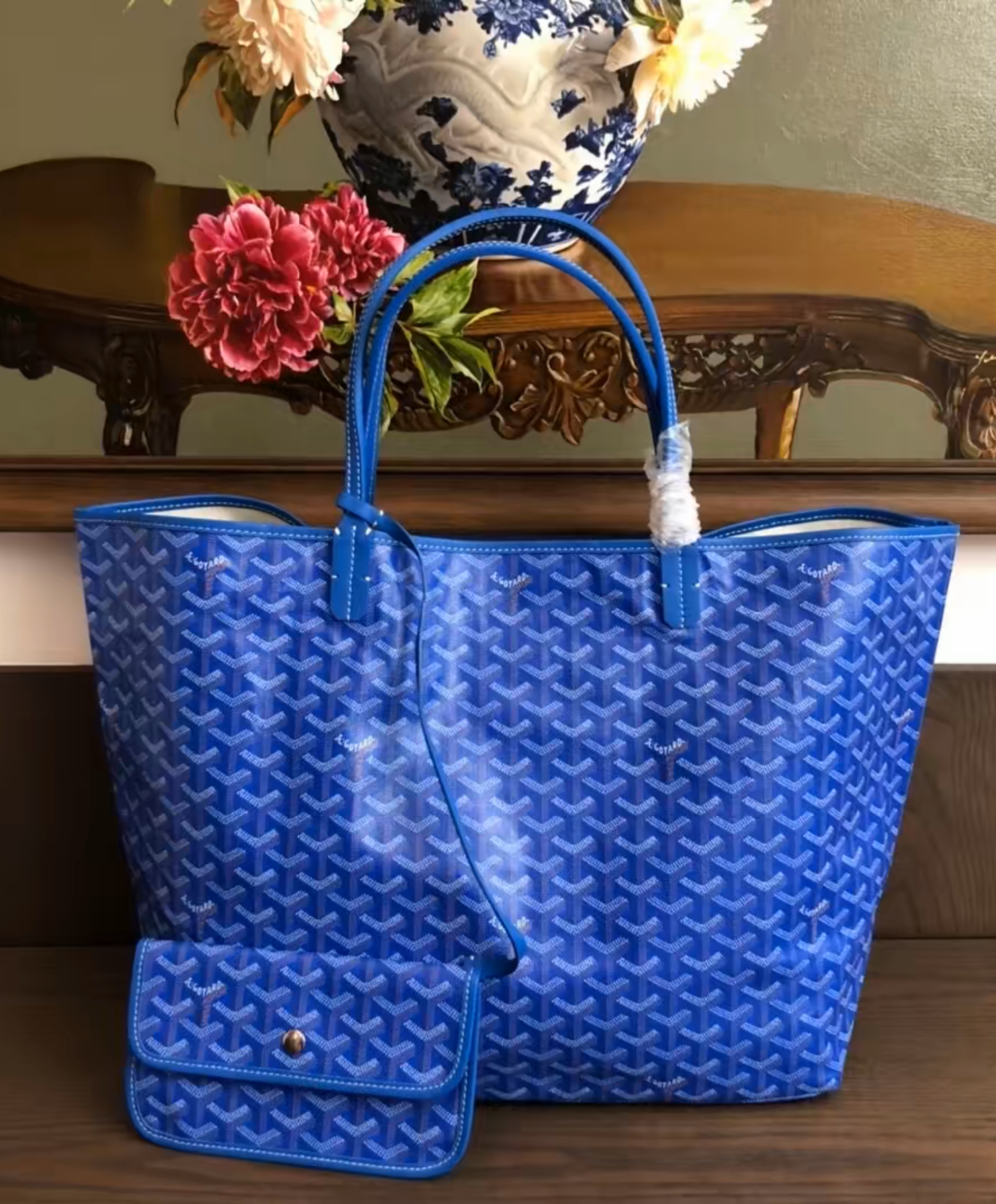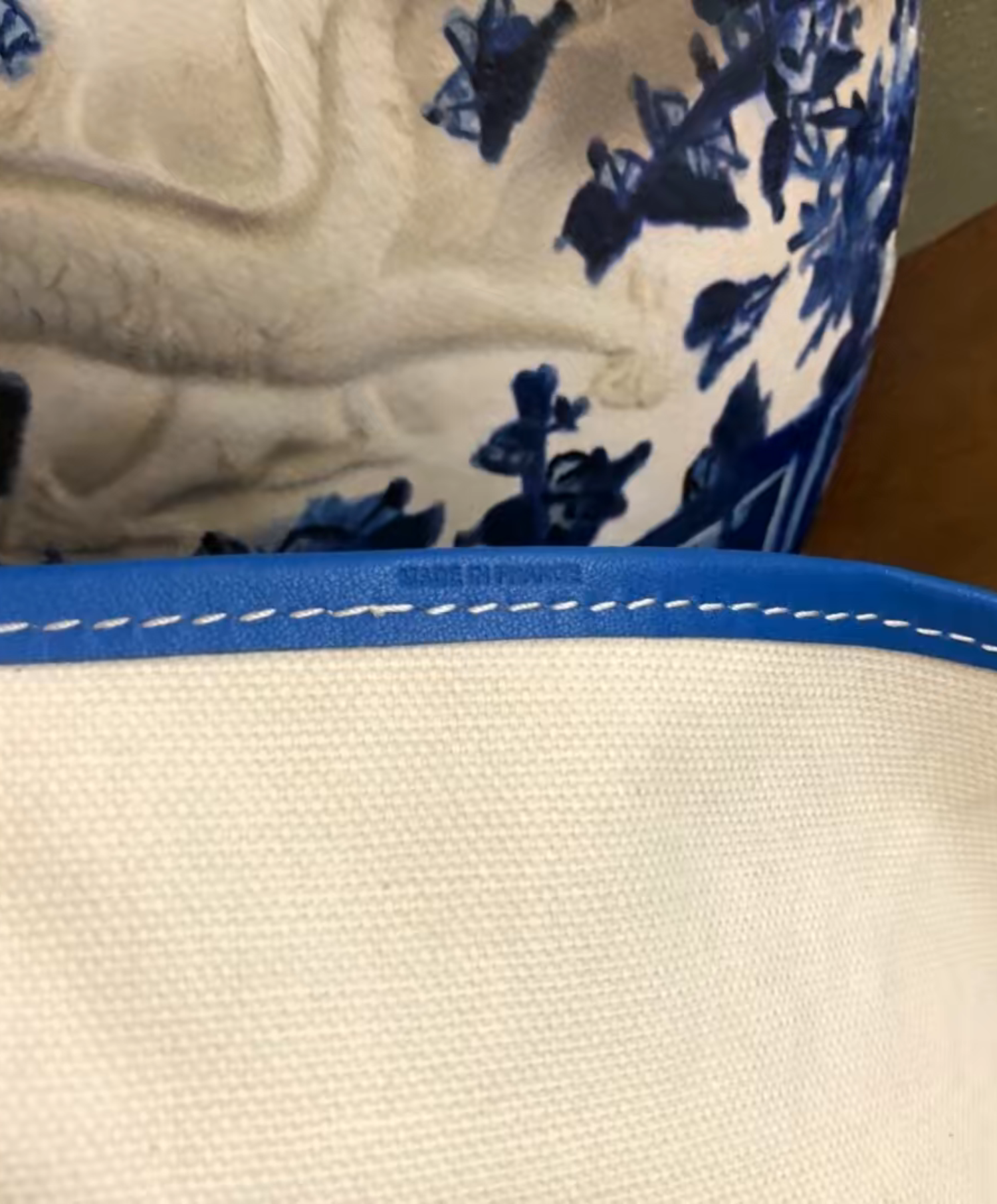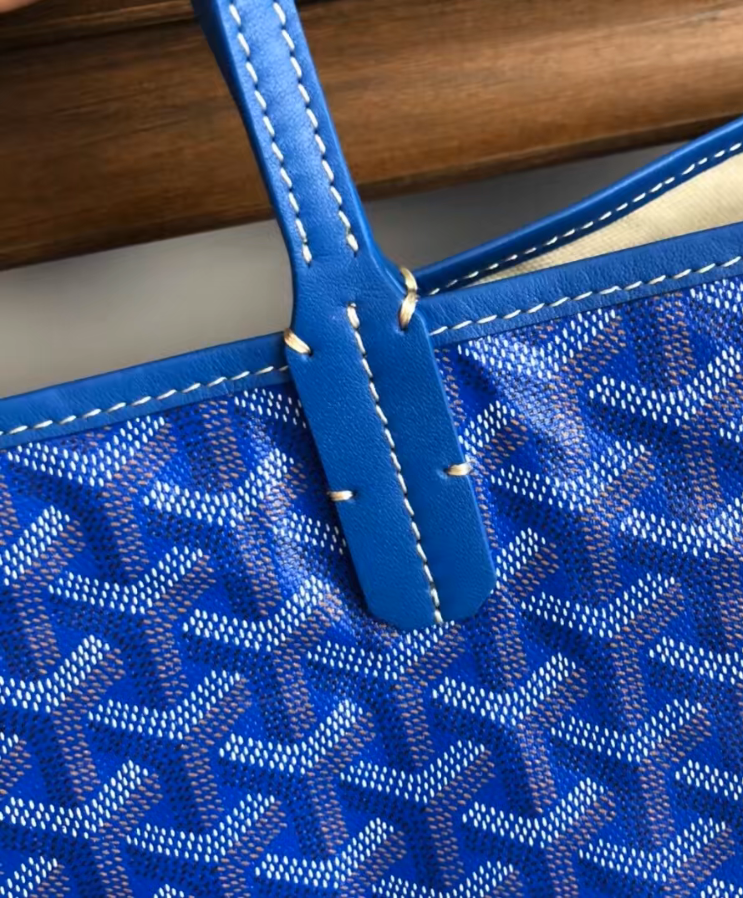The Saint Louis GM bag is made from Goyardine and is unlined. It is extremely light and completely reversible. Wear it showing the Goyardine fabric or inside out, showing the linen and cotton mix. Its two leather handles with their progressive thickness mean it can be worn in different ways. It has a removable inside pocket attached to one of the handles for quick and easy access.