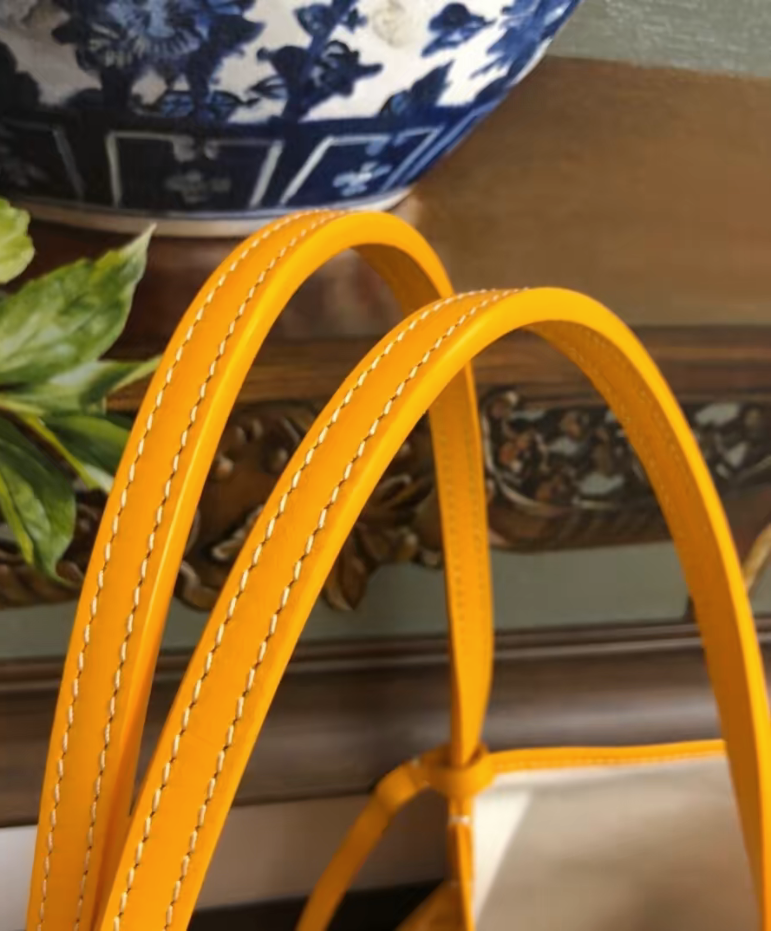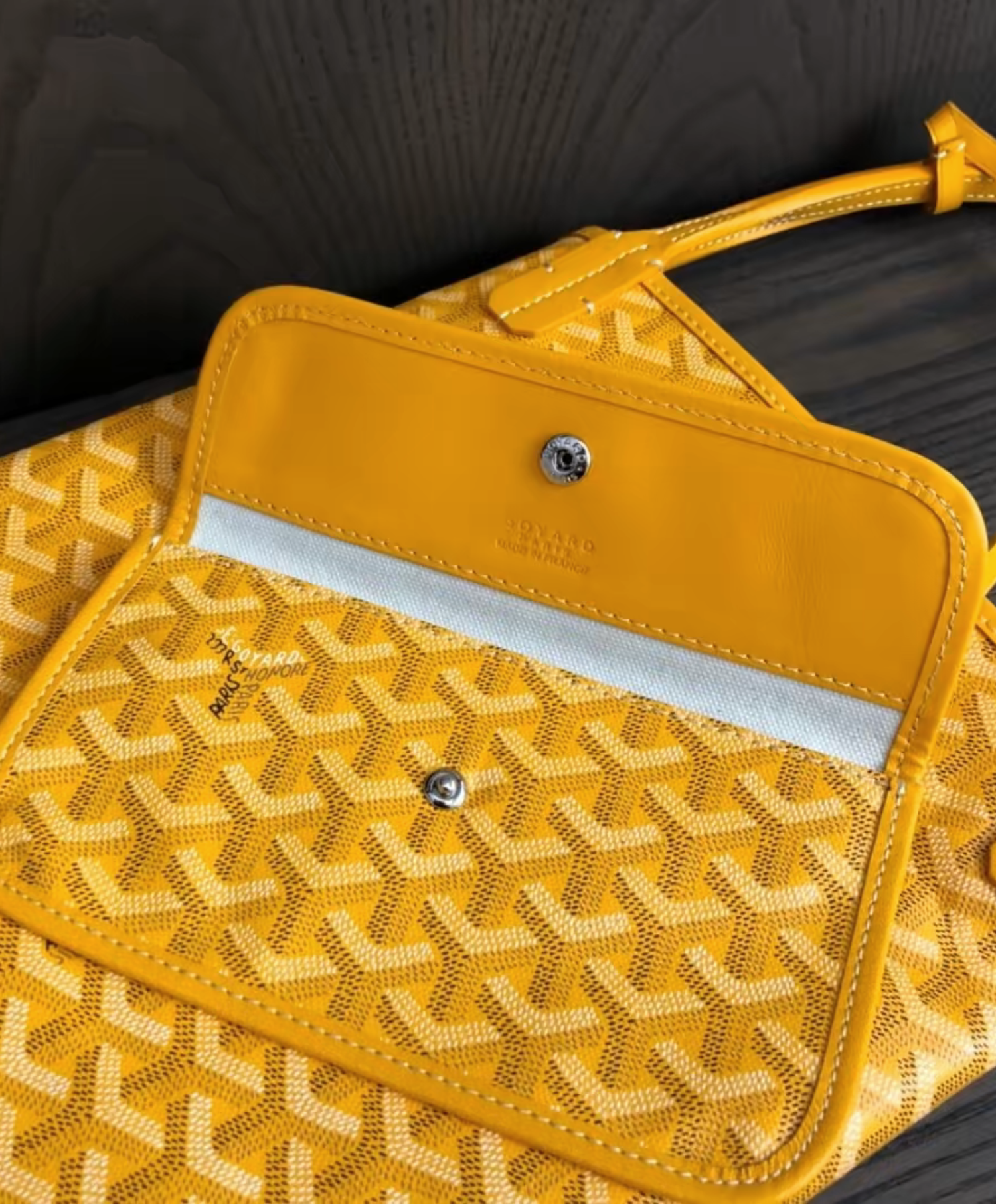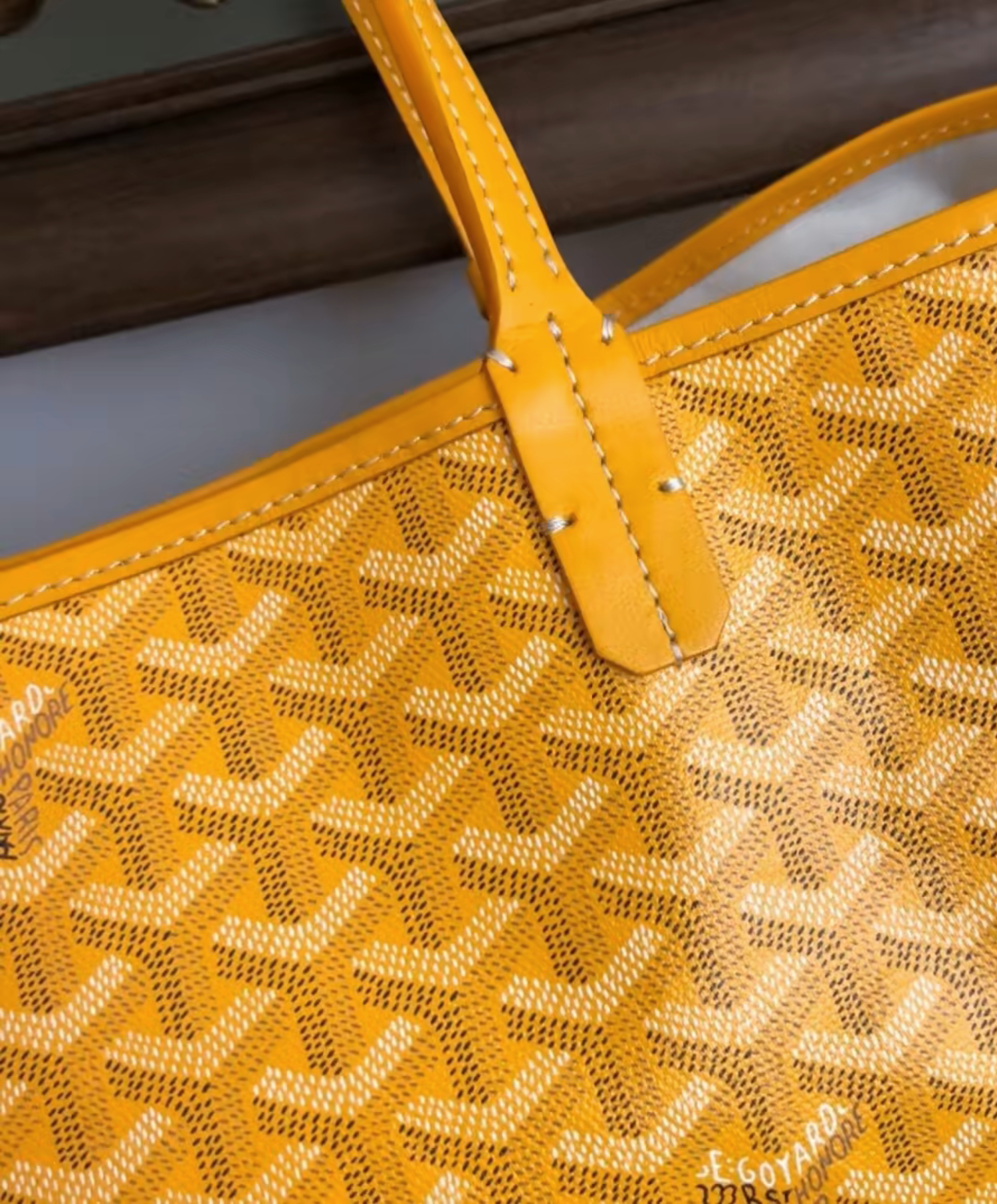The Saint Louis GM bag is made from Goyardine and is unlined. It is extremely light and completely reversible. Wear it showing the Goyardine fabric or inside out, showing the linen and cotton mix. Its two leather handles with their progressive thickness mean it can be worn in different ways. It has a removable inside pocket attached to one of the handles for quick and easy access.
