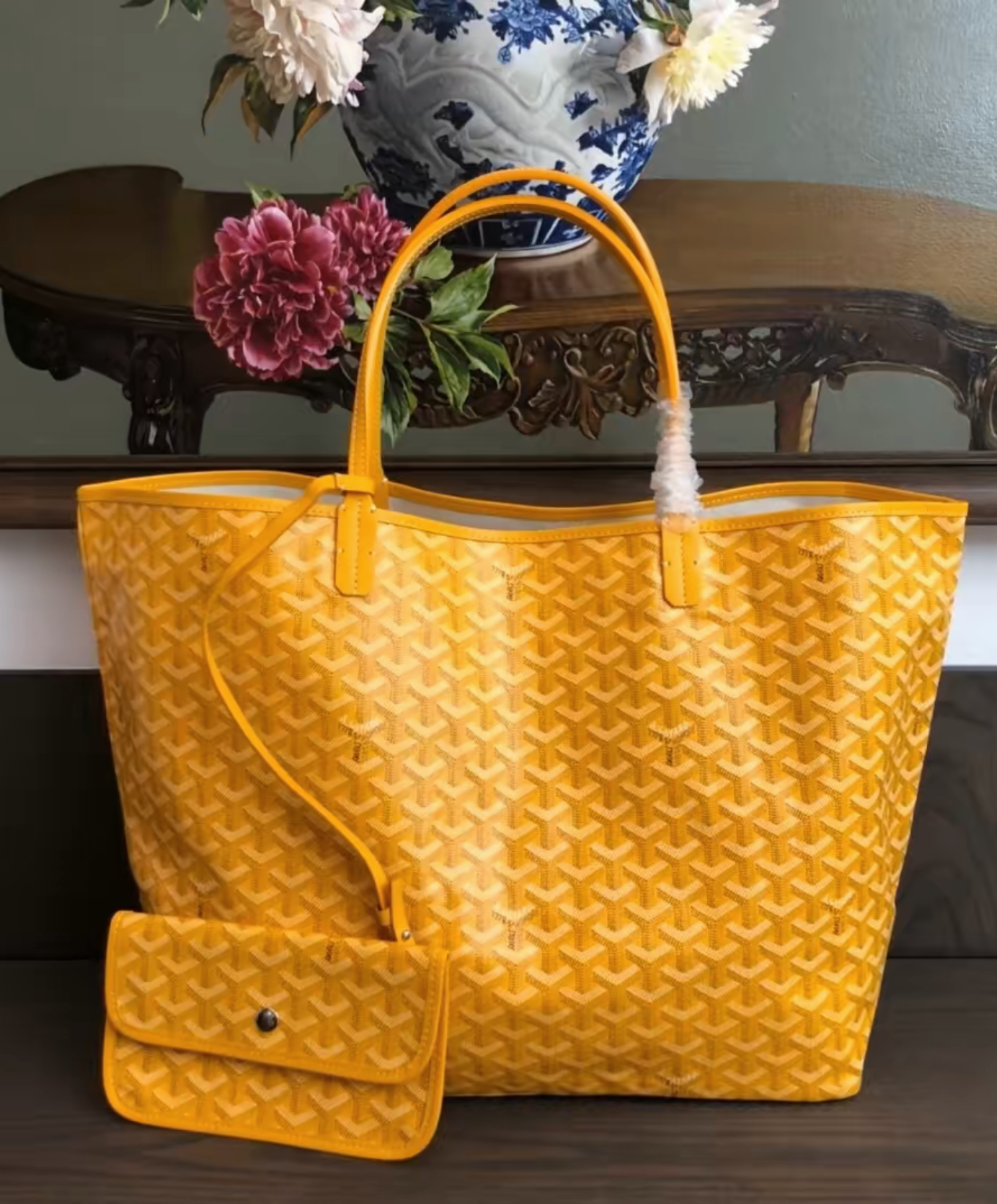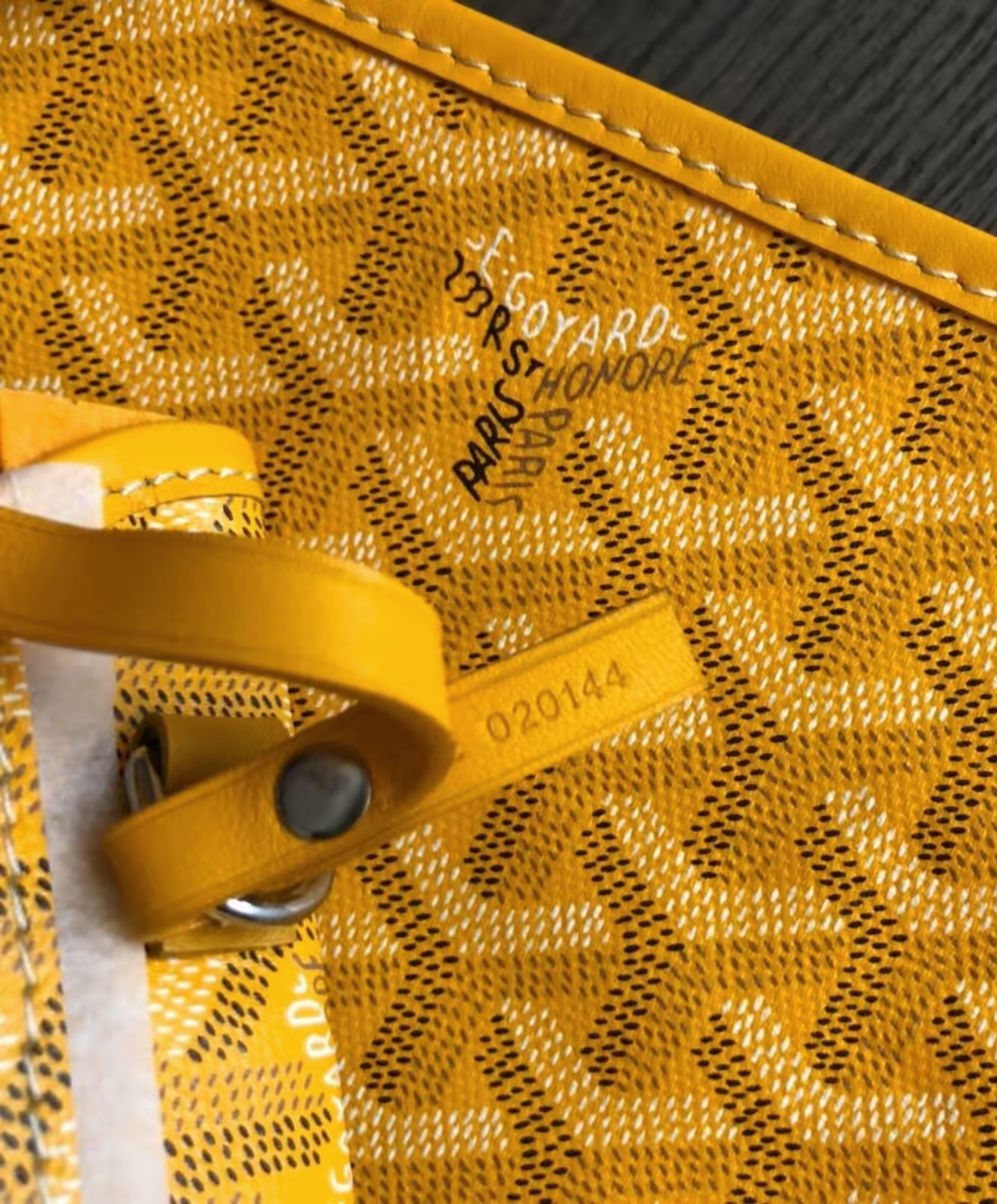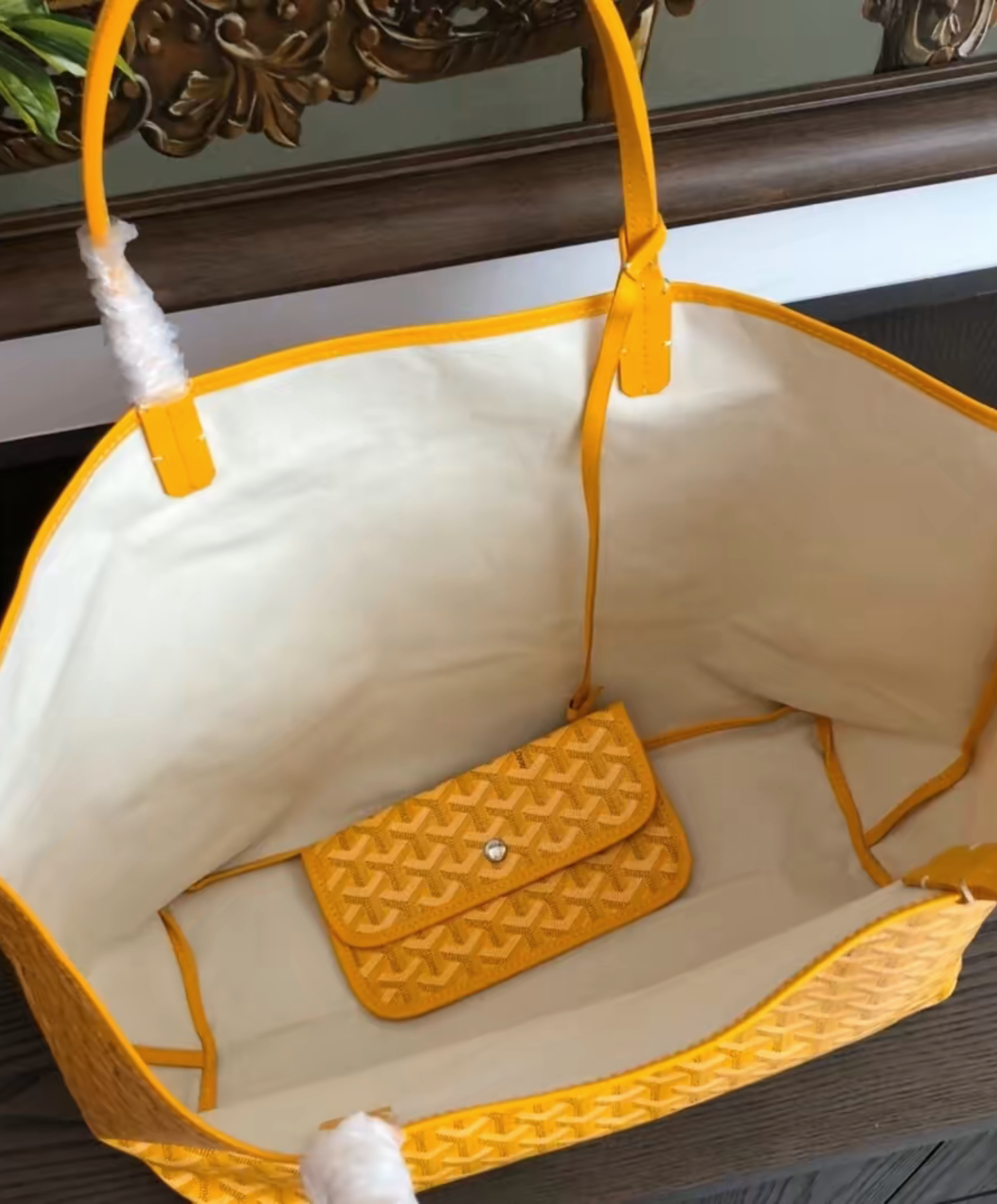 The Saint Louis GM bag is made from Goyardine and is unlined. It is extremely light and completely reversible. Wear it showing the Goyardine fabric or inside out, showing the linen and cotton mix. Its two leather handles with their progressive thickness mean it can be worn in different ways. It has a removable inside pocket attached to one of the handles for quick and easy access.