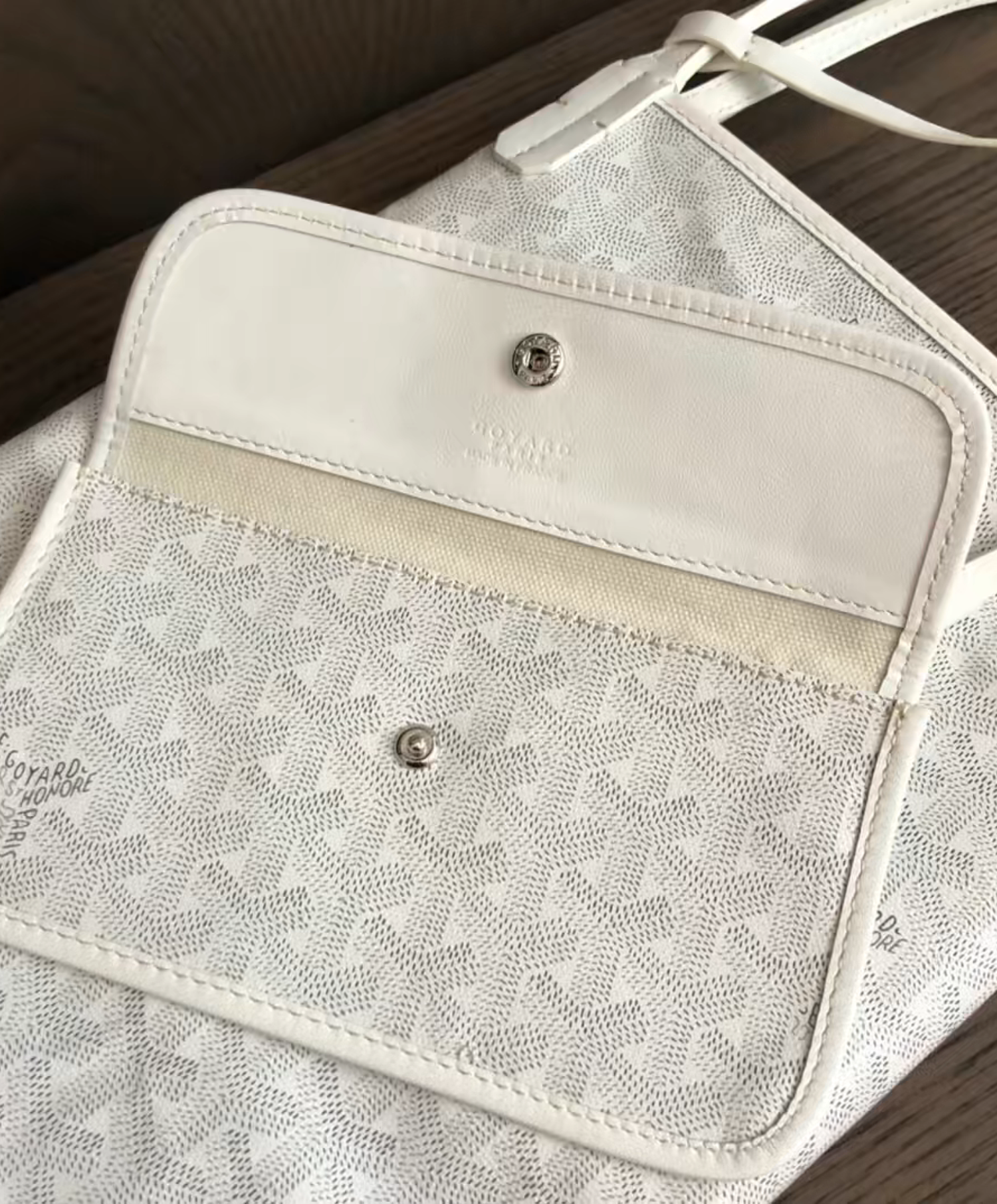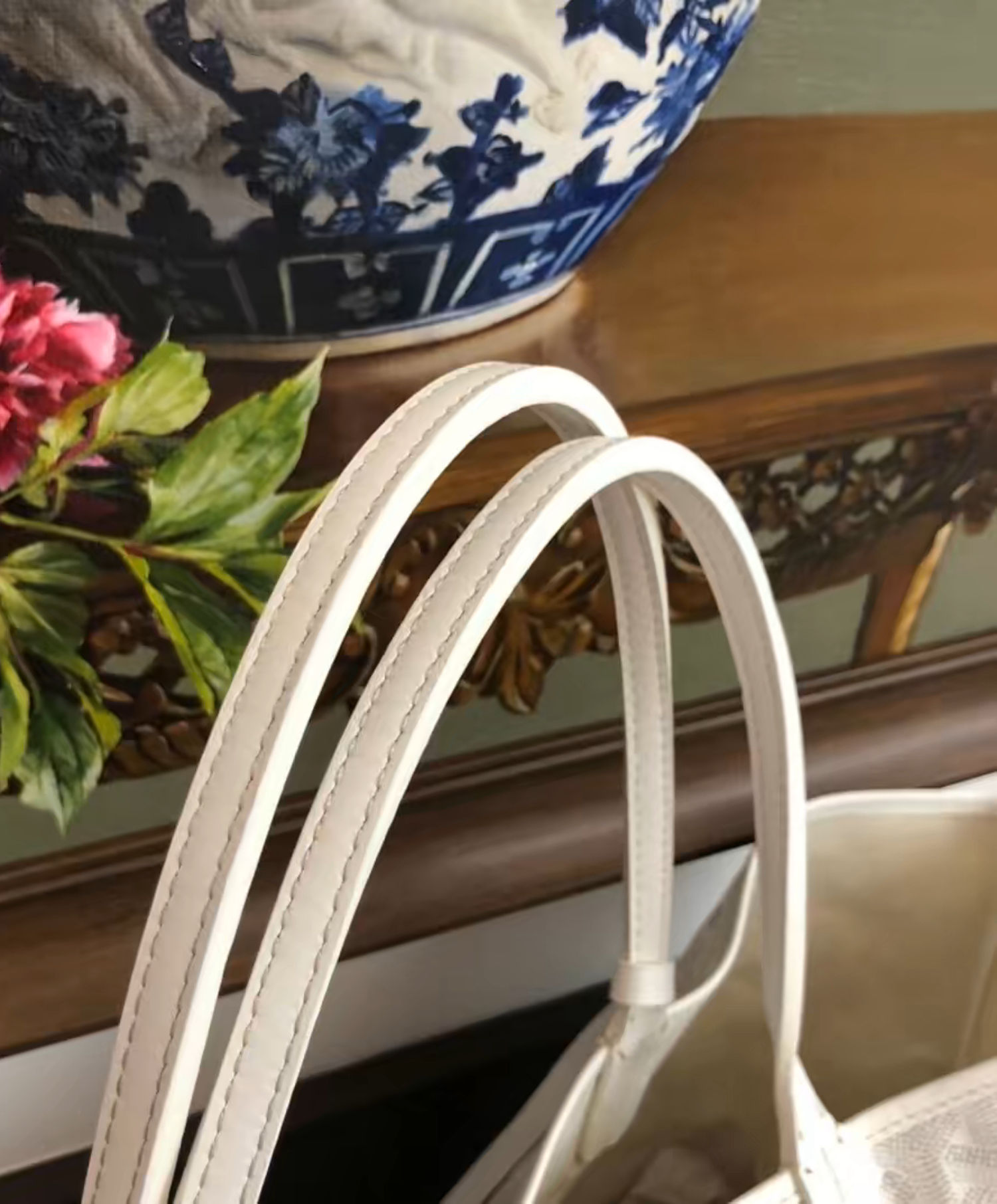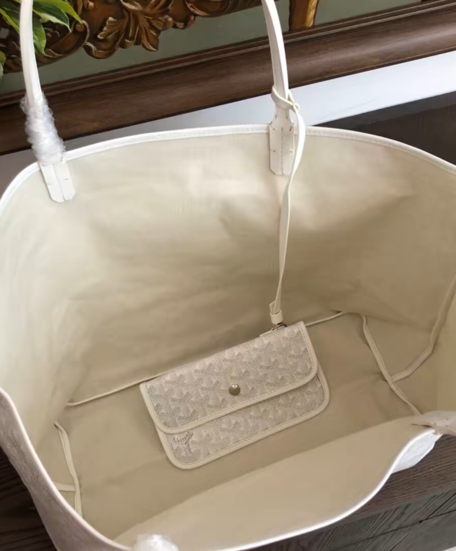 The Saint Louis GM bag is made from Goyardine and is unlined. It is extremely light and completely reversible. Wear it showing the Goyardine fabric or inside out, showing the linen and cotton mix. Its two leather handles with their progressive thickness mean it can be worn in different ways. It has a removable inside pocket attached to one of the handles for quick and easy access.