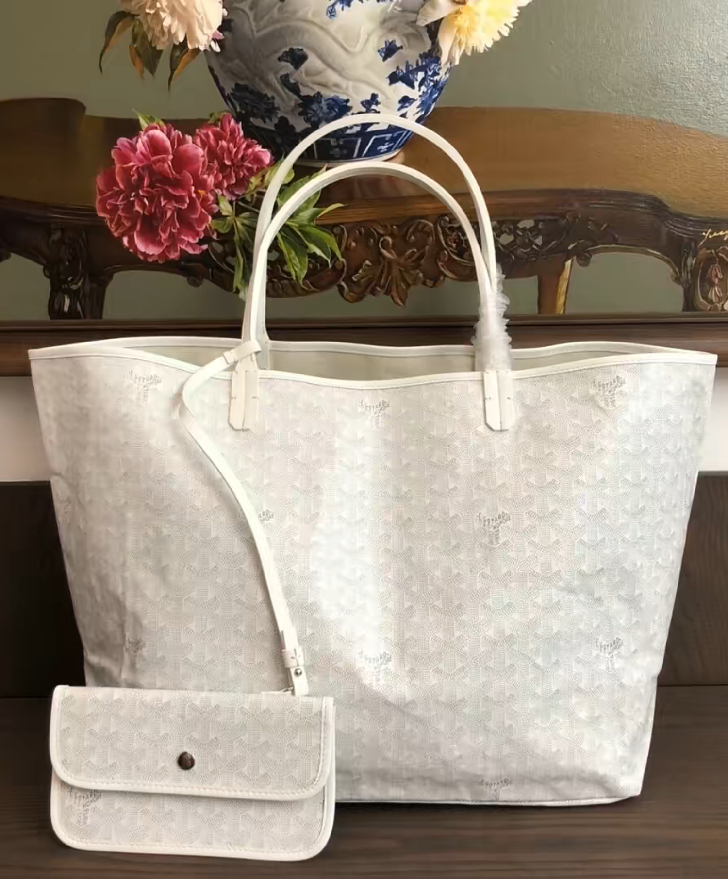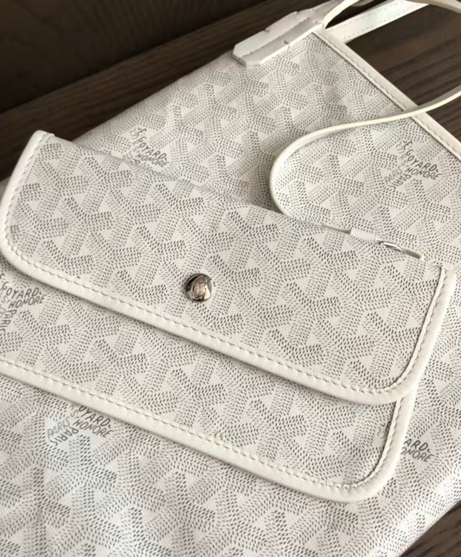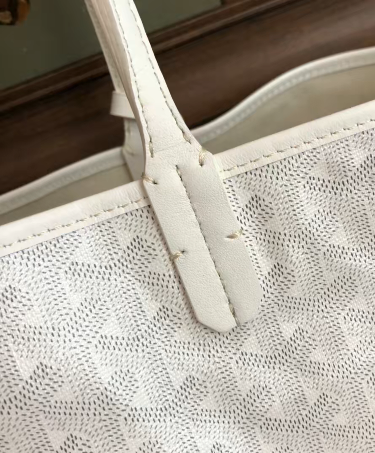 The Saint Louis GM bag is made from Goyardine and is unlined. It is extremely light and completely reversible. Wear it showing the Goyardine fabric or inside out, showing the linen and cotton mix. Its two leather handles with their progressive thickness mean it can be worn in different ways. It has a removable inside pocket attached to one of the handles for quick and easy access.