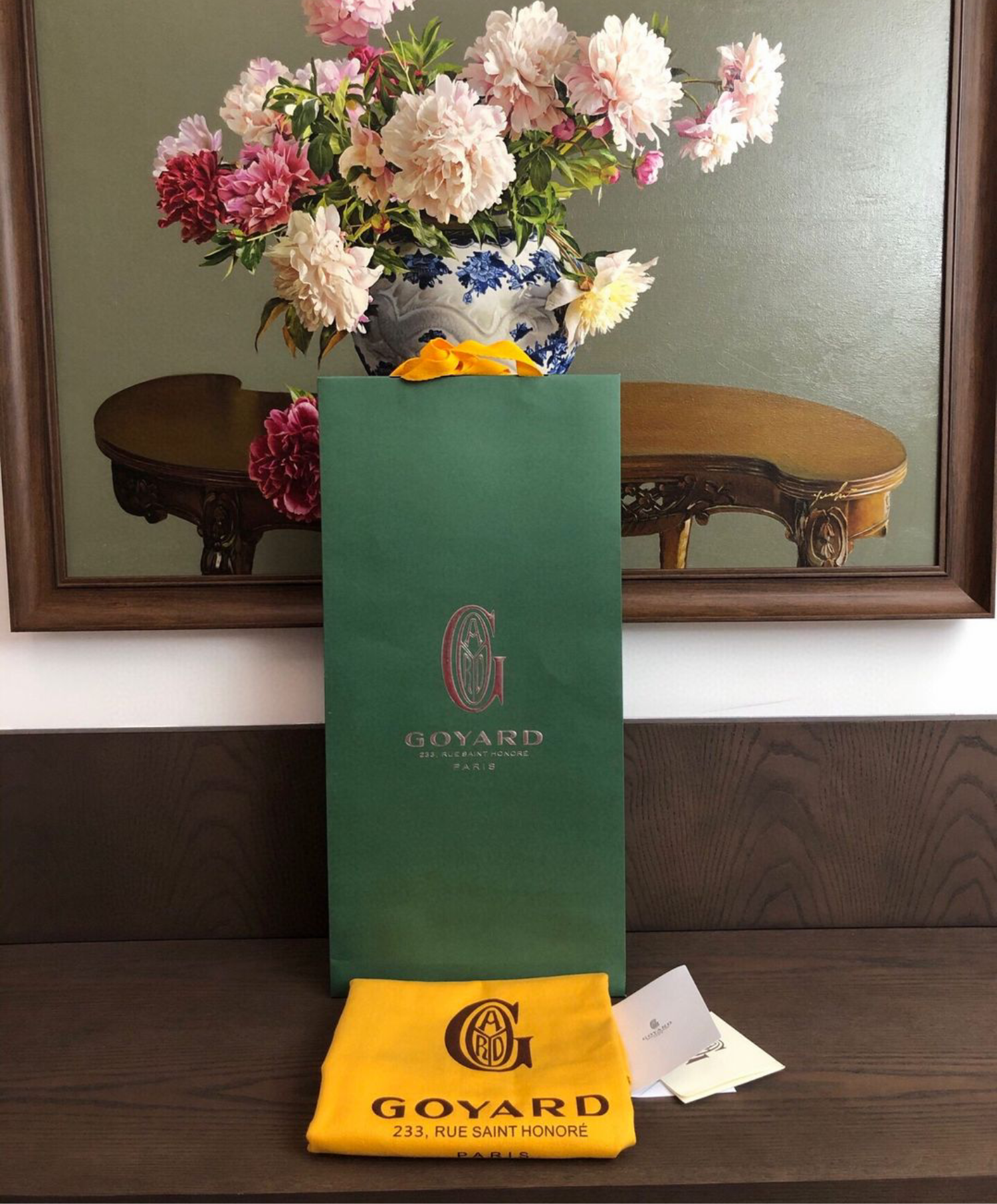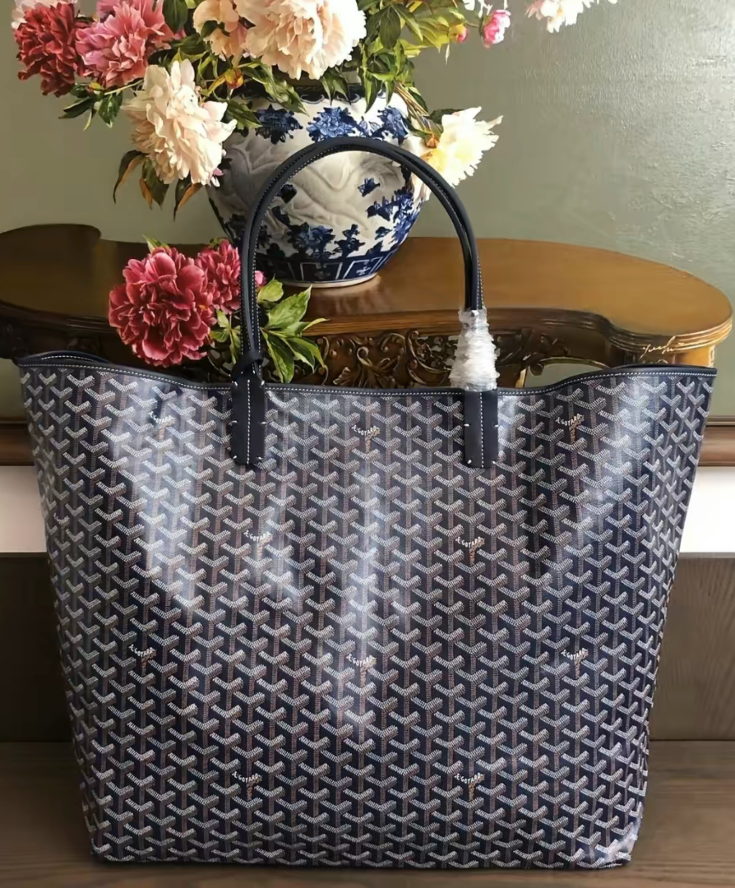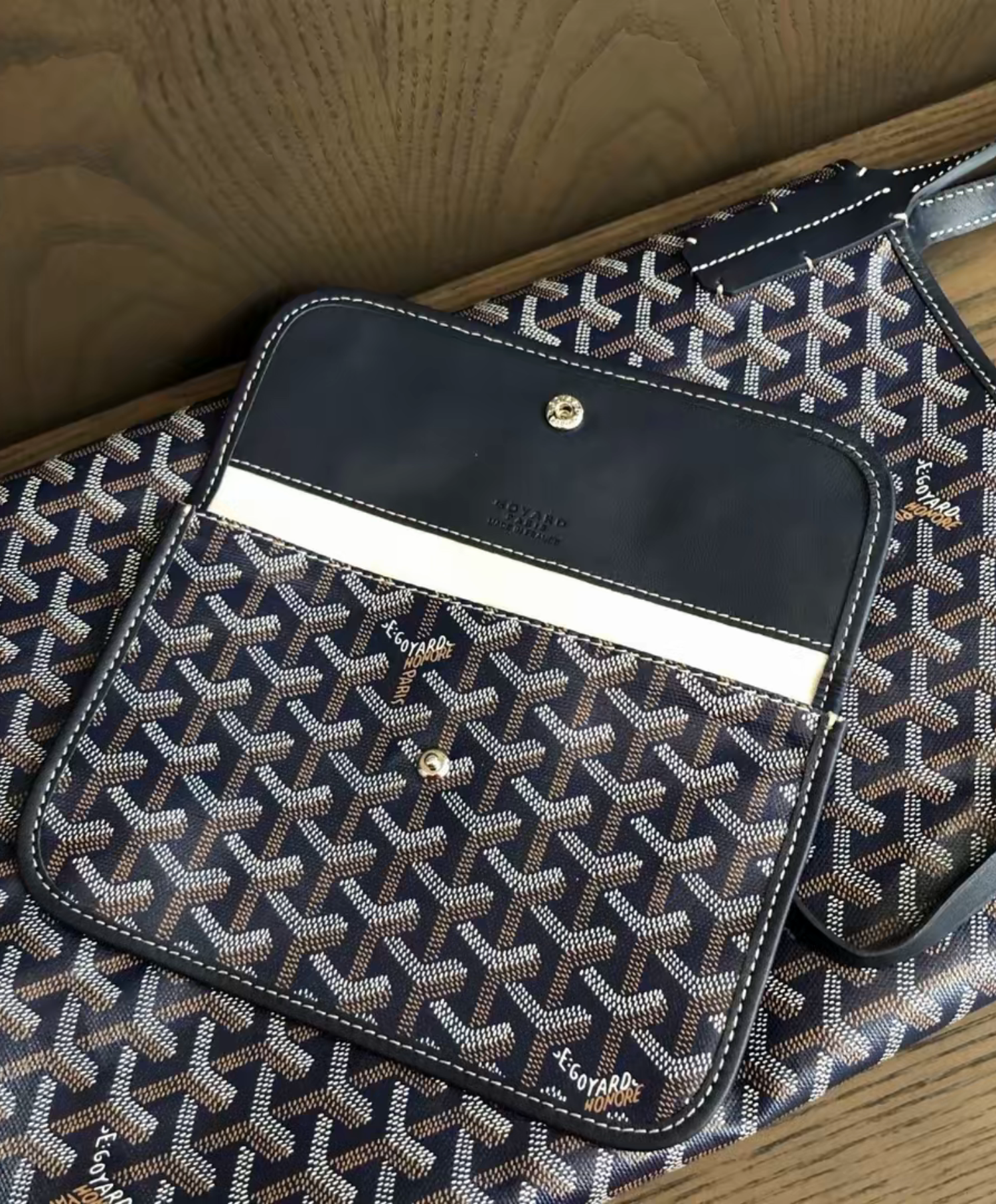 The Saint Louis GM bag is made from Goyardine and is unlined. It is extremely light and completely reversible. Wear it showing the Goyardine fabric or inside out, showing the linen and cotton mix. Its two leather handles with their progressive thickness mean it can be worn in different ways. It has a removable inside pocket attached to one of the handles for quick and easy access.