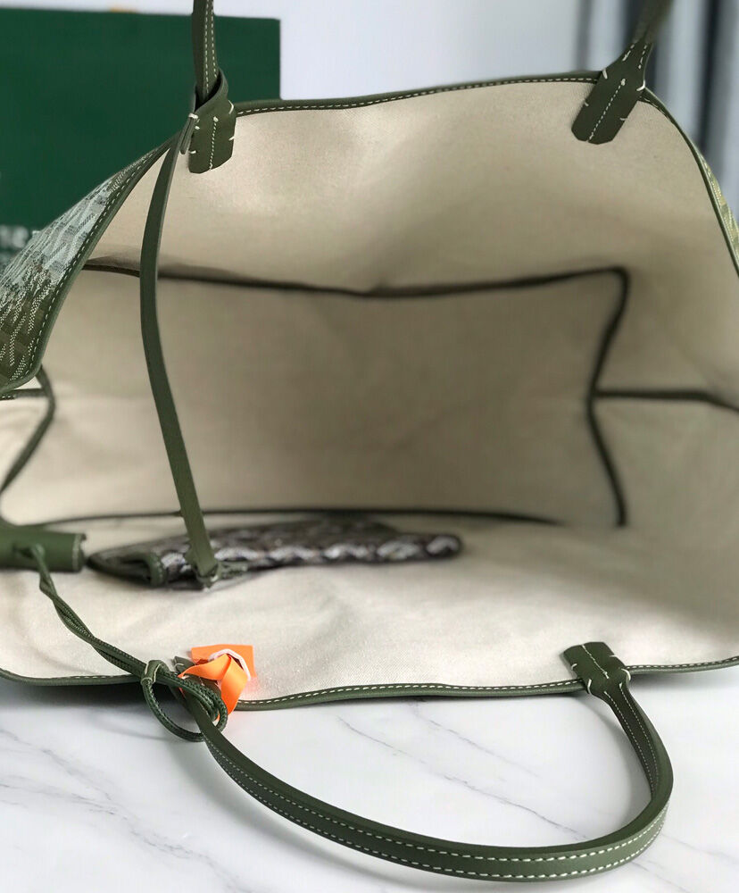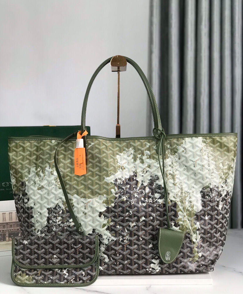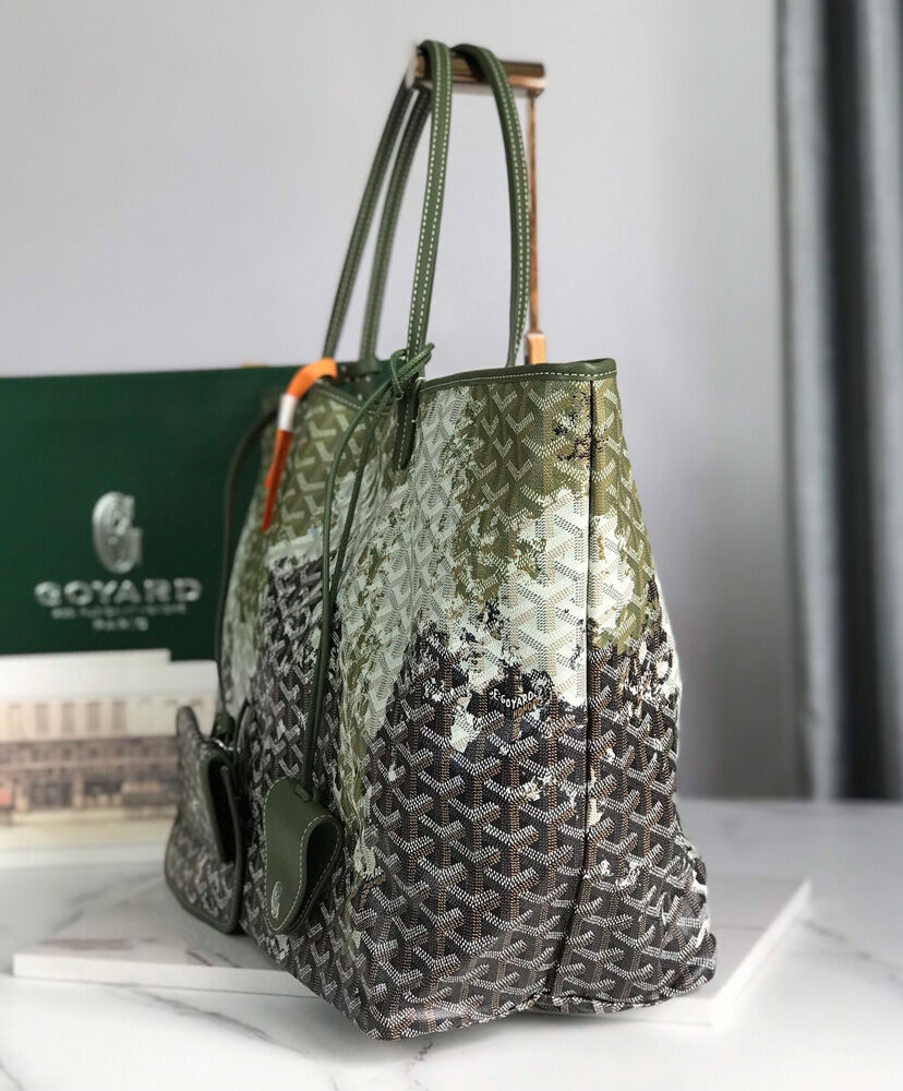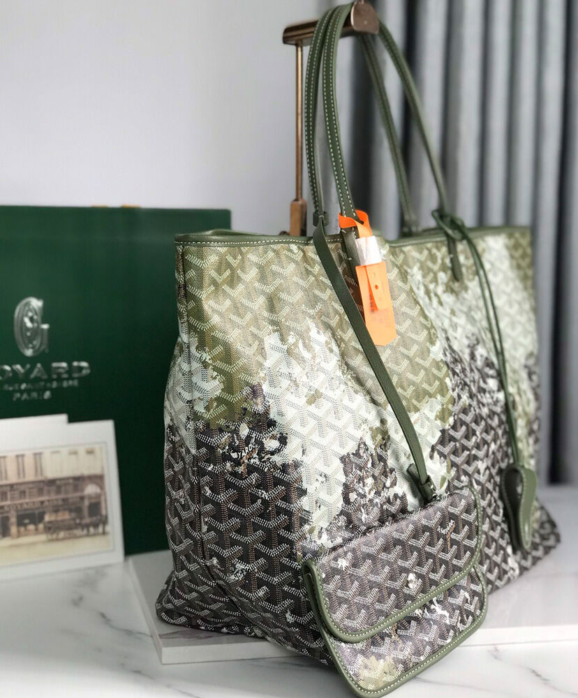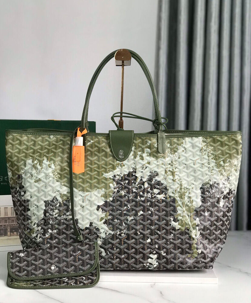 For this 2023 limited edition, the Saint Louis GM bag is is reinvented in the theme and colours of the forest. It features a canopy motif, screen-printed on an exclusive khaki Goyardine canvas background.