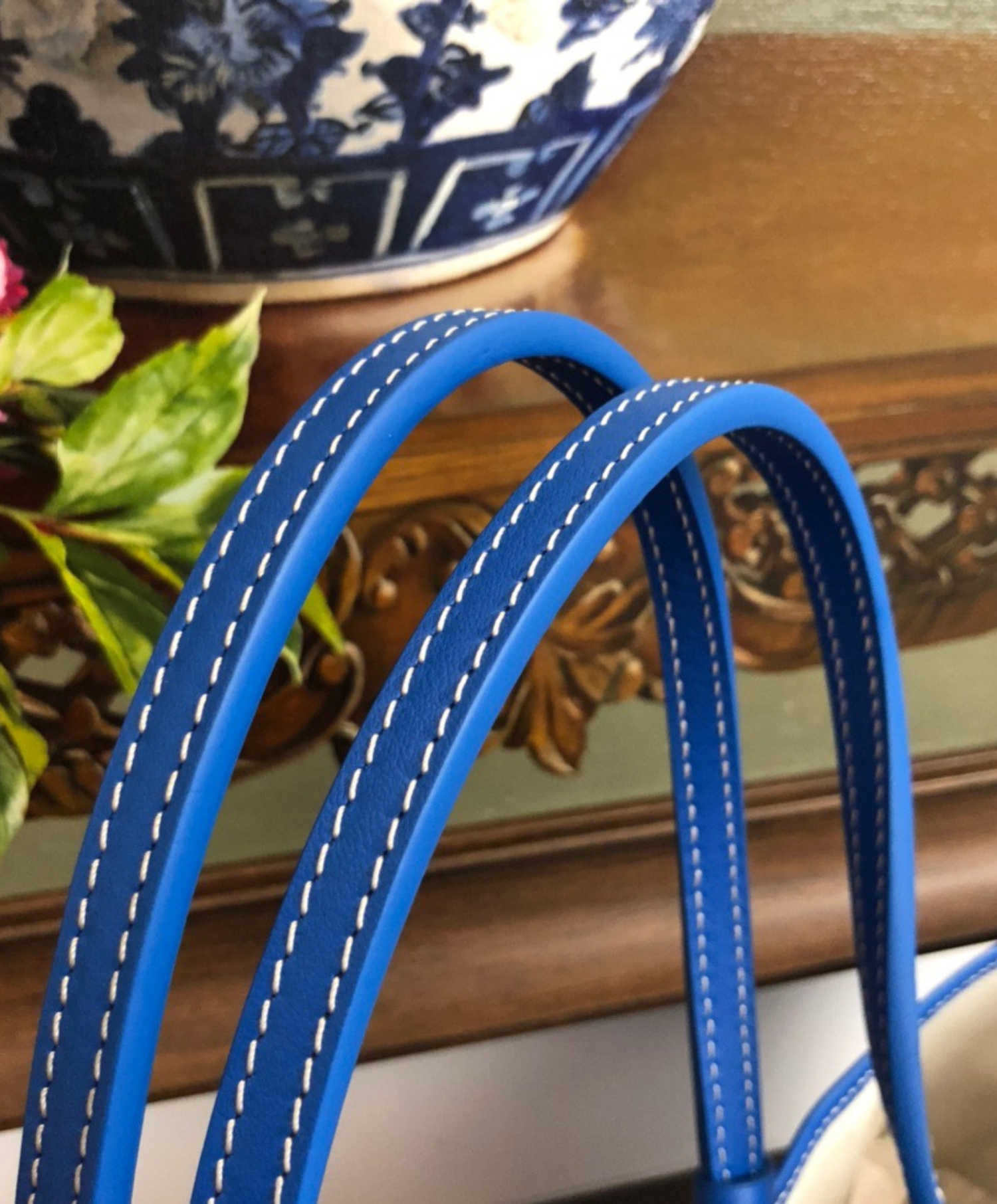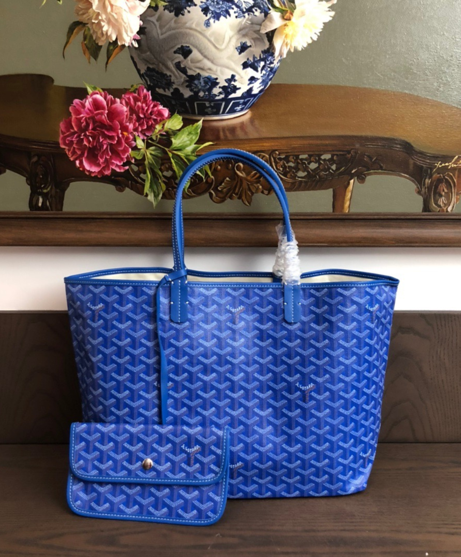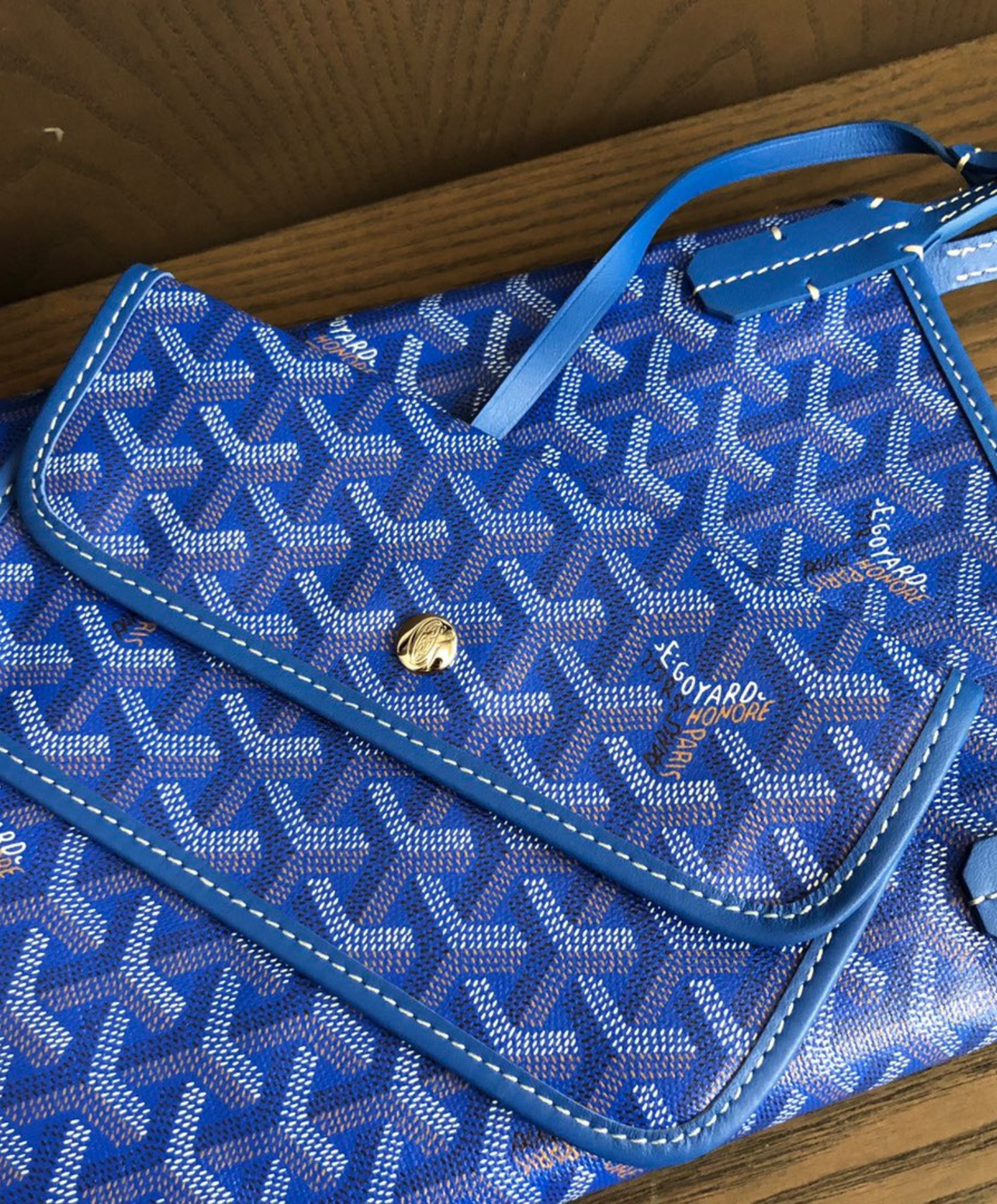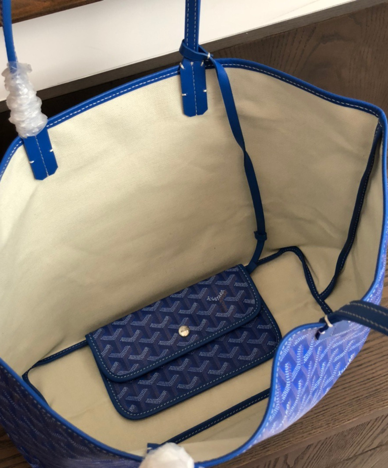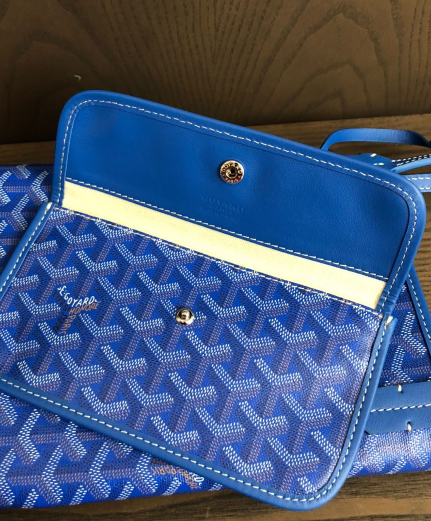 The Saint Louis PM bag is made from Goyardine and is unlined. It is extremely light and completely reversible. Wear it showing the Goyardine fabric or inside out, showing the linen and cotton mix. Its two leather handles with their progressive thickness mean it can be worn in different ways. It has a removable inside pocket attached to one of the handles for quick and easy access.
