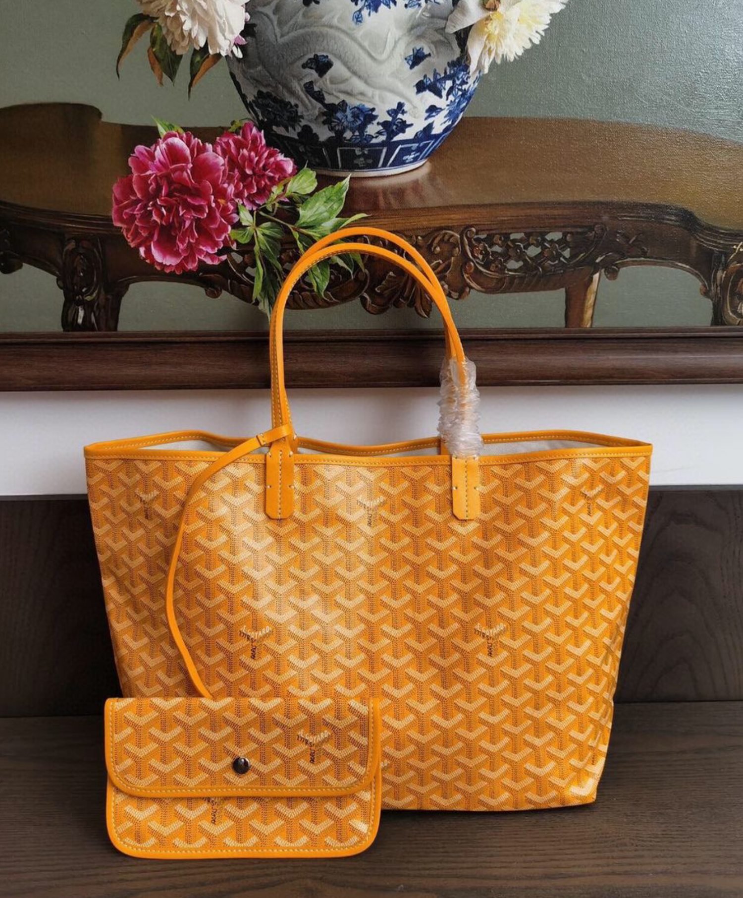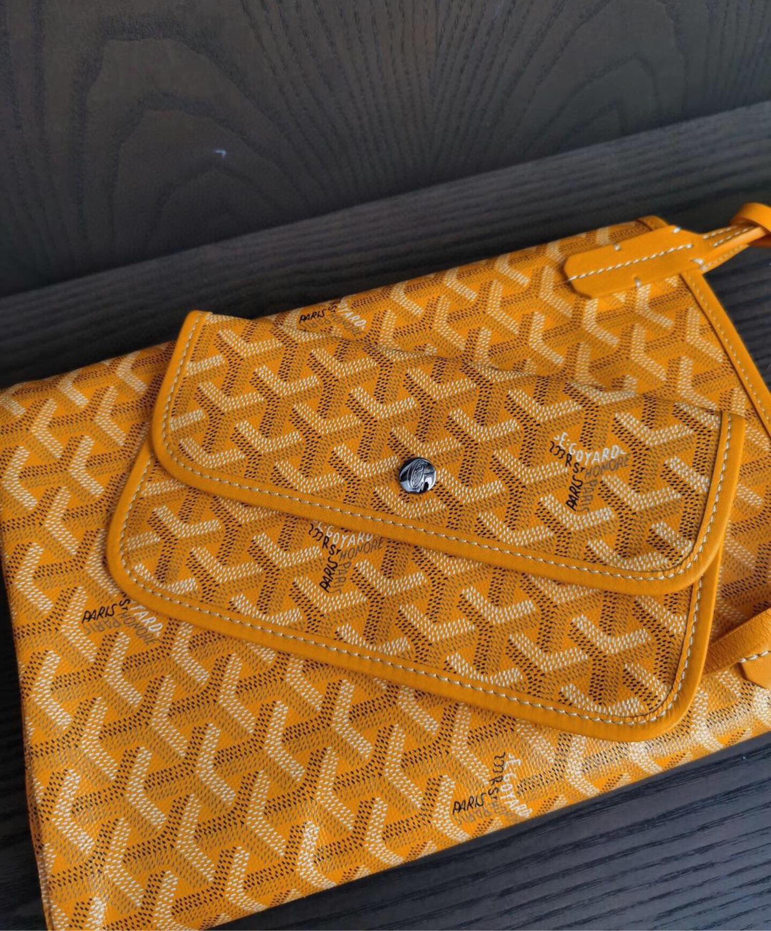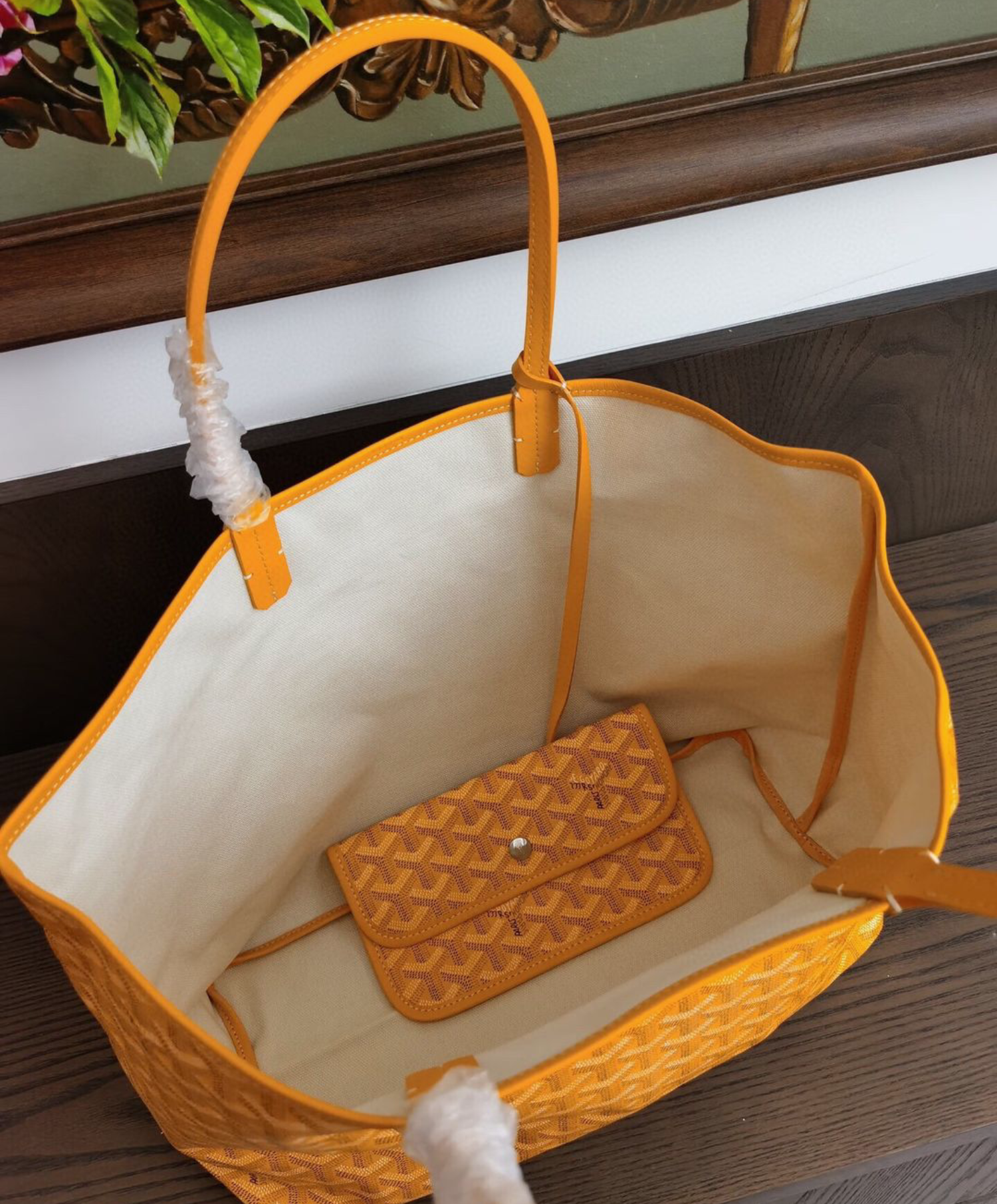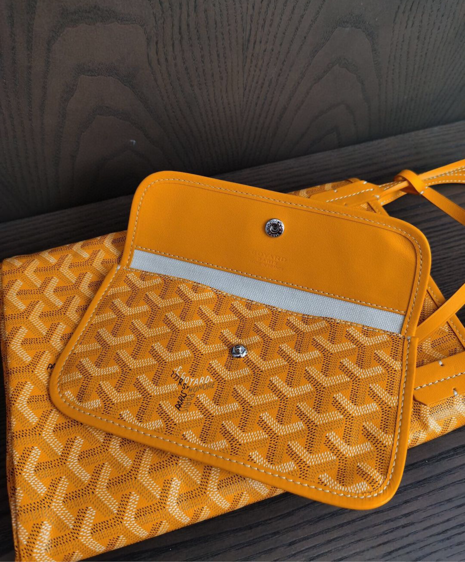 The Saint Louis PM bag is made from Goyardine and is unlined. It is extremely light and completely reversible. Wear it showing the Goyardine fabric or inside out, showing the linen and cotton mix. Its two leather handles with their progressive thickness mean it can be worn in different ways. It has a removable inside pocket attached to one of the handles for quick and easy access.