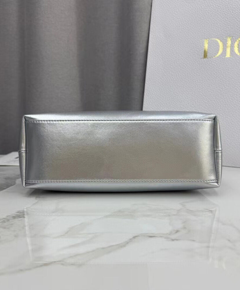 Jonathan Anderson's new Dior Bow Bag embodies French elegance and the craftsmanship of the ateliers. The supple construction in luxurious natural grain lambskin with a semi-gloss finish honors the bow, a cherished House symbol. The small design can be worn over the shoulder or carried by hand as a clutch.
