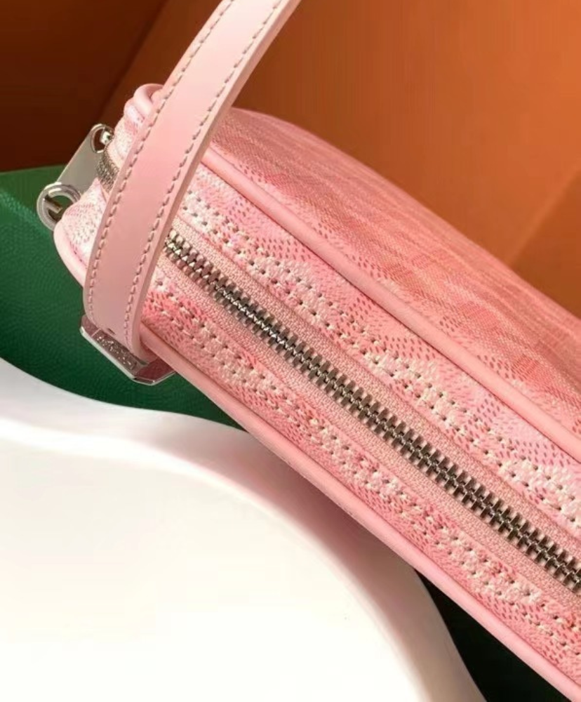 This playful, bag from Goyard is apt for casual outings. Crafted in self printed canvas, the bag features top zip closure, leather trimmings, and a adjustable leather shoulder strap placed beautifully at one side of the front, supported by buckle closure. The bright canvas interior houses one open pocket and is accustomed to take care of your tiny little belongings.