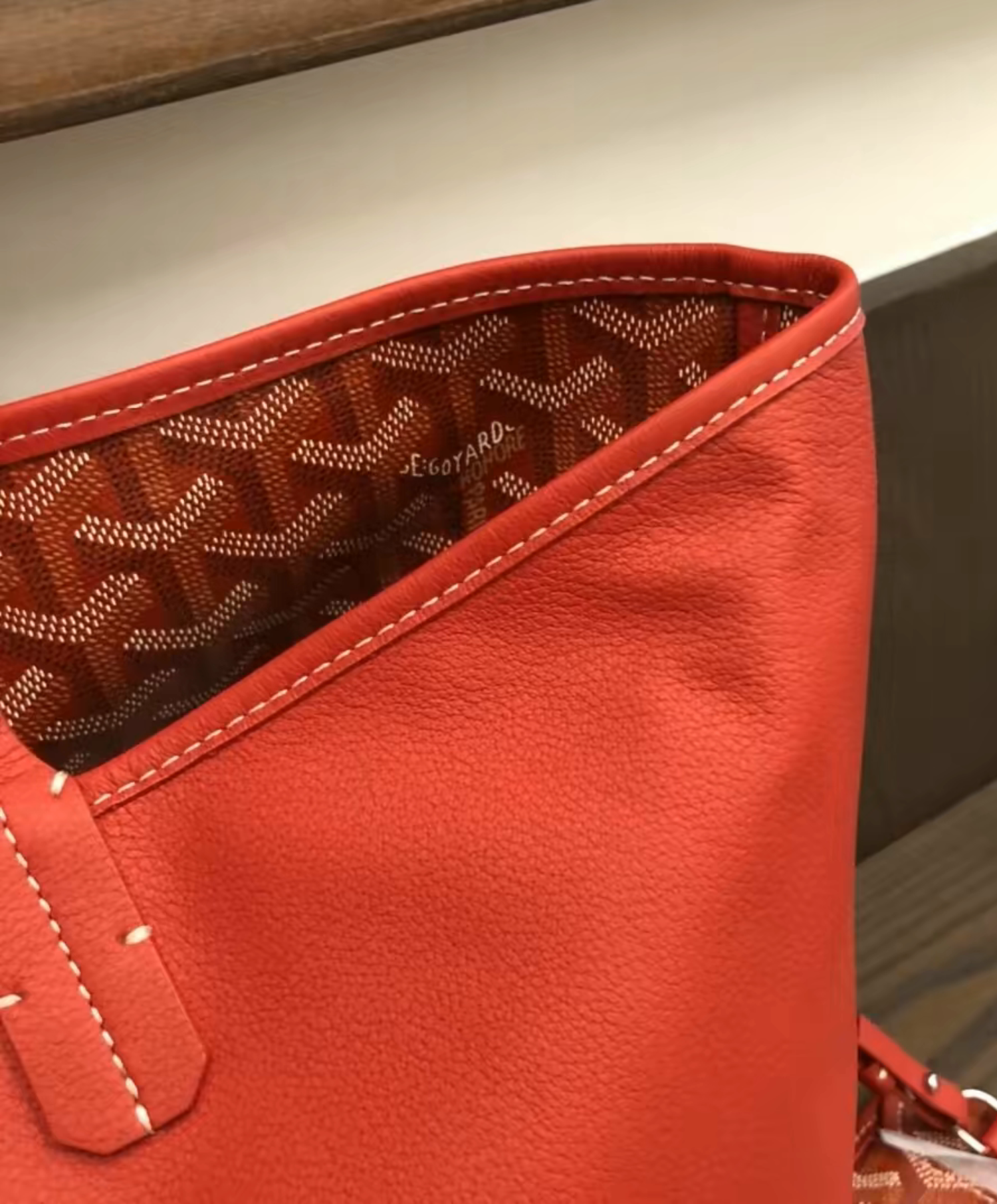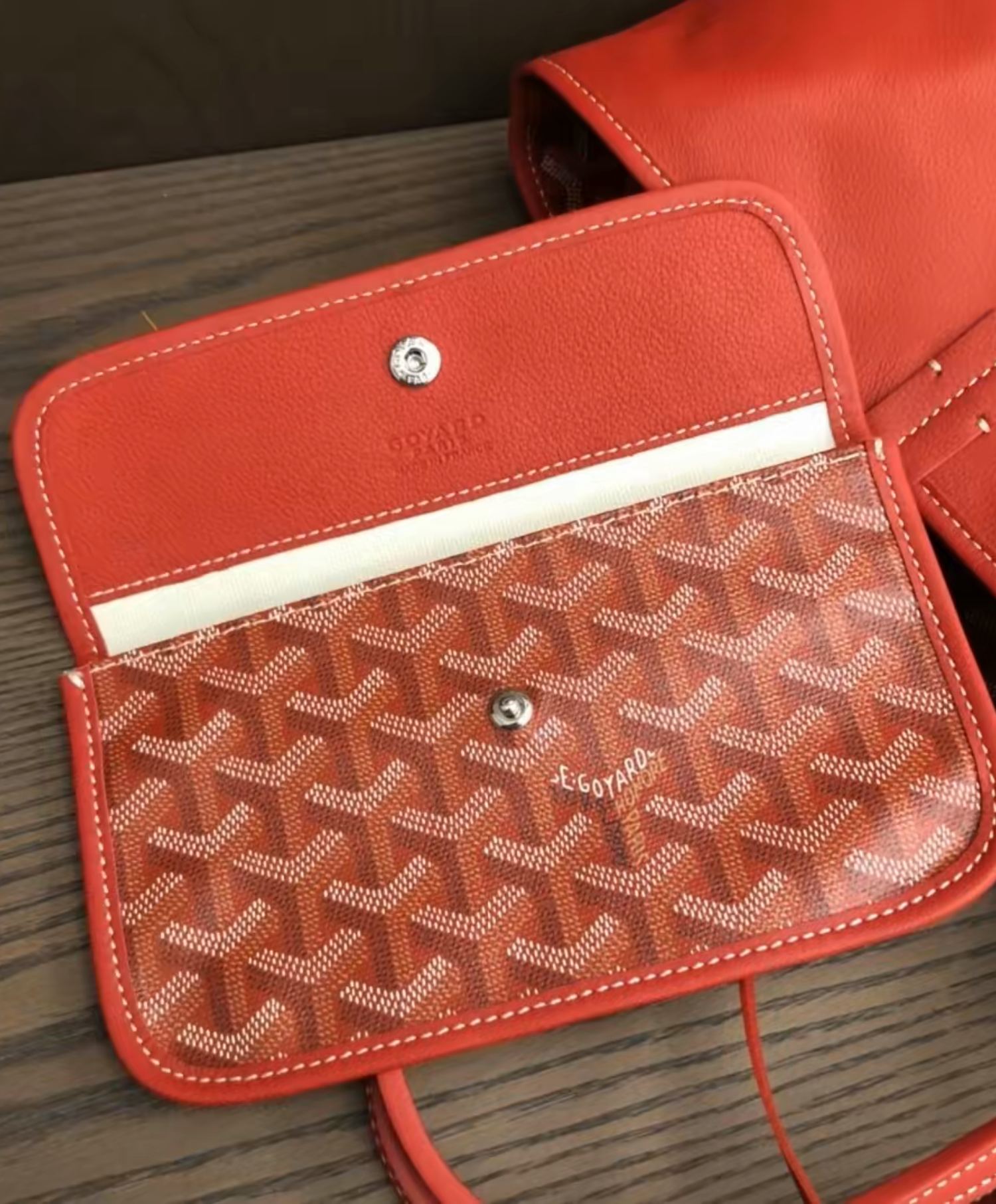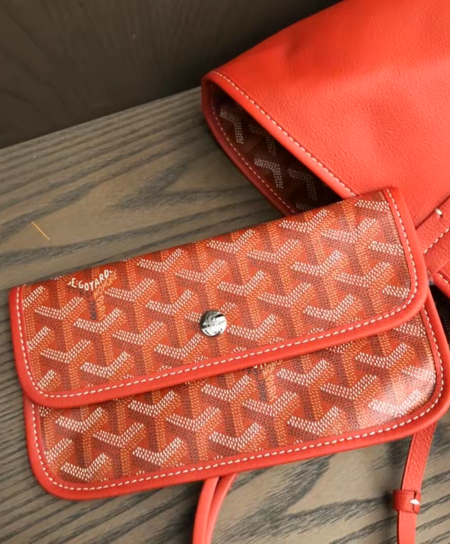 The Anjou PM bag by Goyard combines practical elegance with clever design, thanks to its reversible construction. One side showcases the iconic Goyardine canvas, while the other reveals luxurious natural leather—giving you the freedom to switch between two distinct looks depending on the occasion. Perfectly sized for daily use, it comes with a detachable inner pouch that adds a touch of organization and convenience. An ideal choice for those seeking a balance between sophistication and functionality in their everyday style.