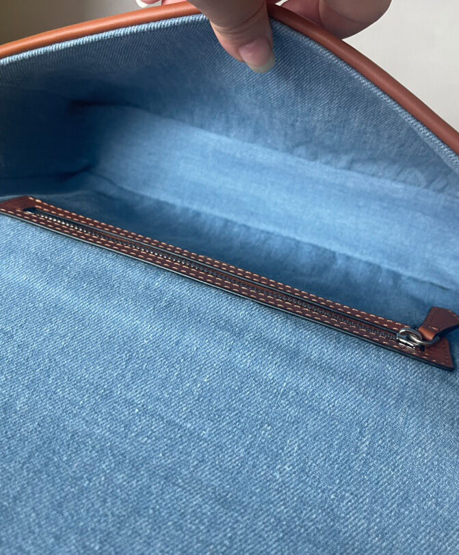 The bag can be carried by hand, or worn either on the shoulder or cross-body thanks to the leather handle and shoulder strap, both detachable.