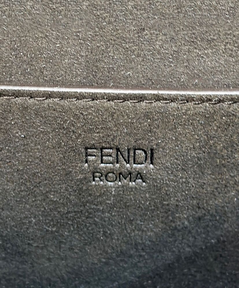 Features an adjustable and detachable shoulder strap. The shoulder strap hooks become an elegant accent with studs and an FF logo when the bag is open.