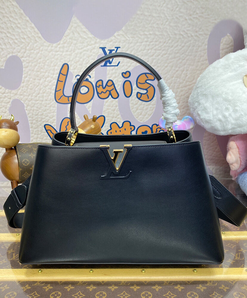 The Capucines GM Souple bag reinterprets one of the Maison’s most iconic shapes in smooth Taurillon leather, for utmost softness. This statement piece is a lifetime companion, designed to bring elevated style to daily silhouettes. Fitted with a top handle and removable shoulder strap, it goes from office to weekend with room for all the essentials and more.