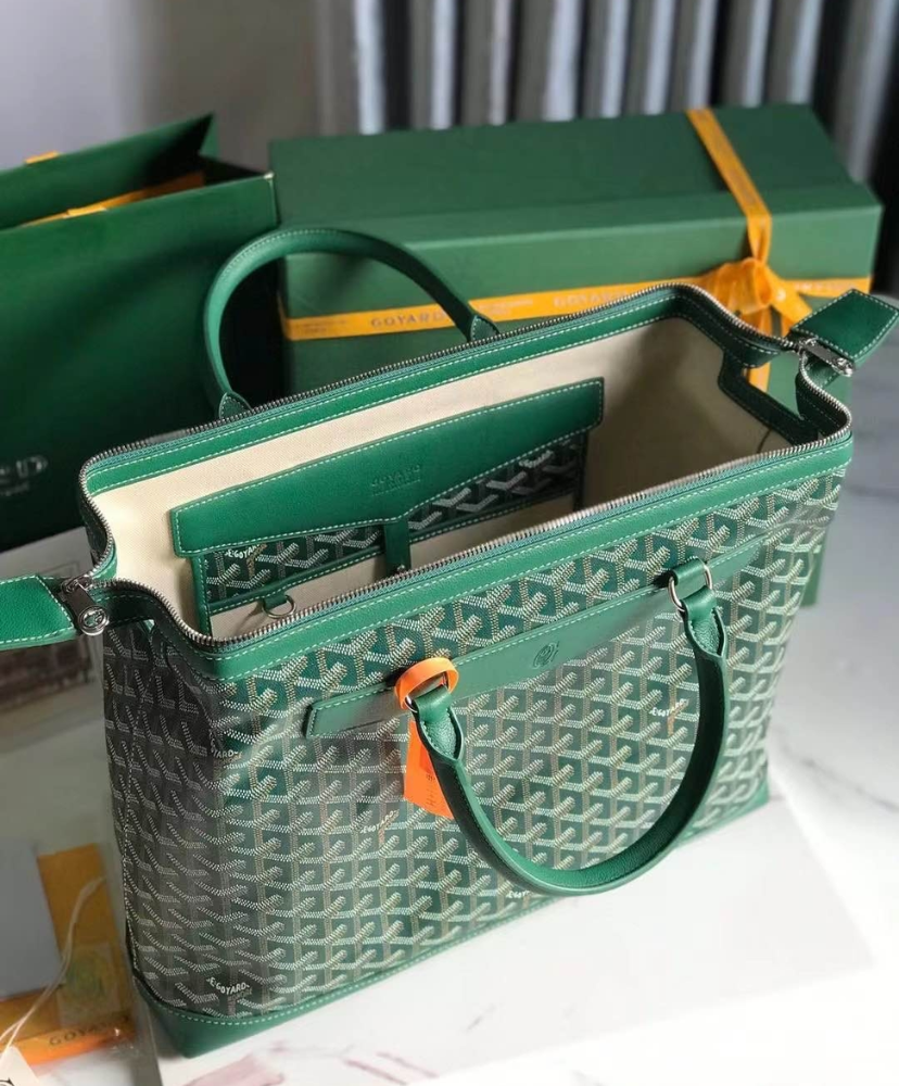 The Cisalpin Document Case by Goyard features an ideal size for carrying documents, a laptop, or daily files, making it a perfect choice for businessmen and organization enthusiasts. It also includes interior pockets for easy content arrangement, and a high-quality metal zipper for added security.