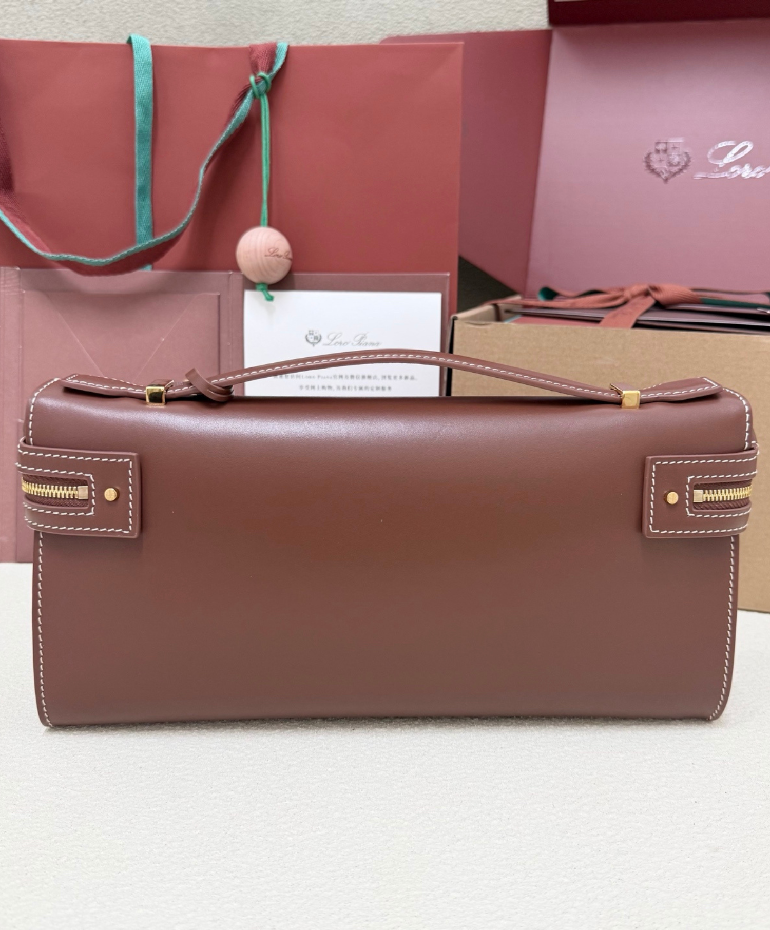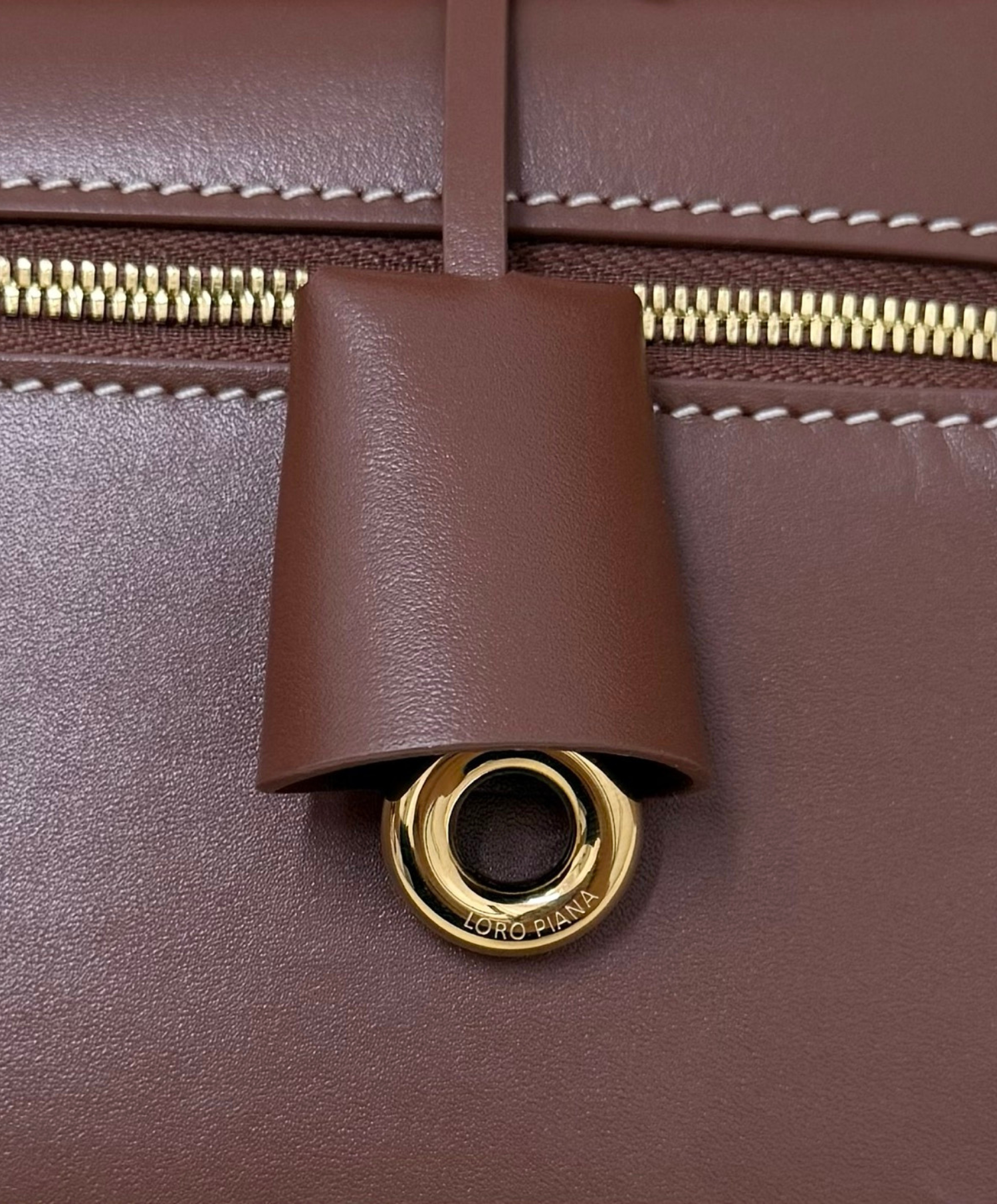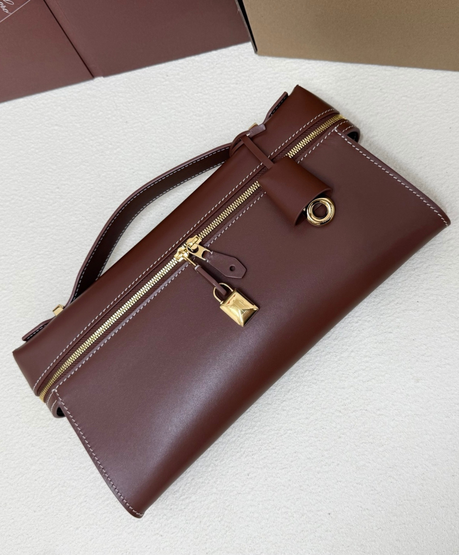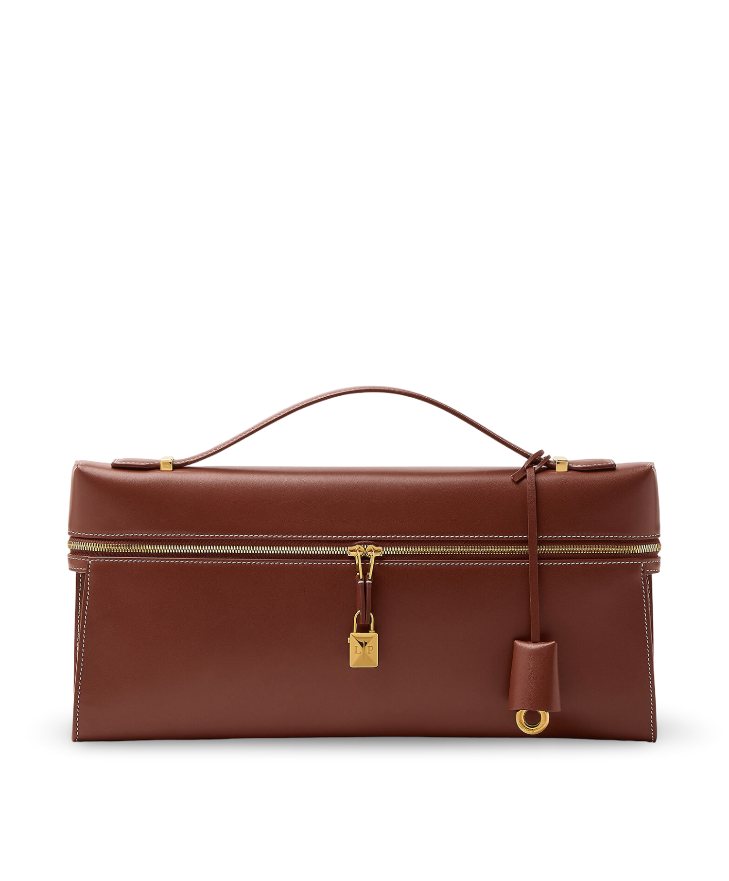 An elegant accessory with compact proportions, the Extra clutch L29 is primed for special occasions and everyday elegance alike. It is rendered in Saddle Leather with a smooth, full-bodied touch and signature topstitching. Suspended from the double-zip close are Loro Piana’s iconic charms, framed by a refined leather key holder.