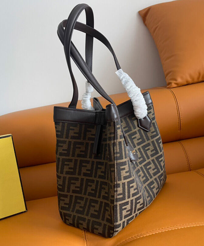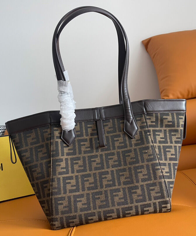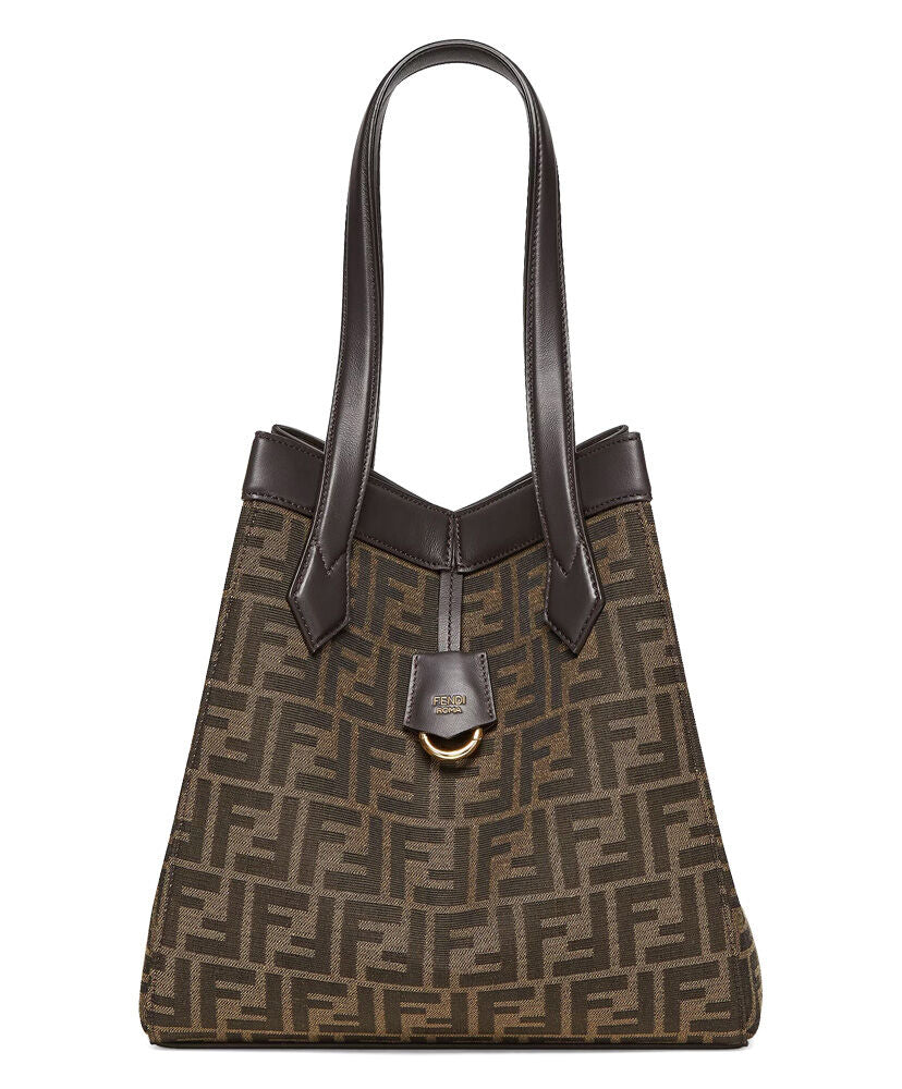 Medium Origami bag made of fabric with jacquard FF motif. The style recalls the creativity and dual nature of Fendi with an innovative design that can be transformed. Thanks to eight concealed magnets the bag can be styled as a shopper bag or bucket bag by folding it origami style.
