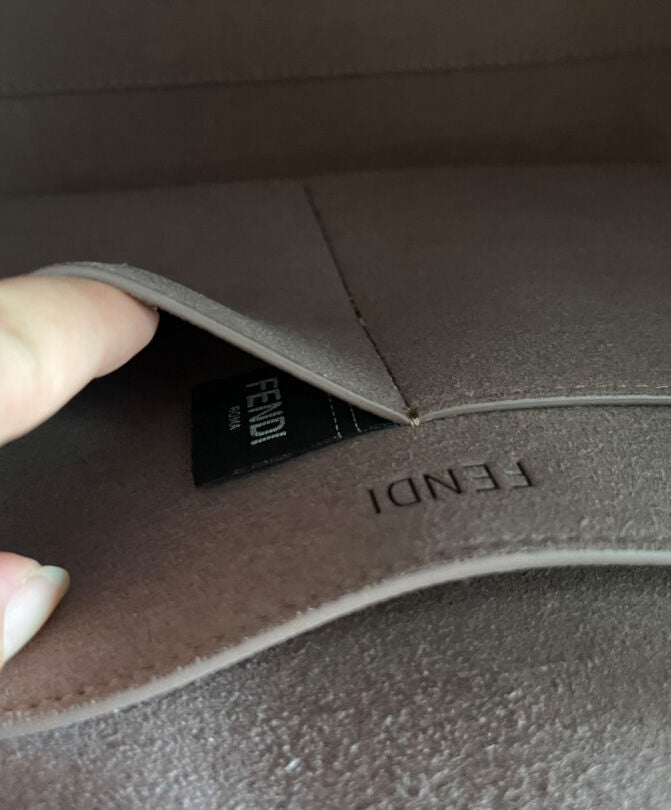 It comes with a key case charm with the word Fendi in metal and dark brown leather details. Lined inner compartment and gold-finish metalware.