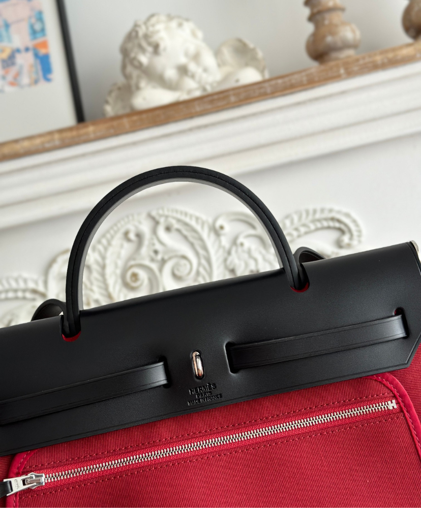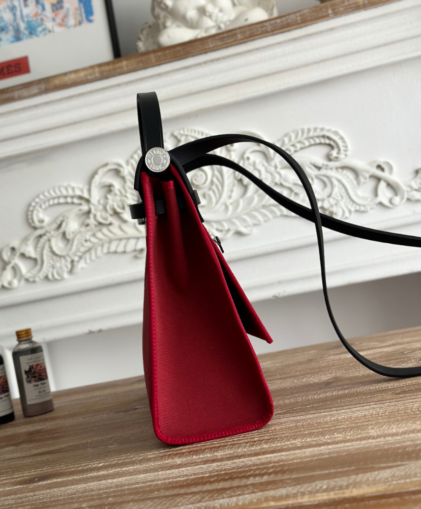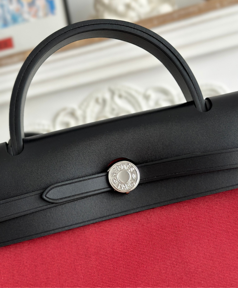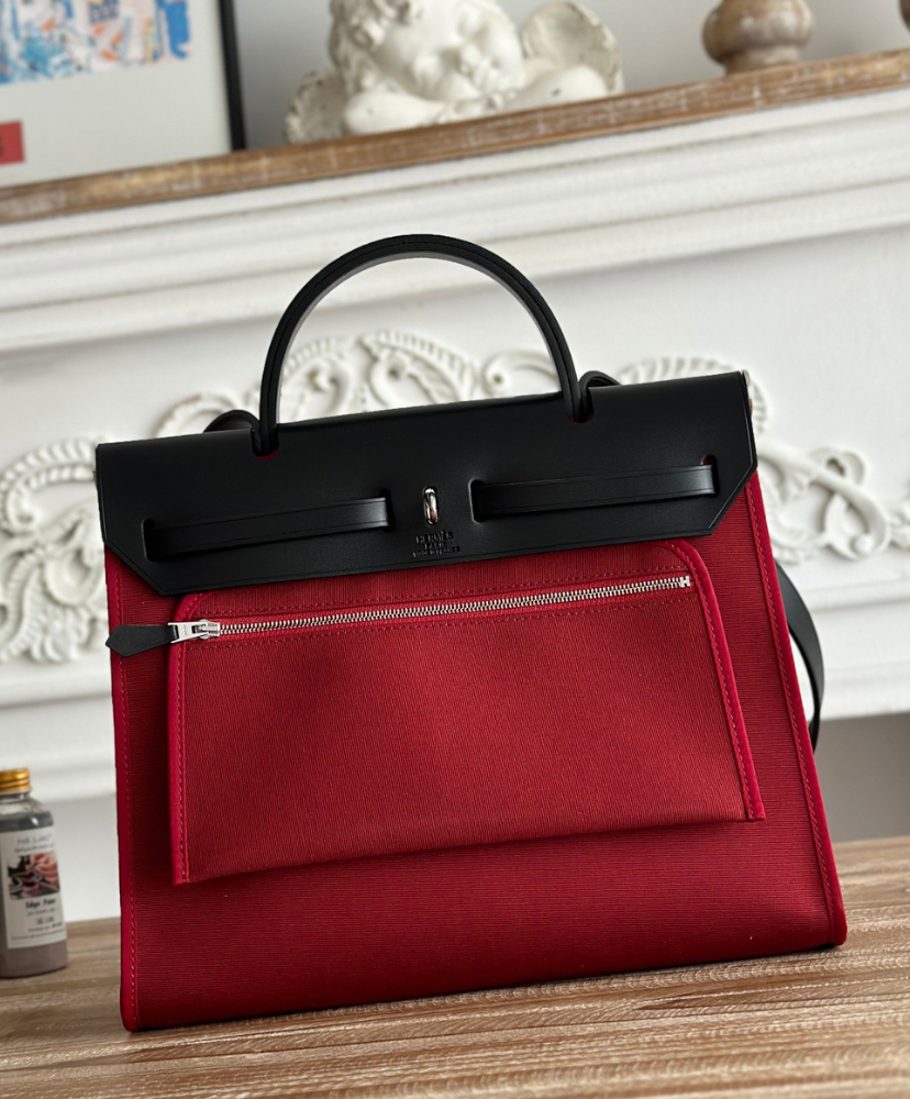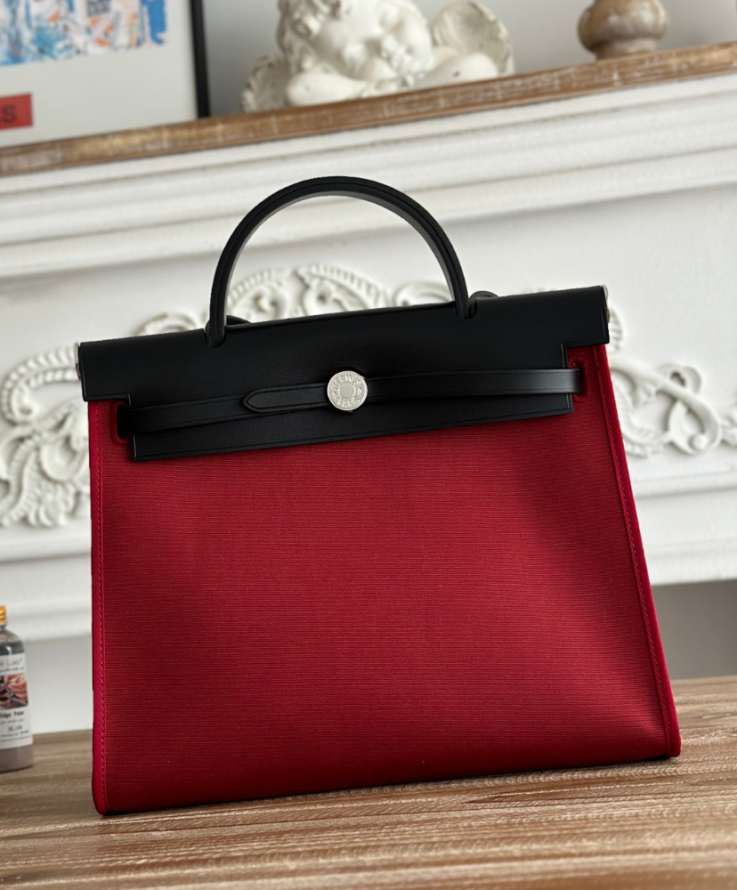 Widely considered the younger sibling of the Kelly, the Hermes Herbag 31 combines excellent quality with a more casual style. Its striking appearance is further enhanced by the combination of canvas and leather, complemented beautifully with silver hardware. Crafted by hand, this piece boasts the iconic "Clou de Selle" closure and Vache Hunter leather.