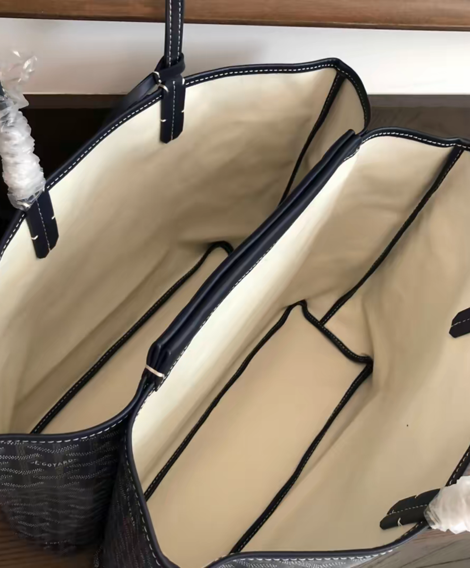The Isabelle bag is very functional with its 3 compartments including a central magnetic pocket to keep the contents safe. It also has the emblematic removable pocket, that closes with a snap fastener. It is the perfect tote bag for work with its structured Goyardine, large volume and inside compartments.