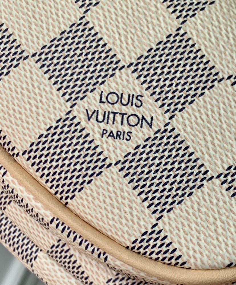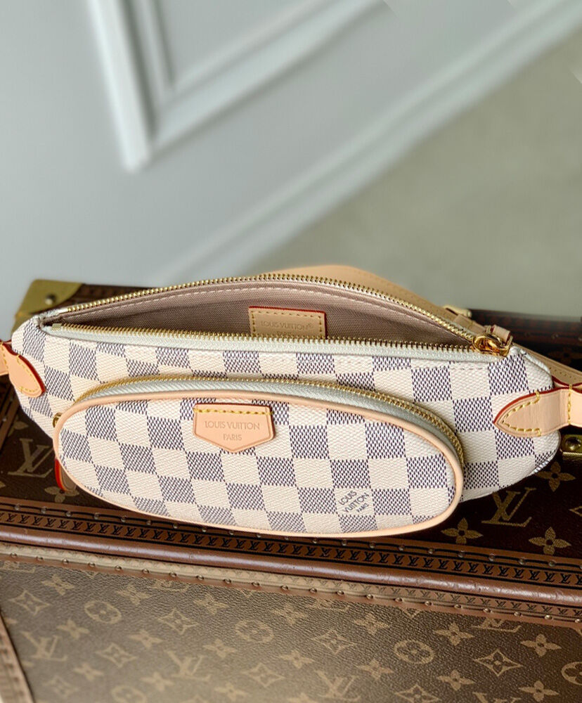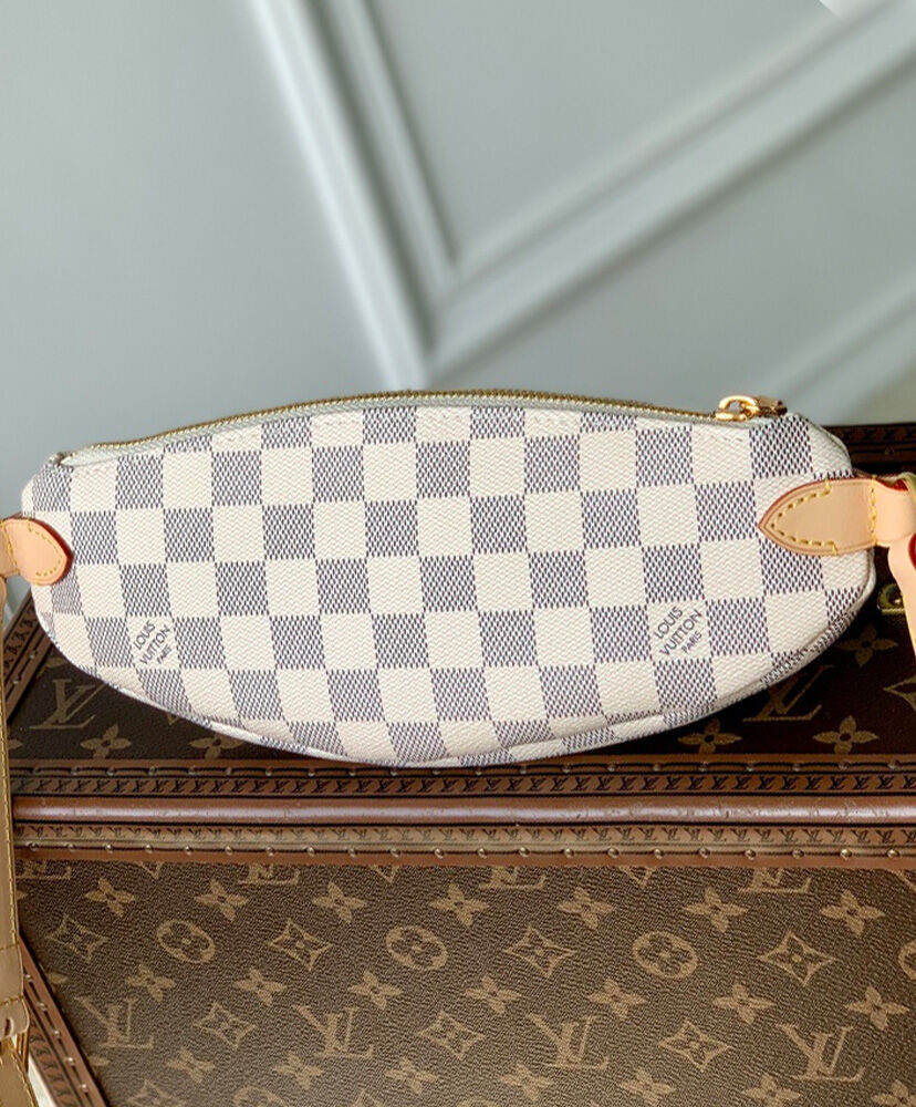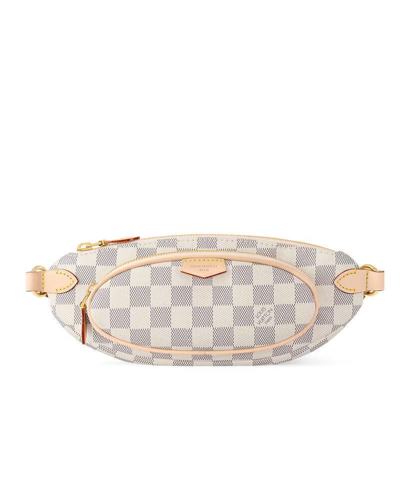 Showcasing the House's Damier Azur signature, the Keepit bumbag made its debut on the Spring-Summer 2025 runway. Accented with gold-toned hardware, it comes with an adjustable shoulder strap for multiple ways to wear and includes an outside zip compartment for smaller items. Note the leather tab detail at the front, which is stamped with the Louis Vuitton signature.