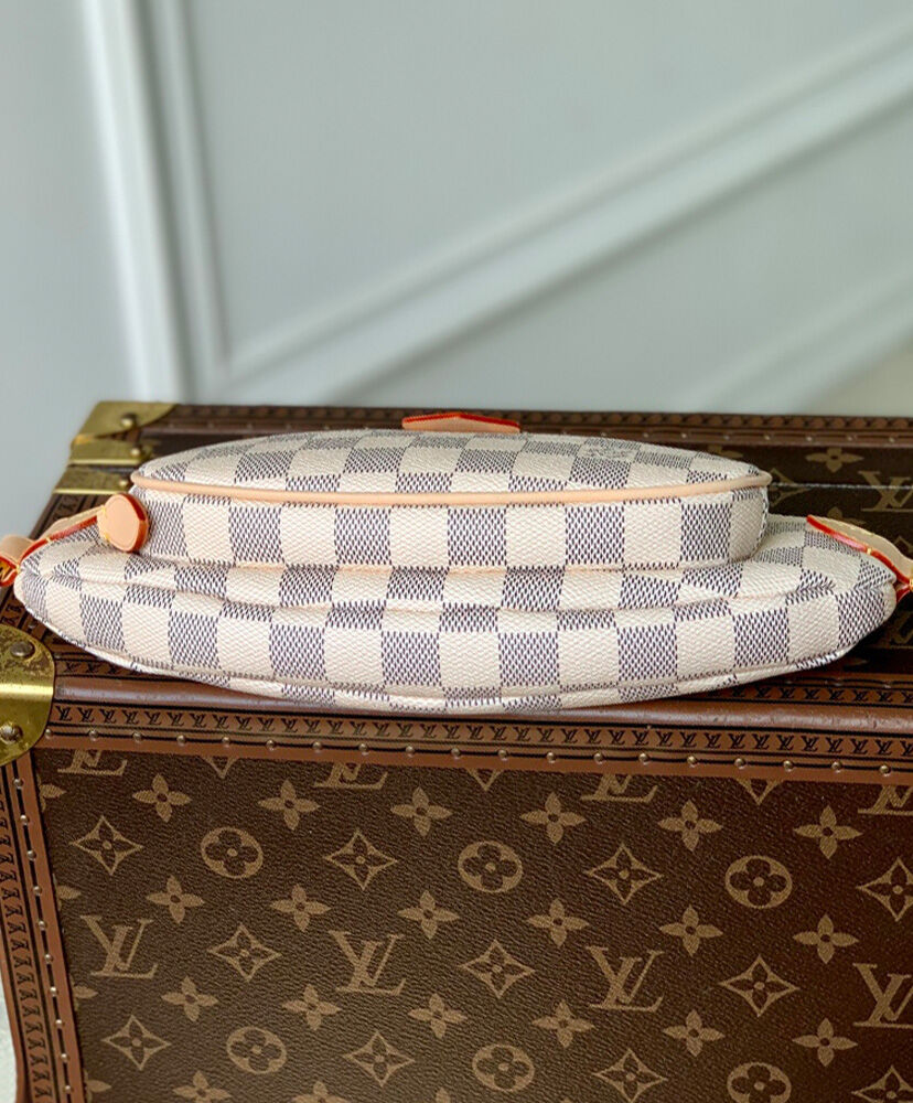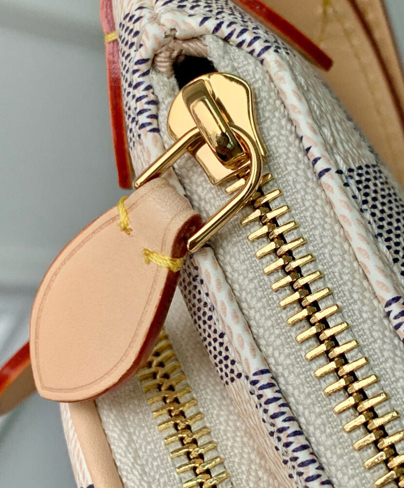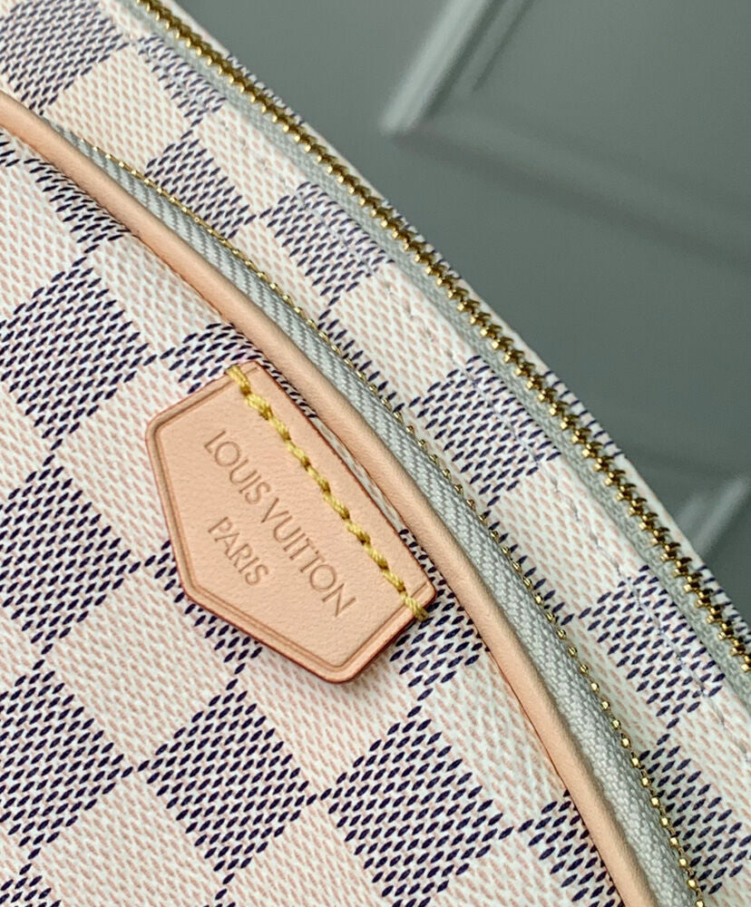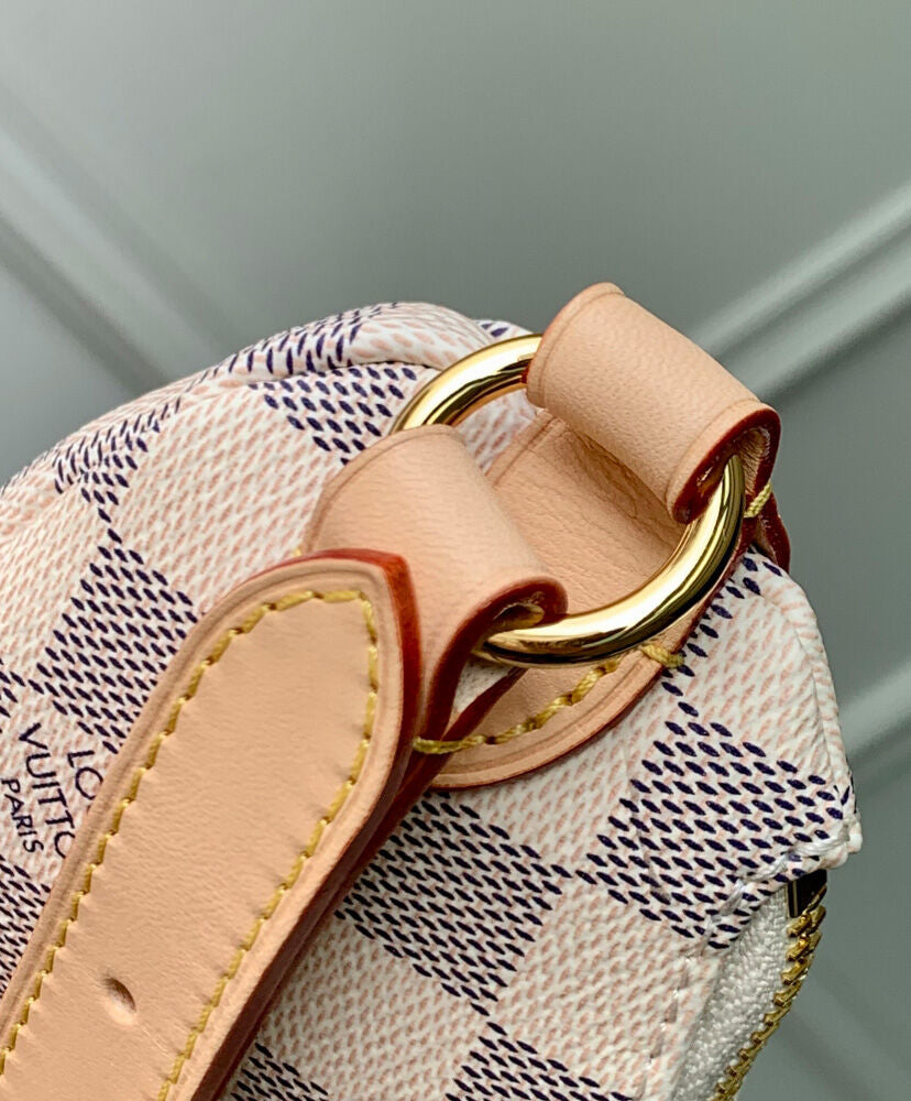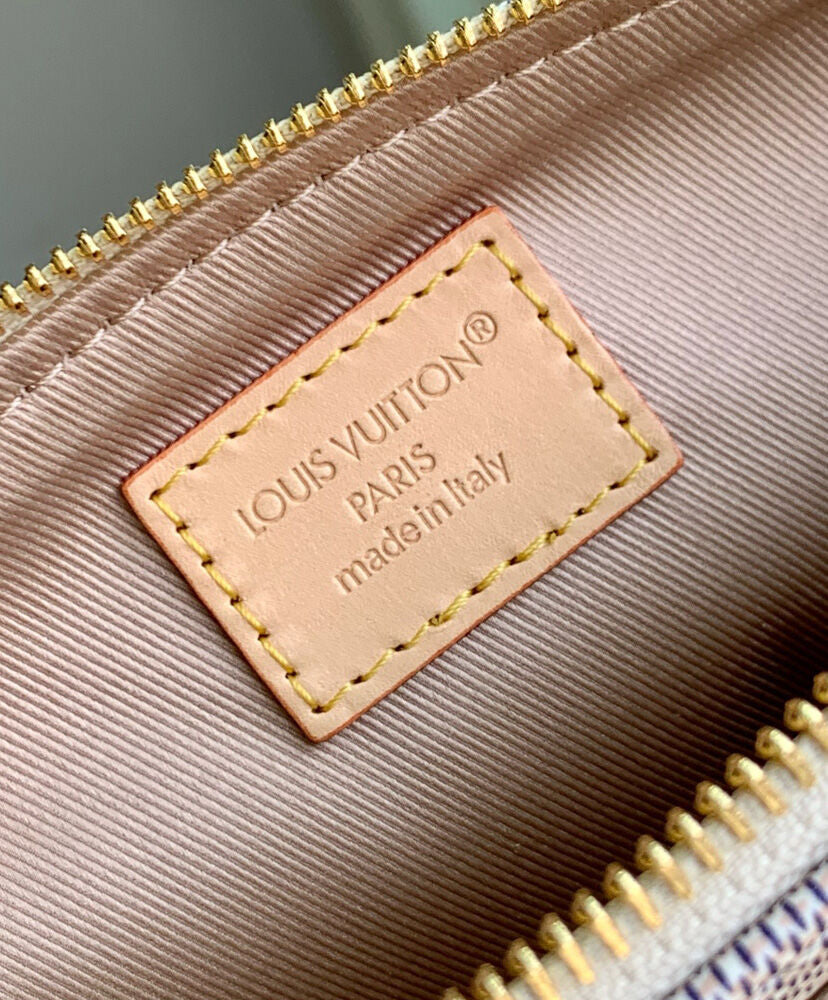 Showcasing the House's Damier Azur signature, the Keepit bumbag made its debut on the Spring-Summer 2025 runway. Accented with gold-toned hardware, it comes with an adjustable shoulder strap for multiple ways to wear and includes an outside zip compartment for smaller items. Note the leather tab detail at the front, which is stamped with the Louis Vuitton signature.