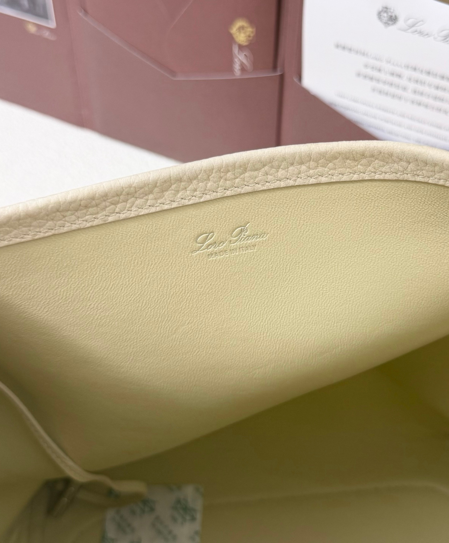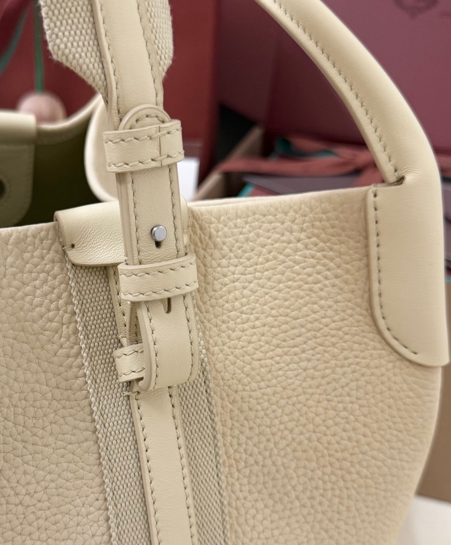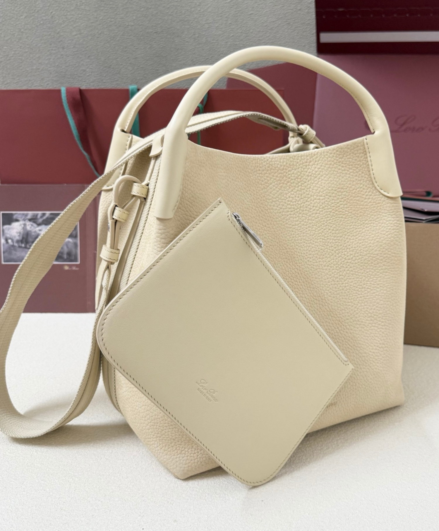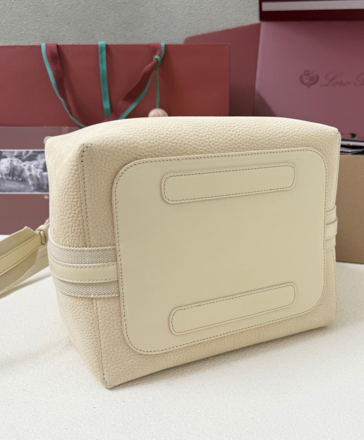 The Bale, a sophisticated bucket bag in large size with handstiched handles, inspired by Loro Piana’s textile heritage. Its silhouette, touch, and feel recall the cashmere bales, large bundles of the raw precious material. With a seamless design and unique lightness, the Bale bag is a celebration of supple softness and encapsulates the savoir-faire of the Maison. Effortless and casual, it is ideal for carrying all daily essentials with ease. The bag can be carried by hand or crossbody thanks to its removable strap. This handcrafted style is made from calfskin with an exceptionally soft, uniform natural gran.